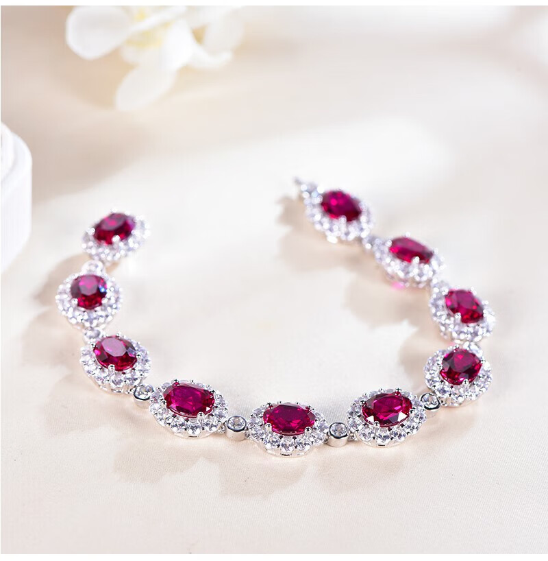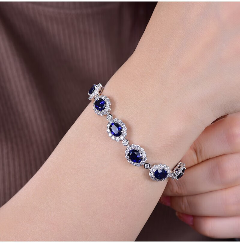 Fuwu Artificial Sapphire Bracelet Cultured Colorful S925 Sterling Silver Jewelry Non-Natural Light Luxury Jewelry S925 Cultured Sapphire Bracelet