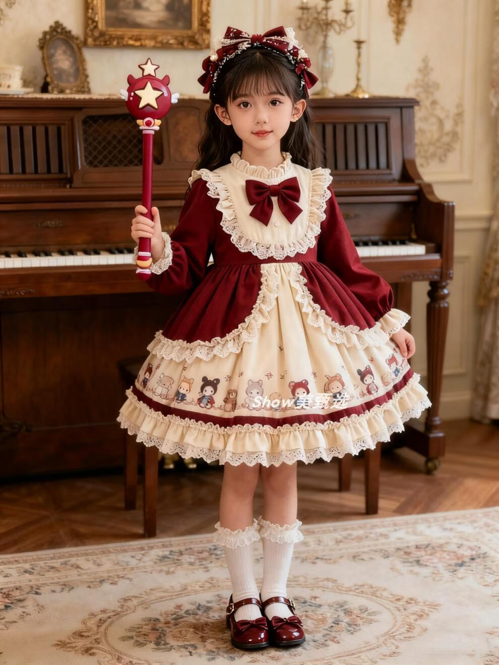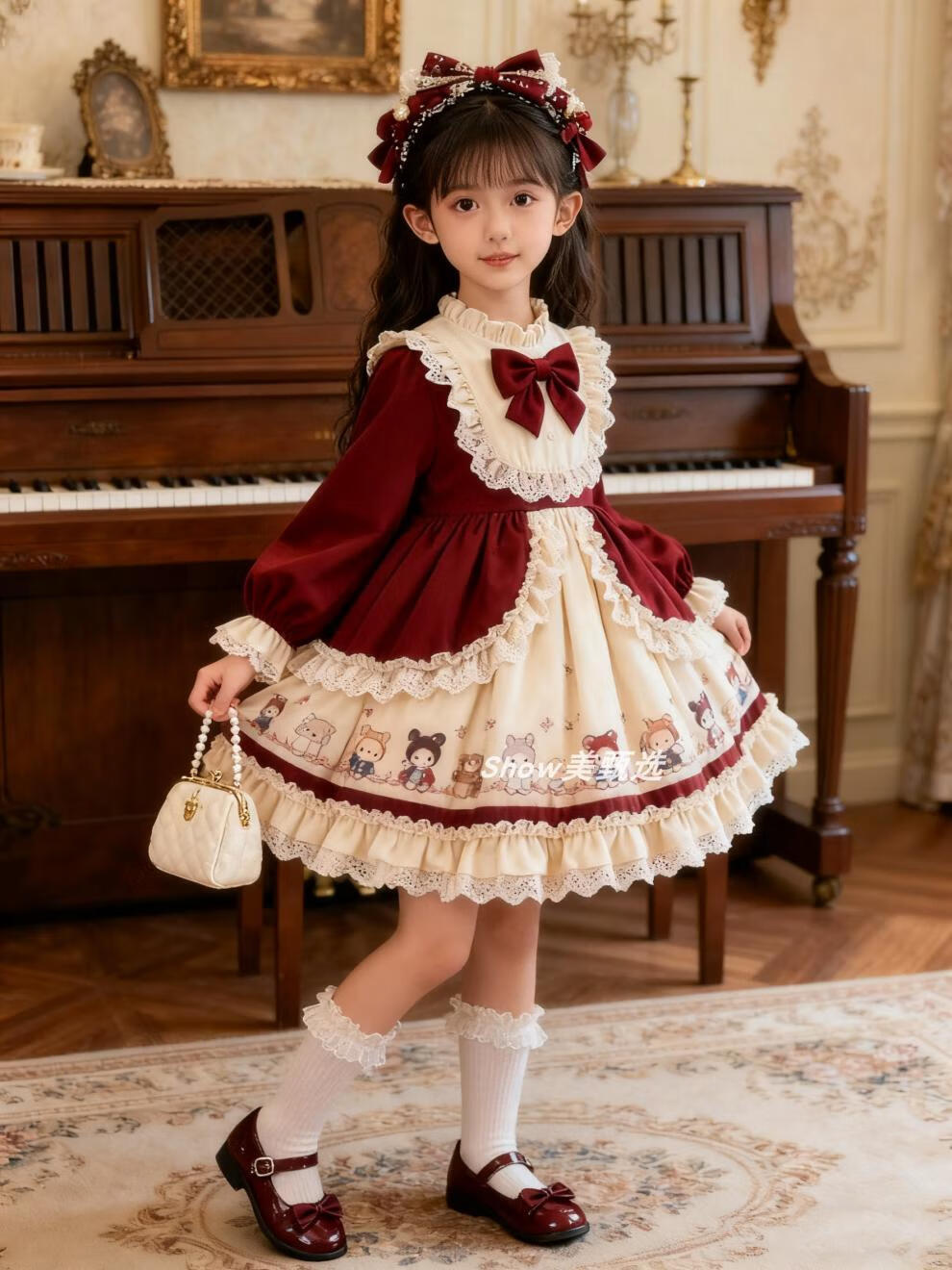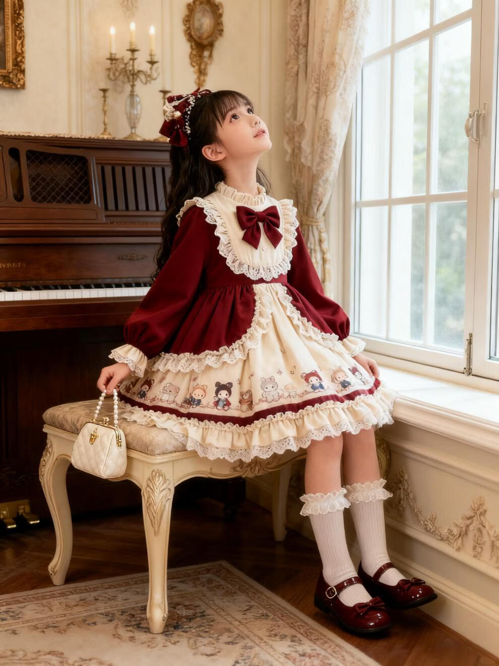 Disney Original Girls Lolita Princess Dress 25 New Children's Birthday Dress Fashionable Baby Girl Dress Autumn and Winter Burgundy 265 No Accessories 100 cm