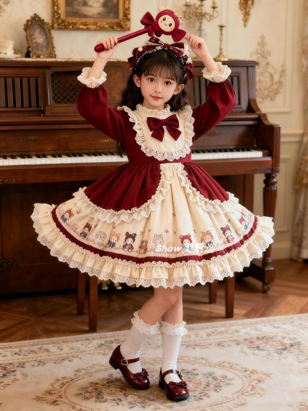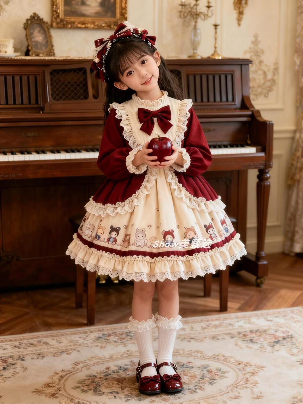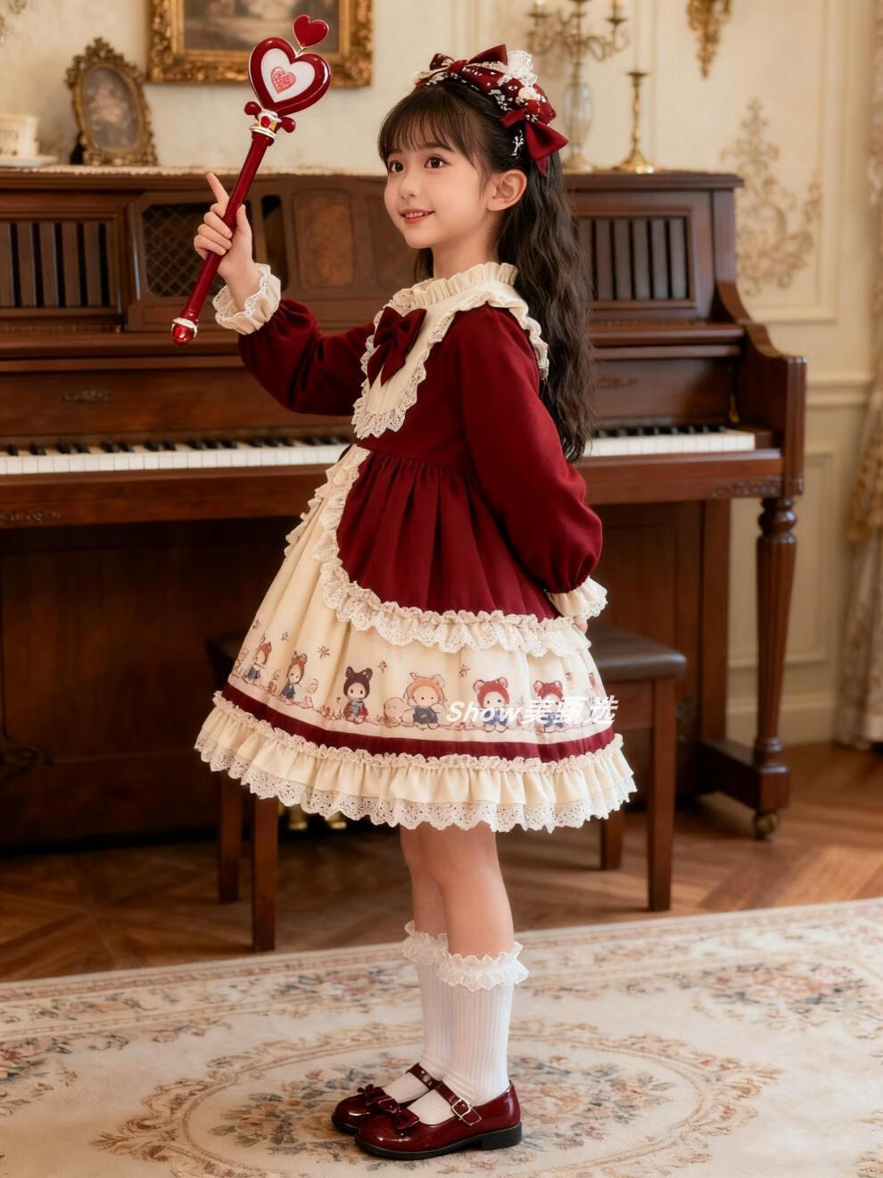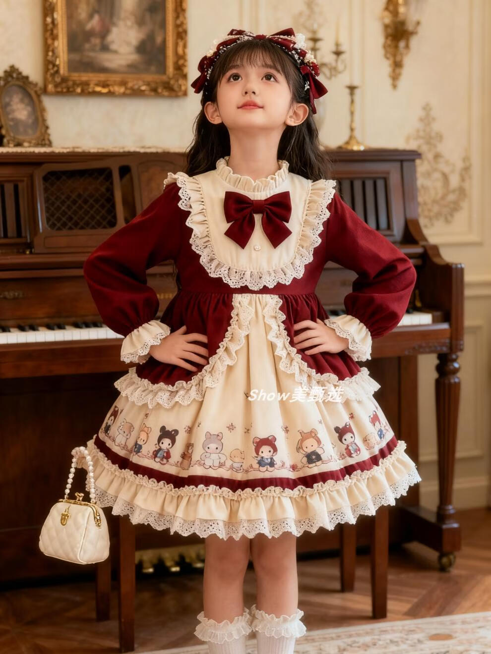 Disney Original Girls Lolita Princess Dress 25 New Children's Birthday Dress Fashionable Baby Girl Dress Autumn and Winter Burgundy 265 No Accessories 100 cm