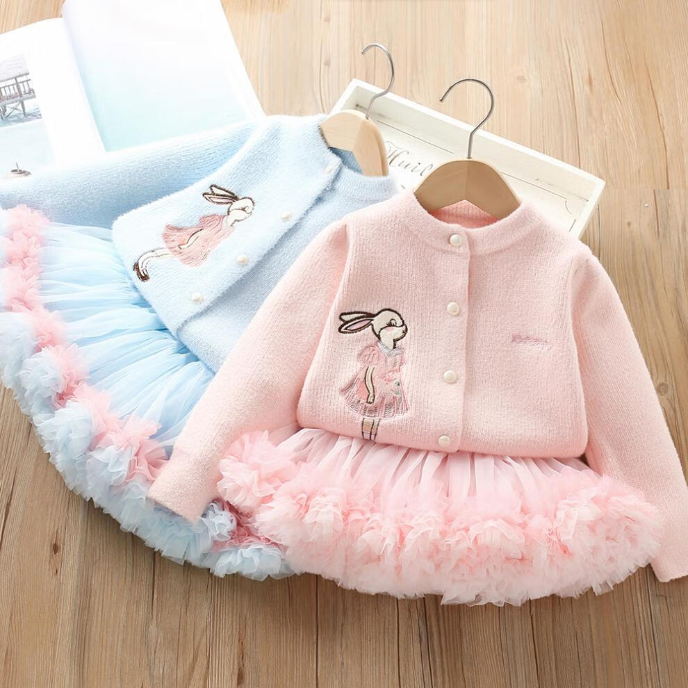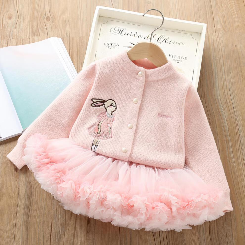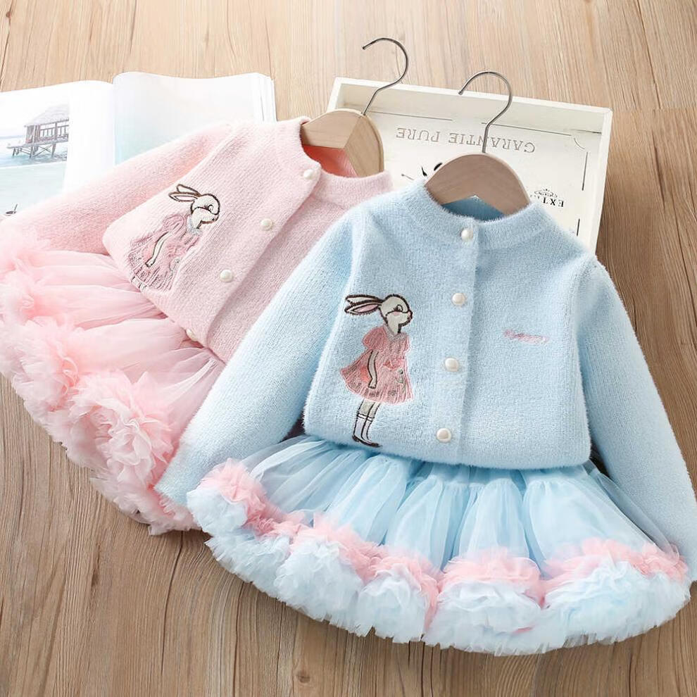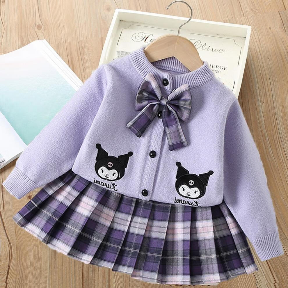 G.duck girls autumn and winter sweater skirt suit baby cartoon imitation mink velvet tutu tutu skirt two-piece set 24 fashion princess purple couro fan 90 cm suitable for 80-90cm age 2-3 years old
