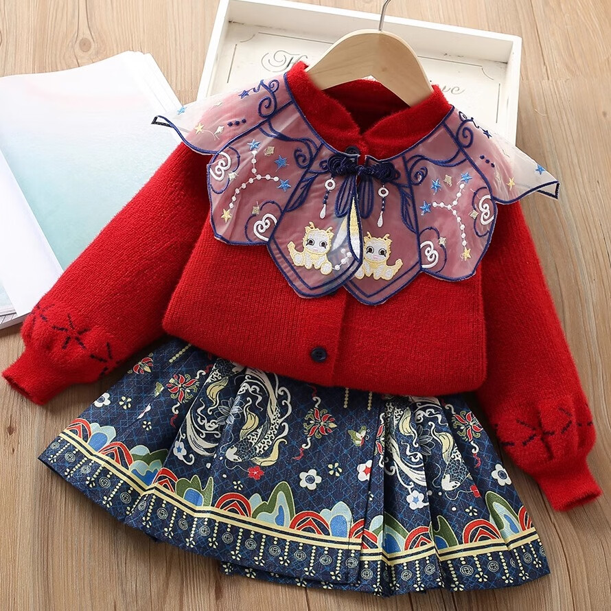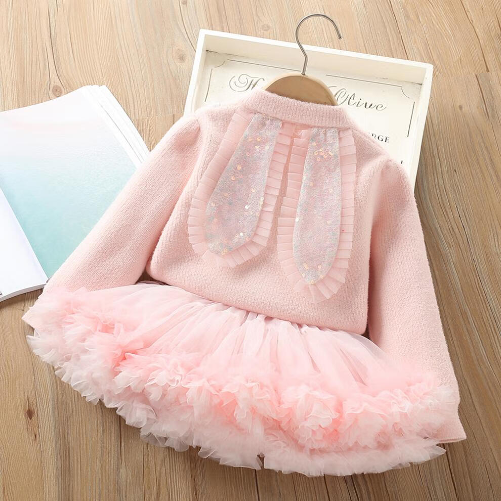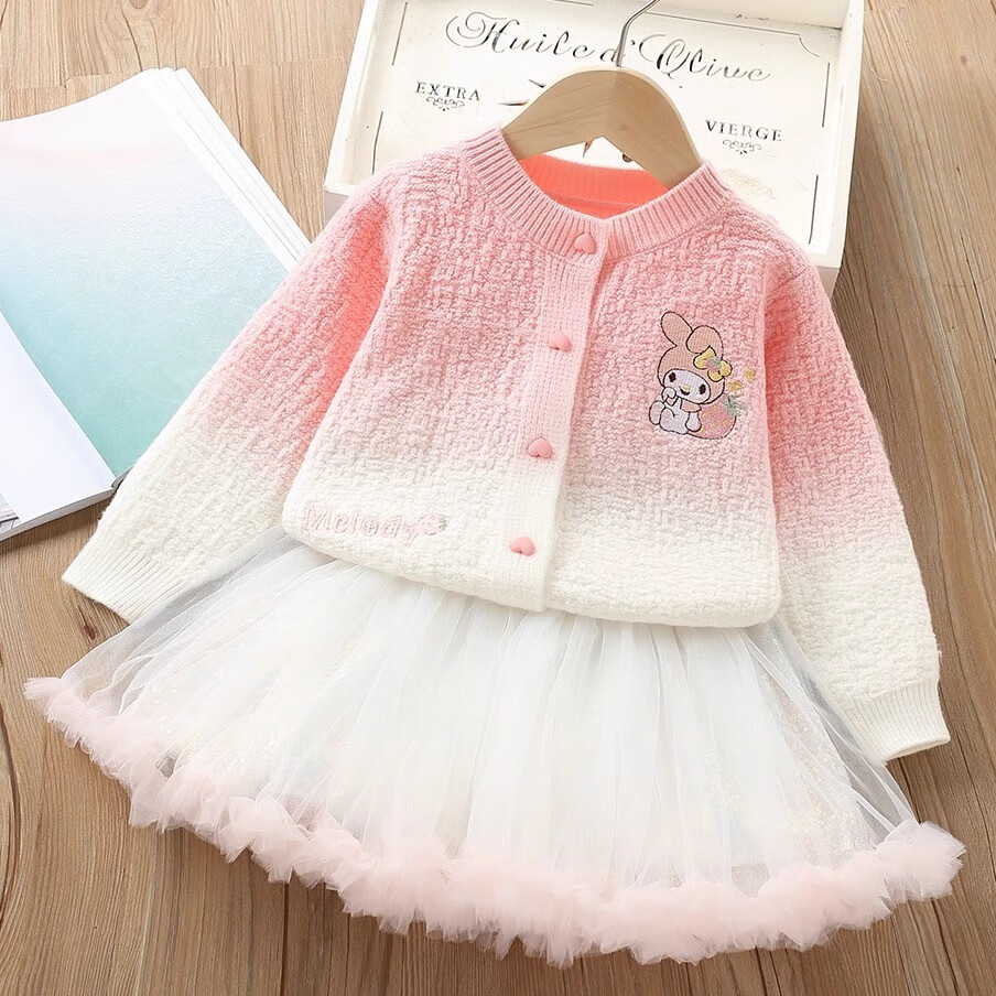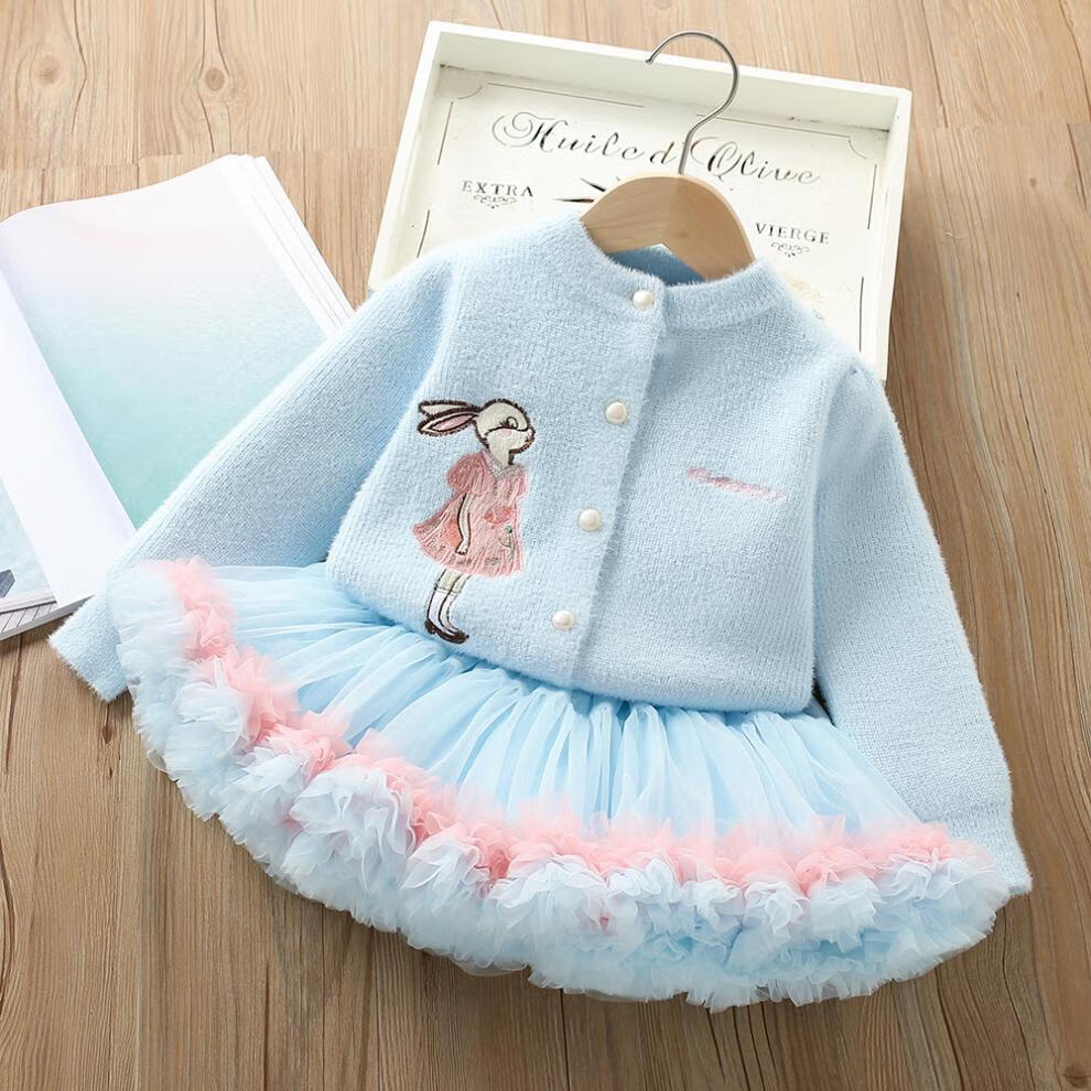 G.duck girls autumn and winter sweater skirt suit baby cartoon imitation mink velvet tutu tutu skirt two-piece set 24 fashion princess purple couro fan 90 cm suitable for 80-90cm age 2-3 years old