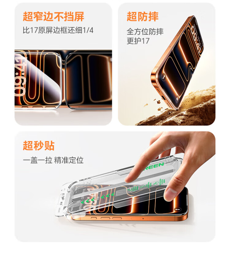 UGREEN AR Corning film is suitable for iPhone17promax tempered film Apple 17 mobile phone film 16pro anti-reflective film automatic dust removal high-definition anti-fall anti-fingerprint Apple 17/16pro AR film * 1 piece + film artifact
