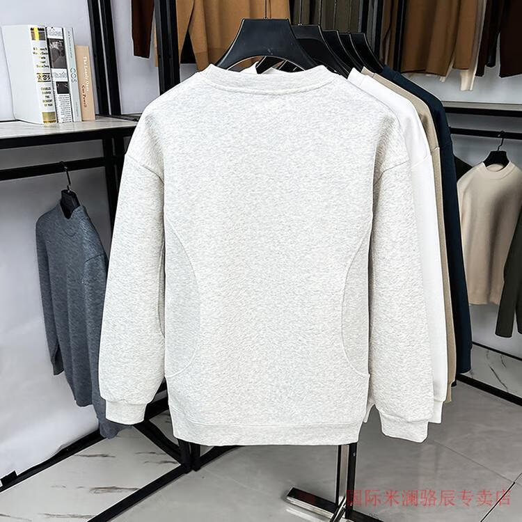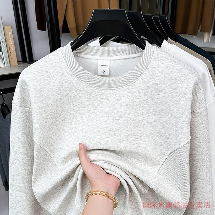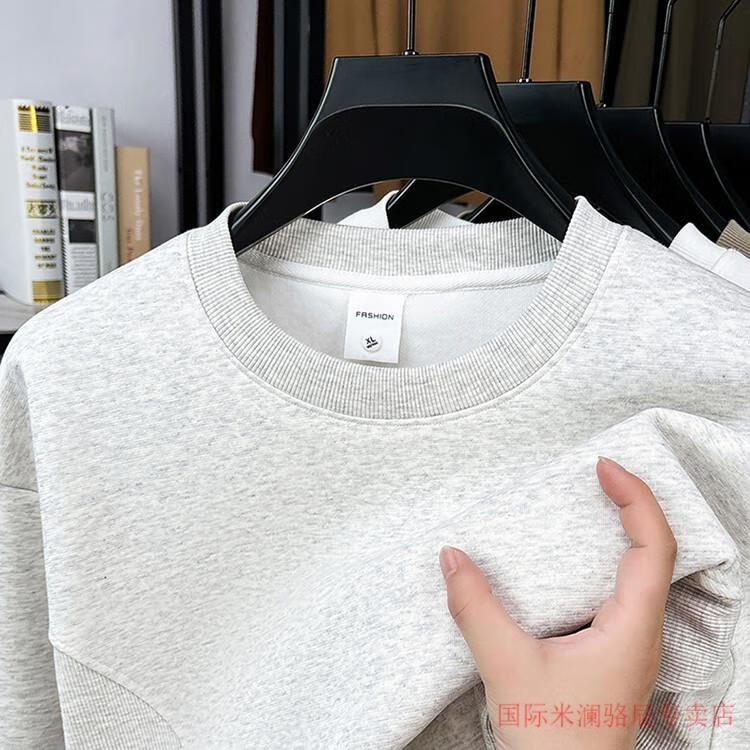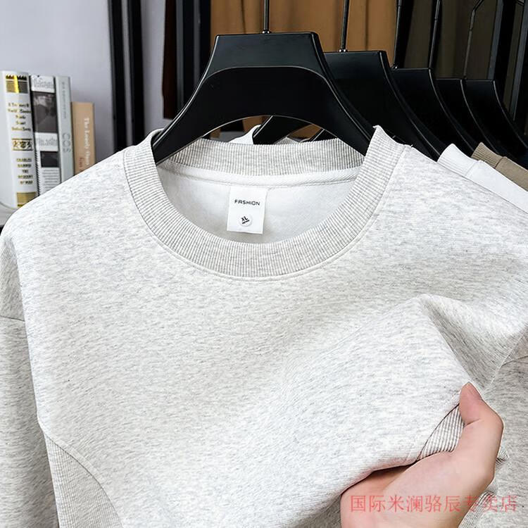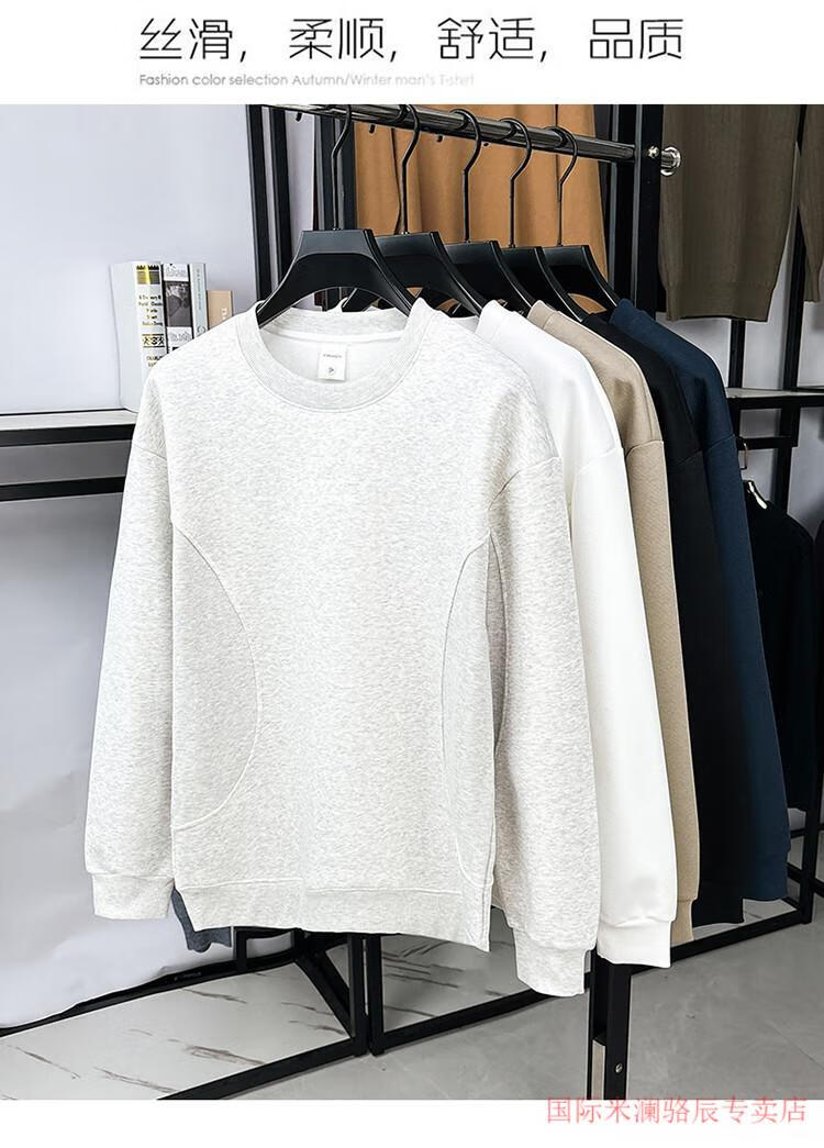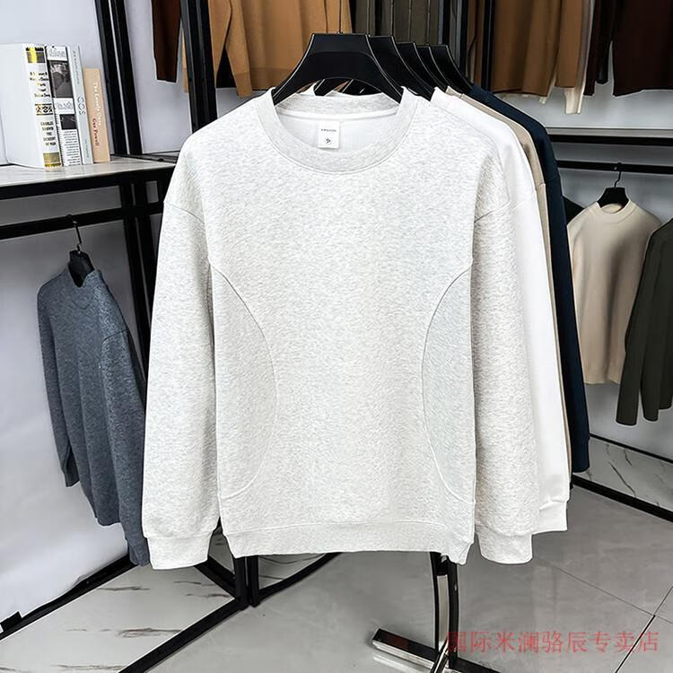 International Milan long-sleeved T-shirt men's round neck 2025 autumn new business casual solid color men's spring and autumn round neck bottoming T-shirt gray XL recommended 130-155Jin Jin equals 0.5 kg