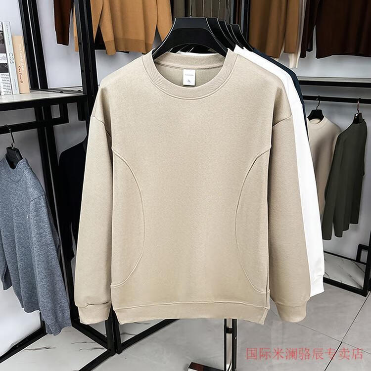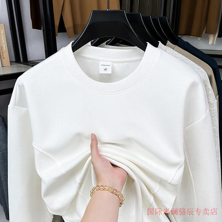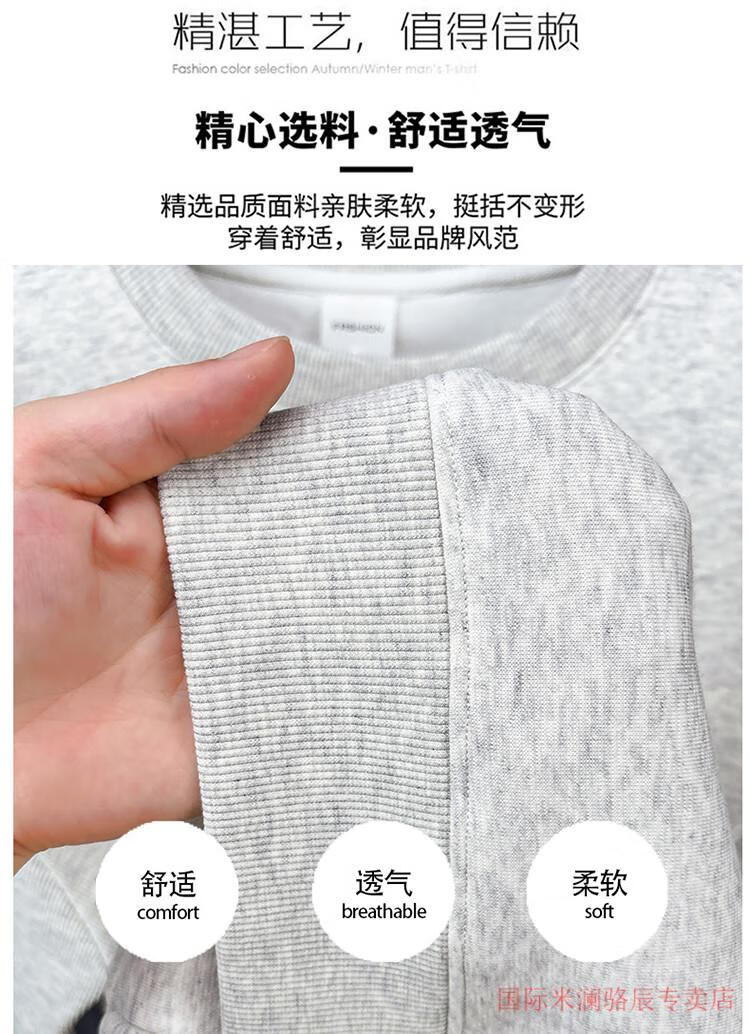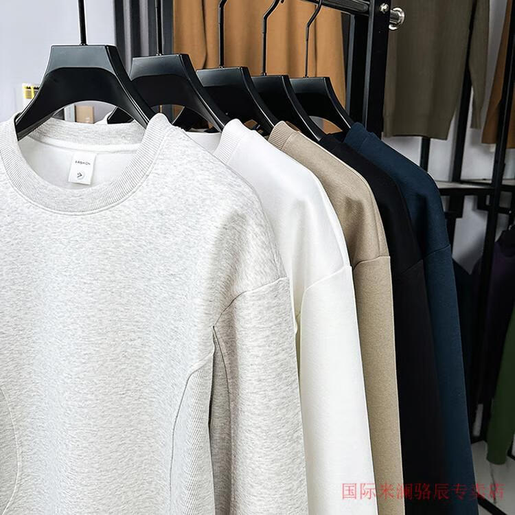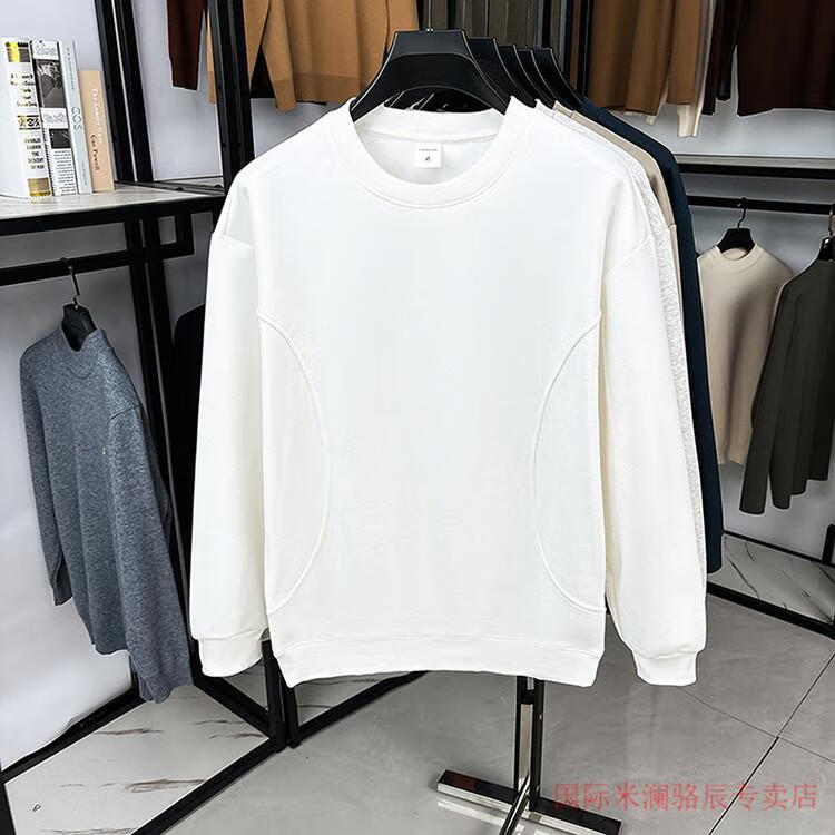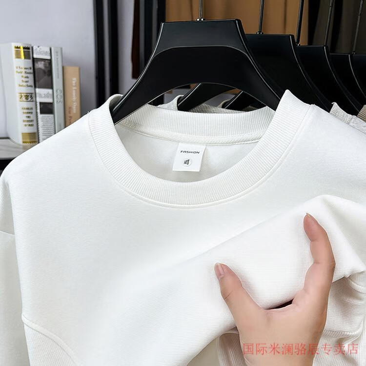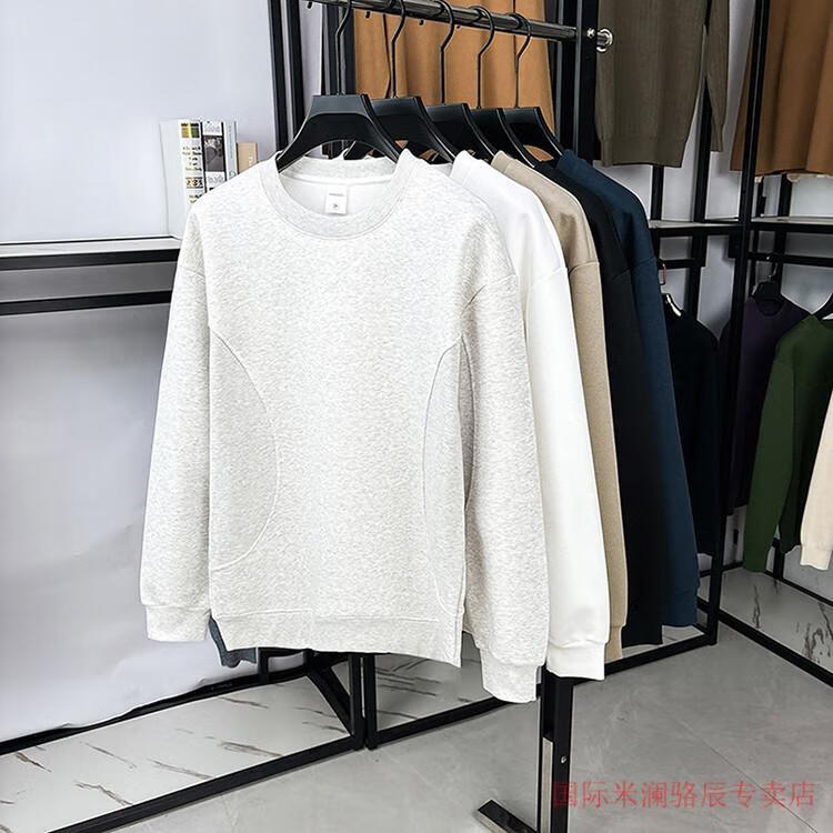 International Milan long-sleeved T-shirt men's round neck 2025 autumn new business casual solid color men's spring and autumn round neck bottoming T-shirt gray XL recommended 130-155Jin Jin equals 0.5 kg