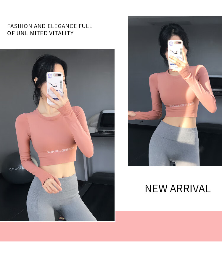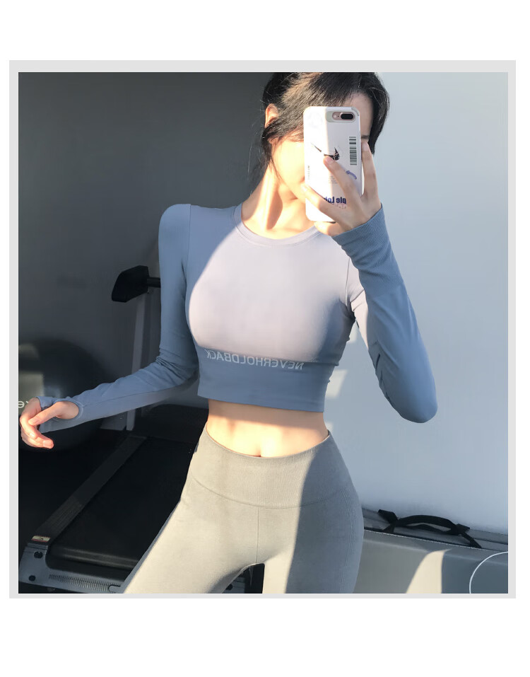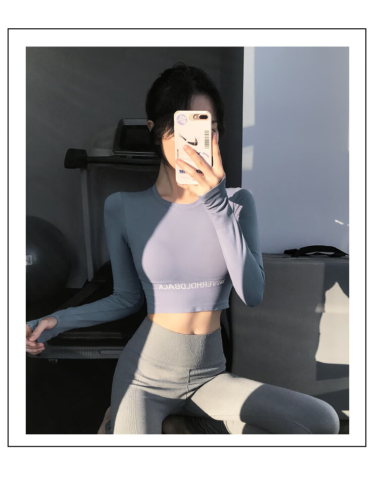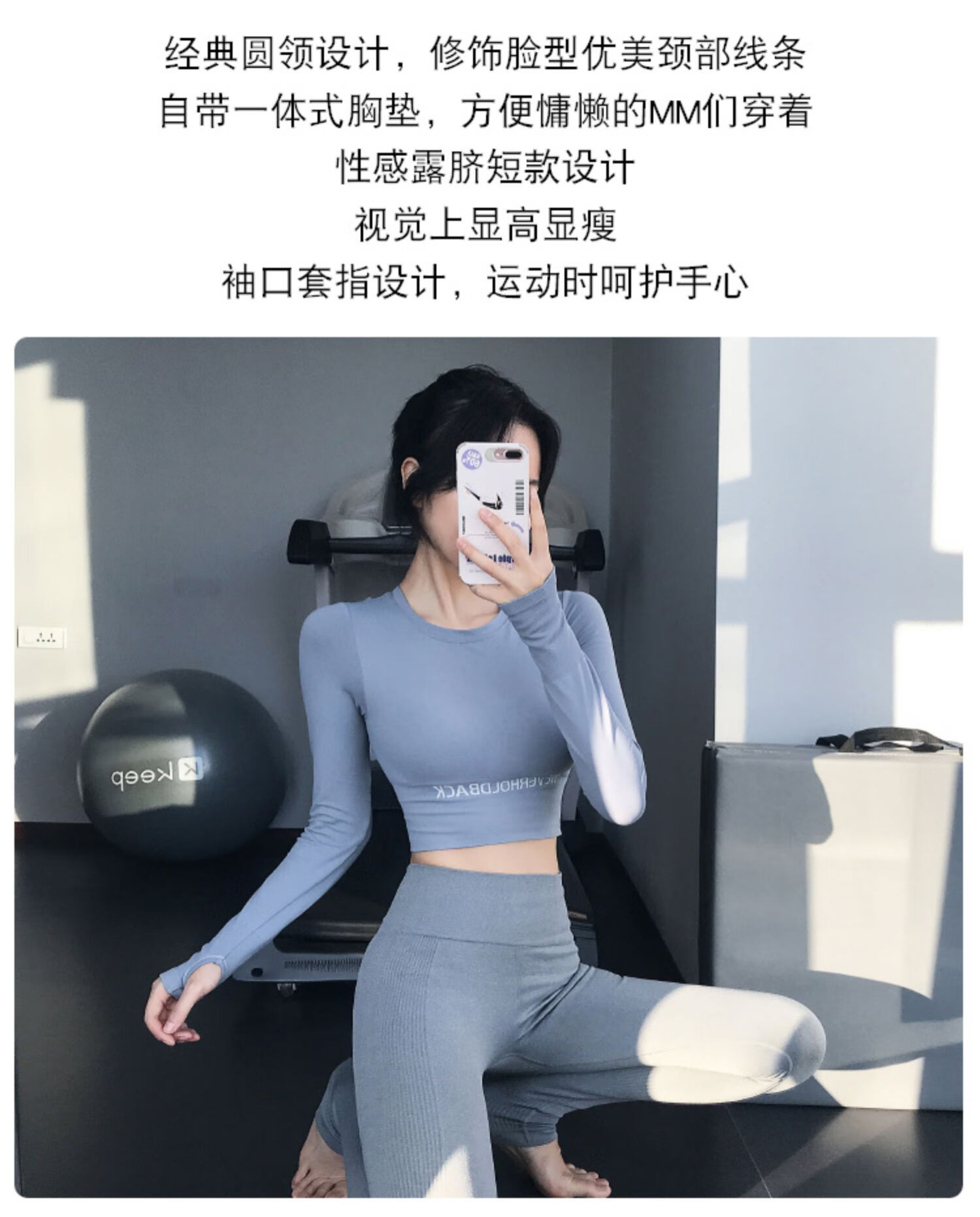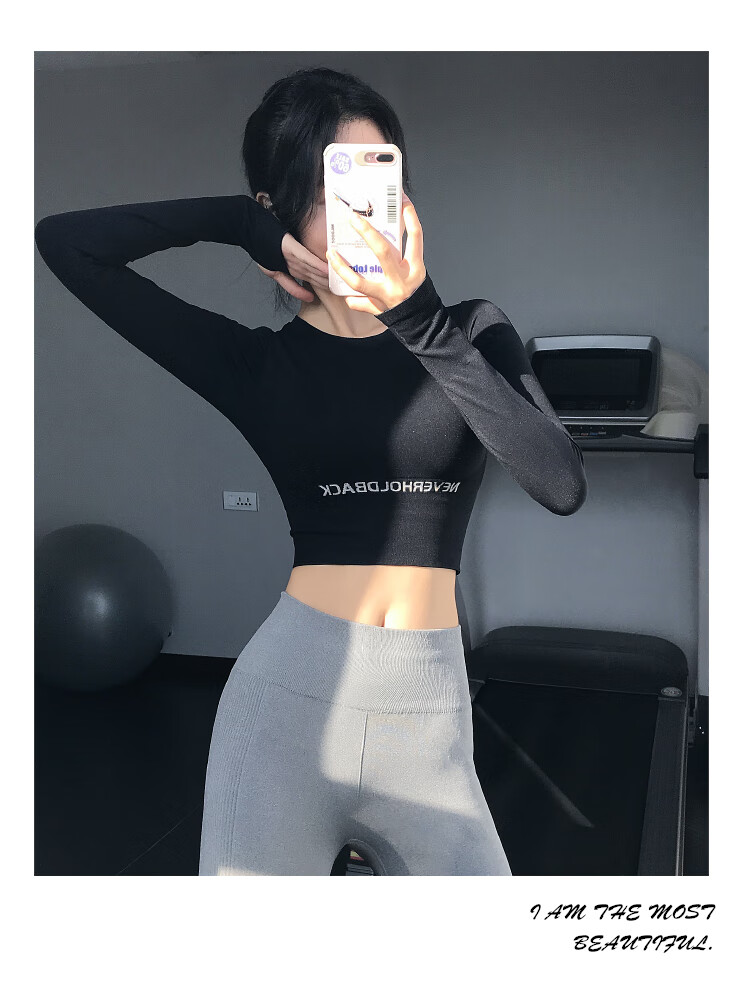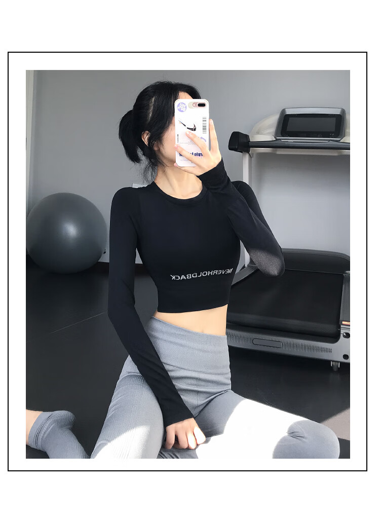 Jincheng all-in-one chest pad yoga wear for women autumn short running sports top training Pilates fitness wear long sleeve black fixed chest pad GF362 M 95-110Jin Jin equals 0.5 kg