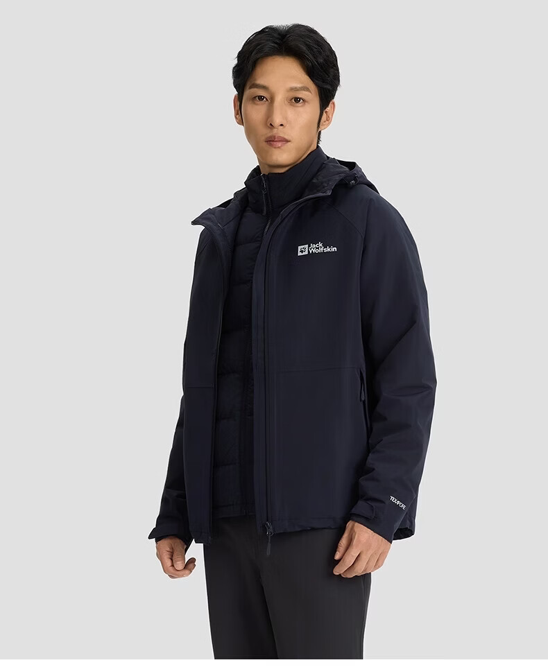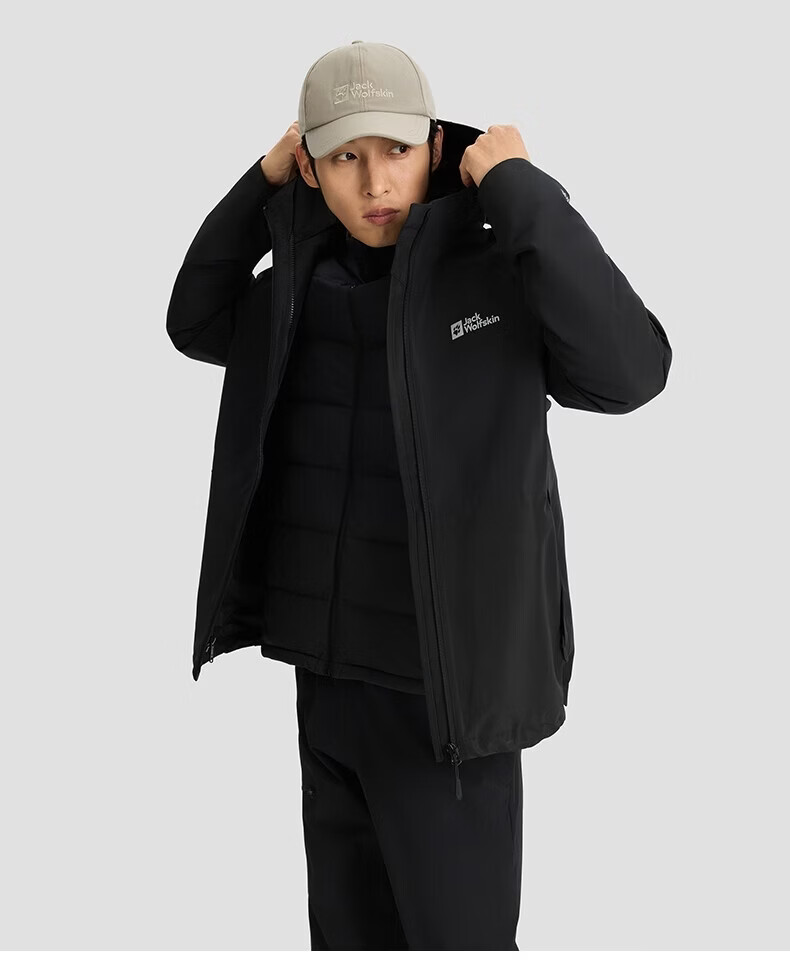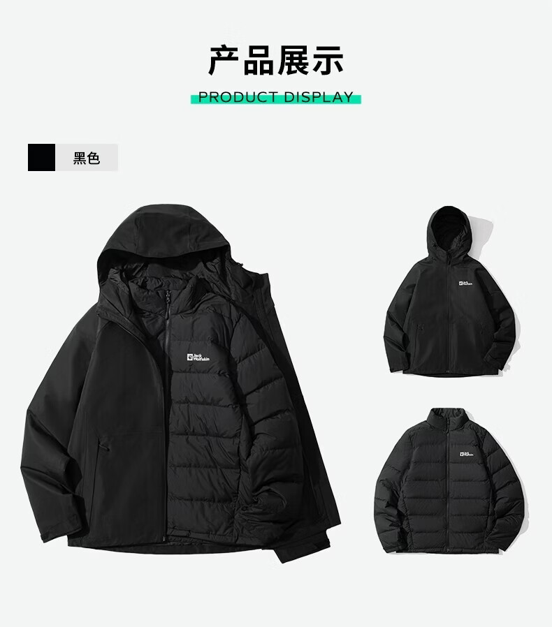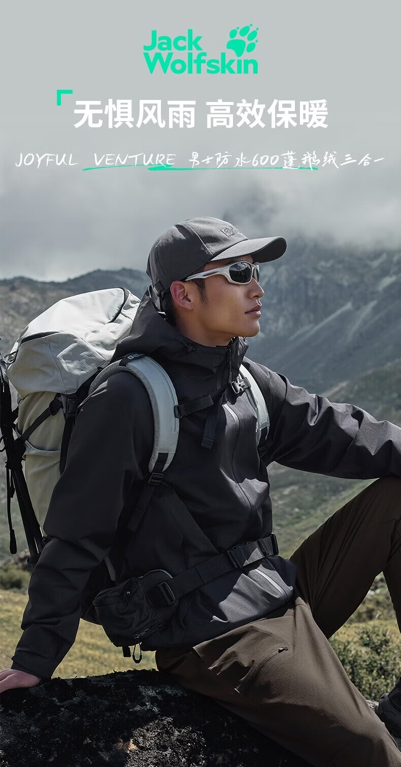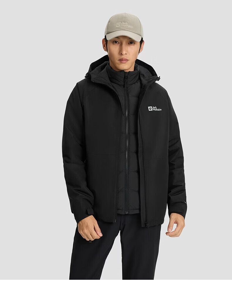 JackWolfskin Wolfskin 25 Autumn and Winter JOYFUL Men's Outdoor Waterproof 600 Puff Goose Down Three-in-One Jacket A65469 Black/6000 The size is too large, it is recommended to order a smaller size L Filling capacity 75G