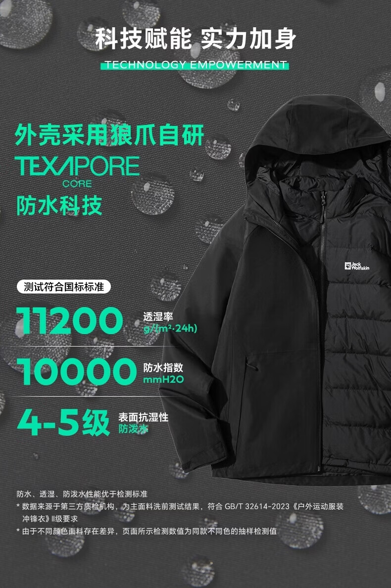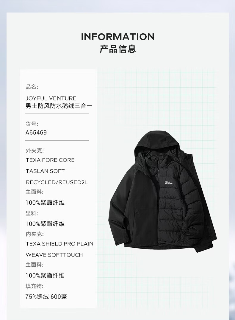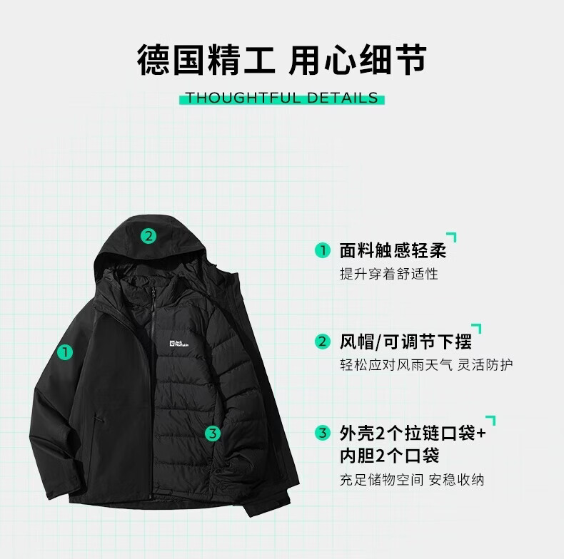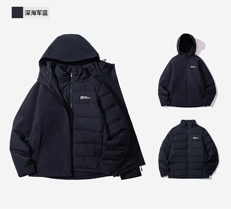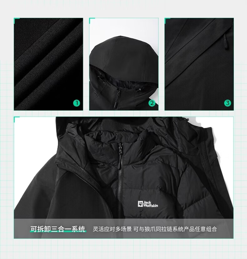 JackWolfskin Wolfskin 25 Autumn and Winter JOYFUL Men's Outdoor Waterproof 600 Puff Goose Down Three-in-One Jacket A65469 Black/6000 The size is too large, it is recommended to order a smaller size L Filling capacity 75G