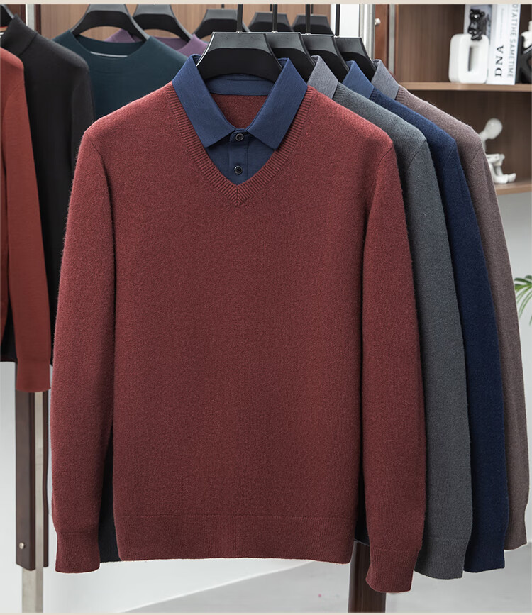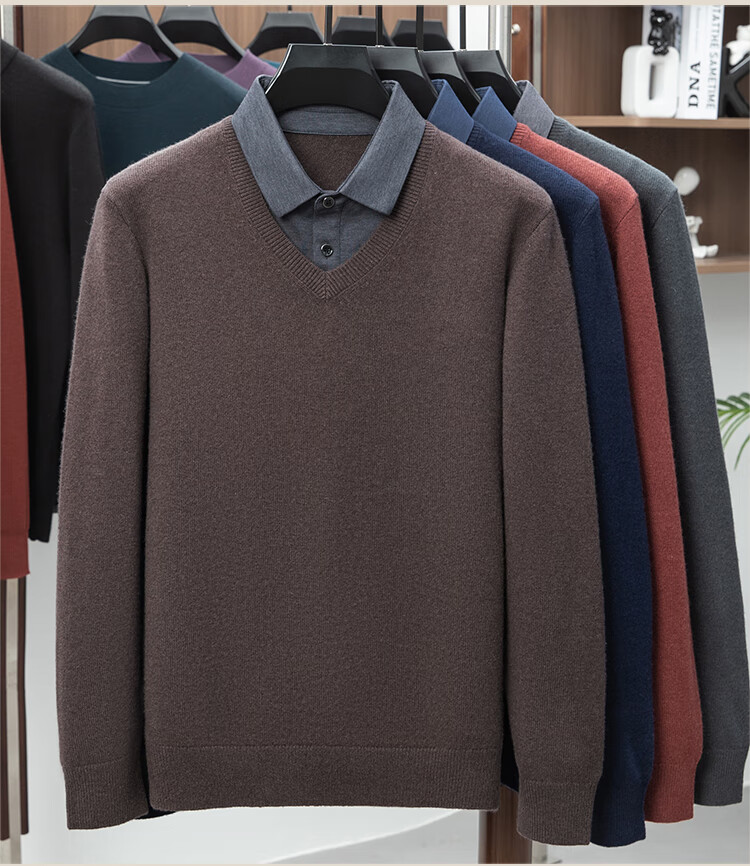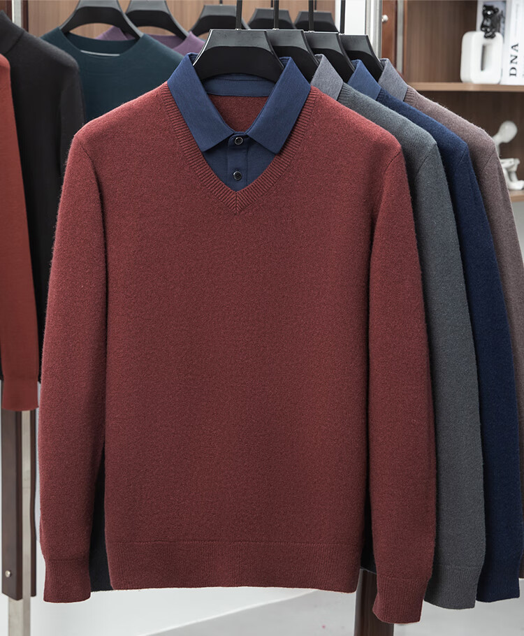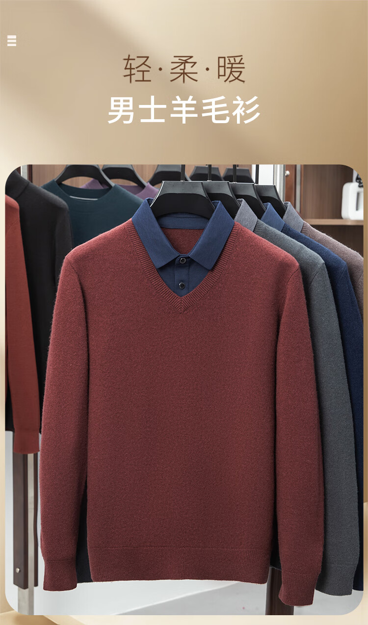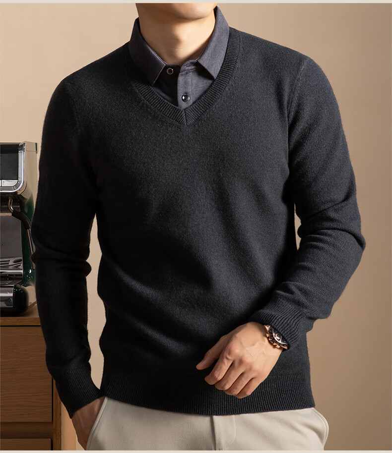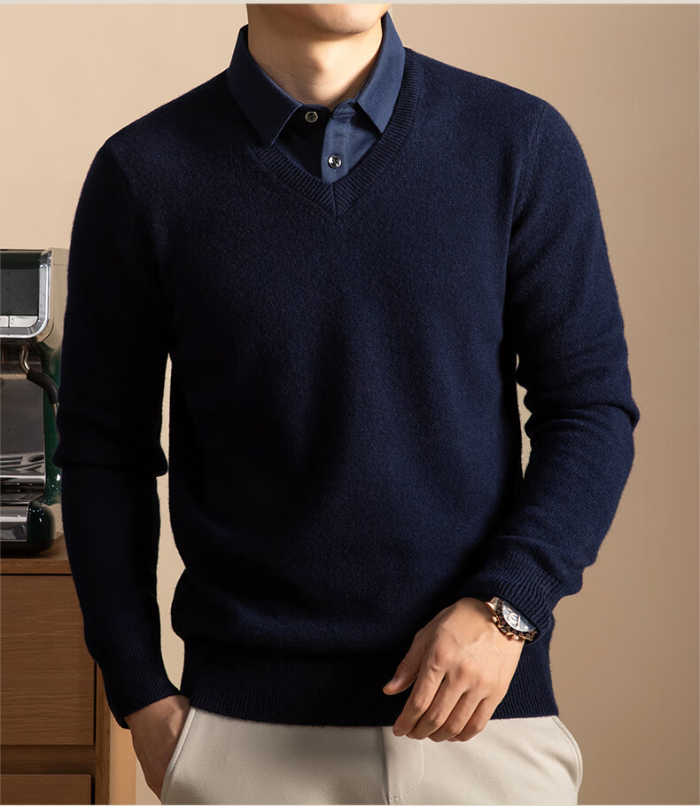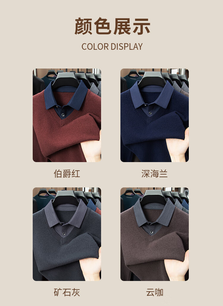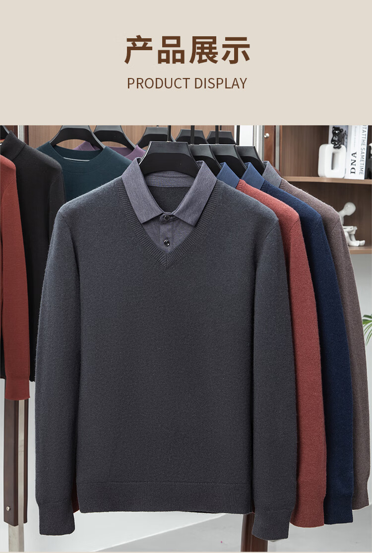 Hengyuanxiang Shirt Collar Sweater Men's Pure Wool 2025 Autumn and Winter New Men's Fake Two-Piece Wool Sweater Tops Business Casual Deep Sea Blue