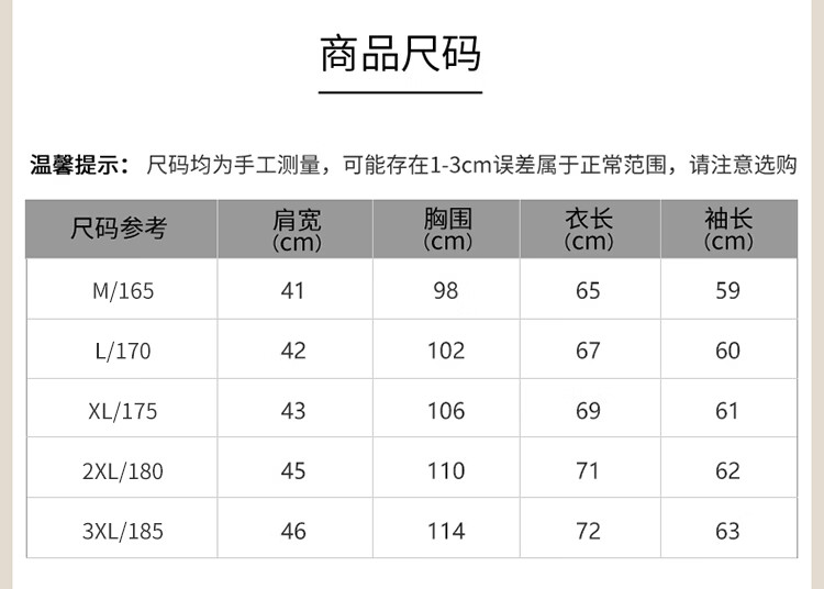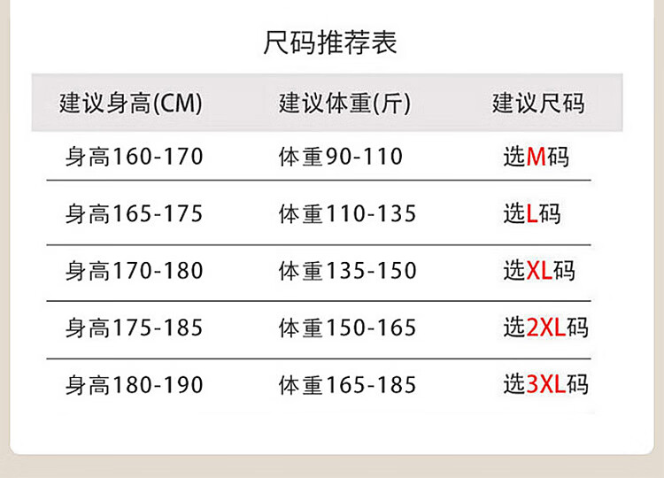 China (cm) 165 / 88-90 170 / 96-98 175 / 108-110 180 / 118-122 185 / 126-130