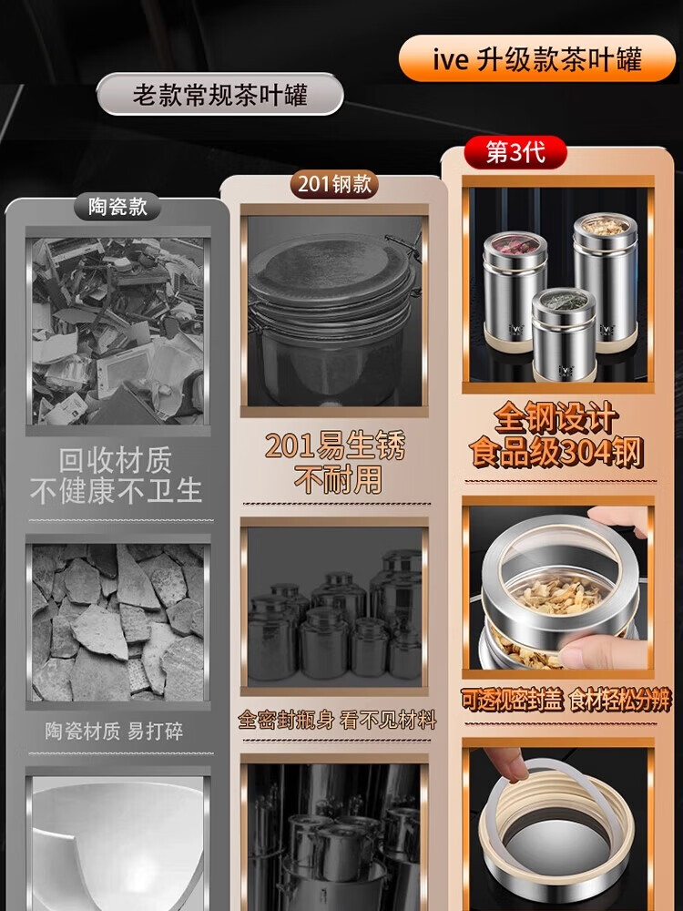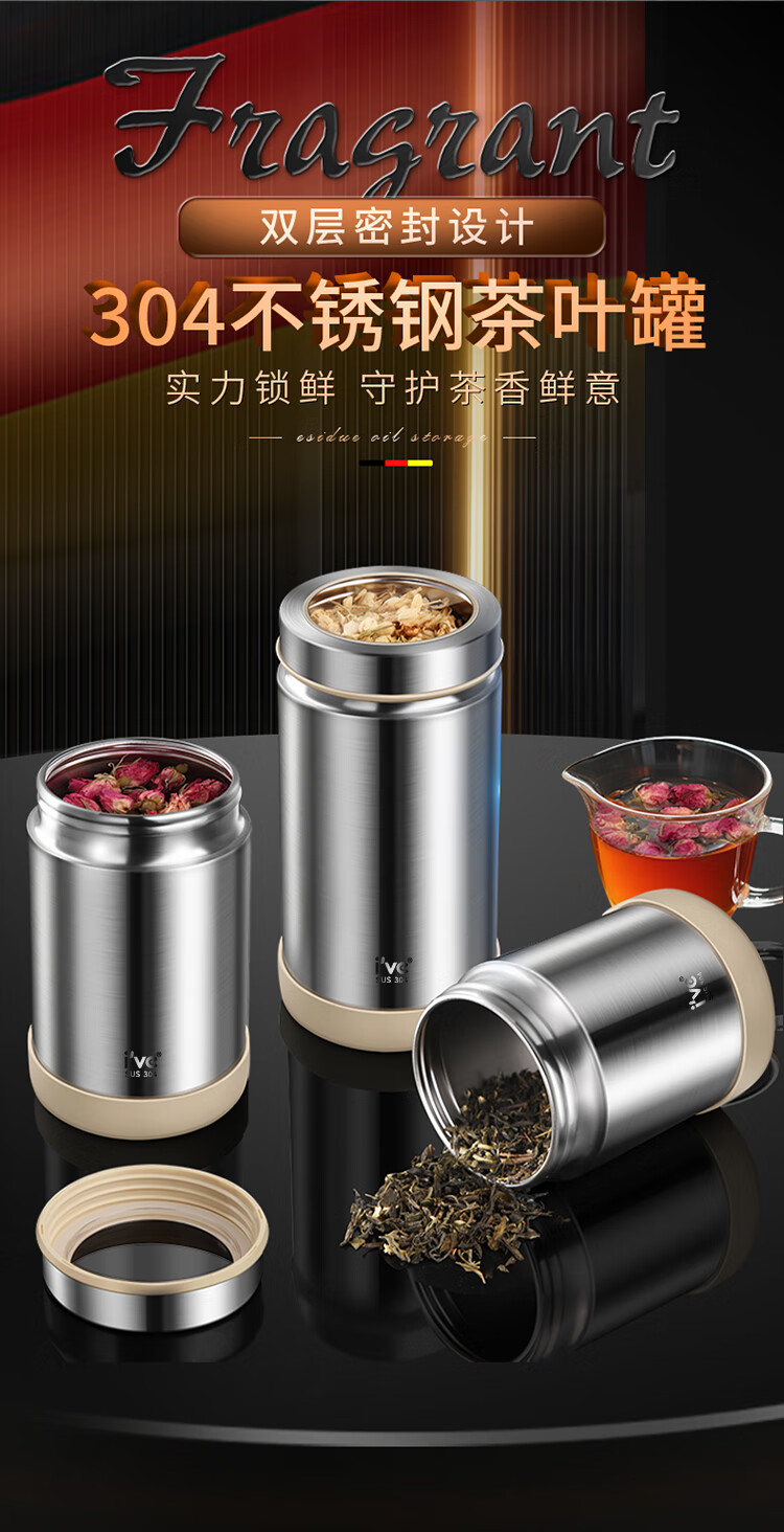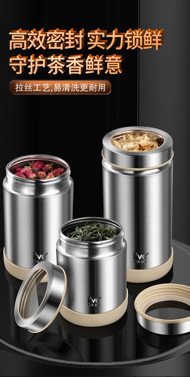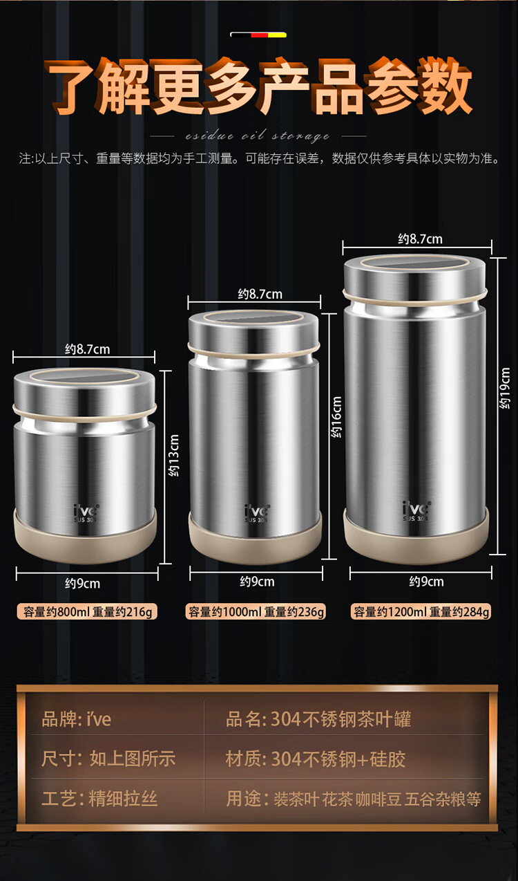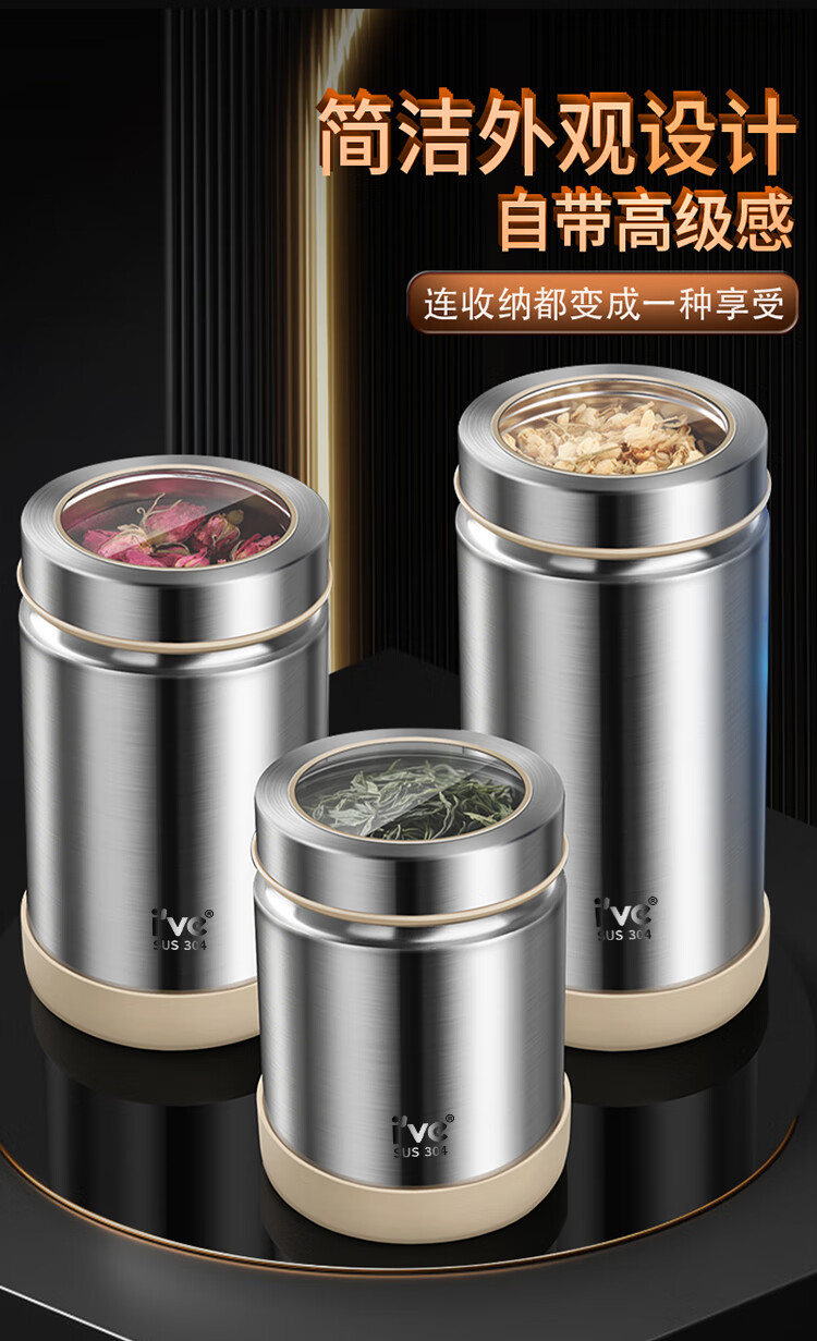 I VE German 304 stainless steel tea can storage tank food-grade household large-capacity multi-purpose storage tank sealed tank small 800ml stainless steel sealed tank free tea spoon when ordering - single also free