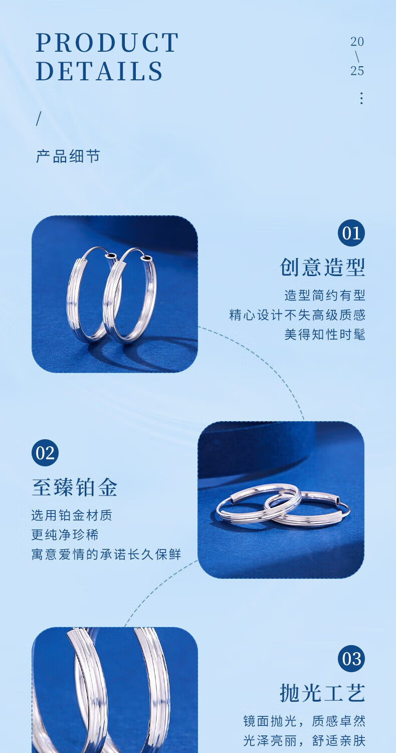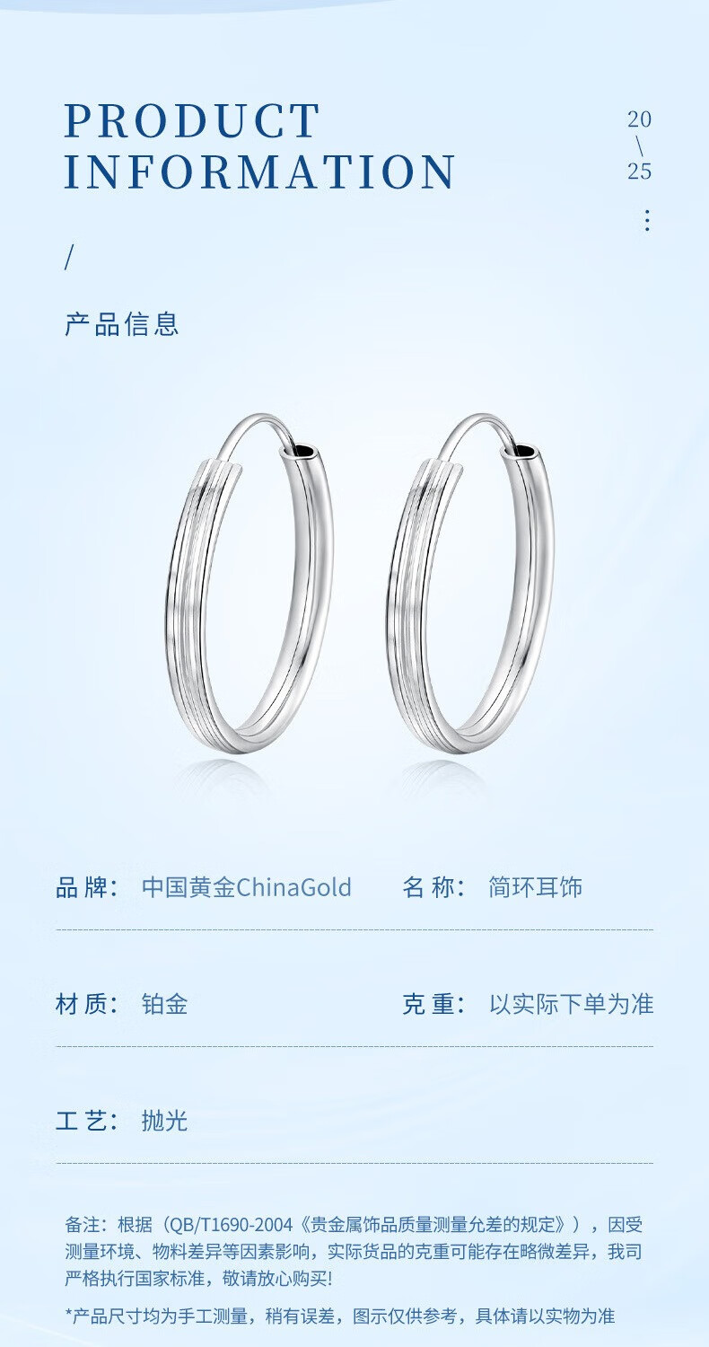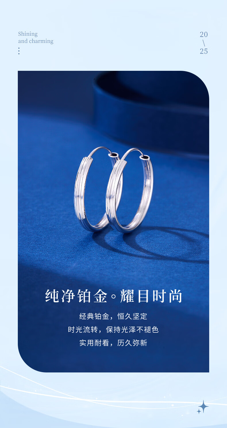 CHINA GOLD PT950 platinum plain earrings for women, new platinum earrings, Valentine's Day birthday gift for girlfriend, platinum plain earrings, one pair, about 4.5g