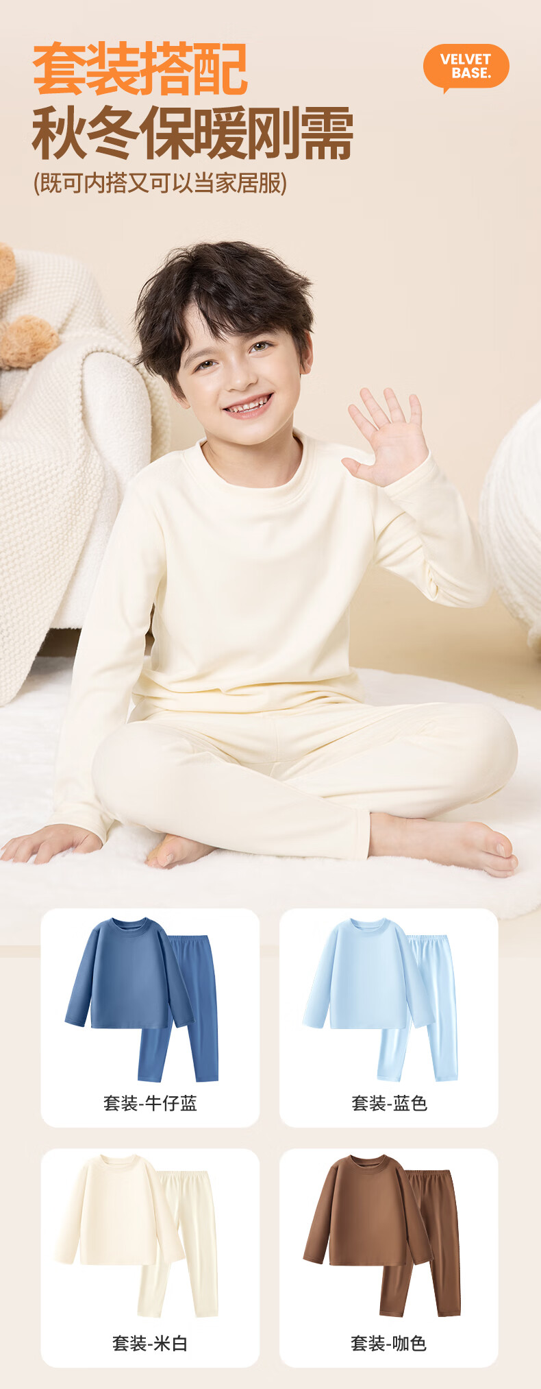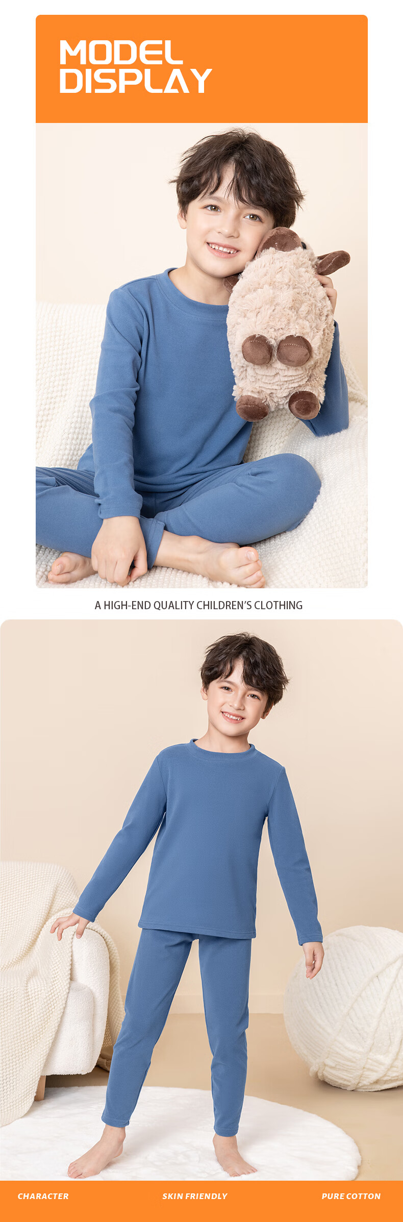 Baleno Boys' Autumn Clothes and Autumn Pants Set Autumn and Winter Home Clothes 2025 New Class A German Velvet Children's Pajamas Blue BNL Cute Shark X+ Blue 120