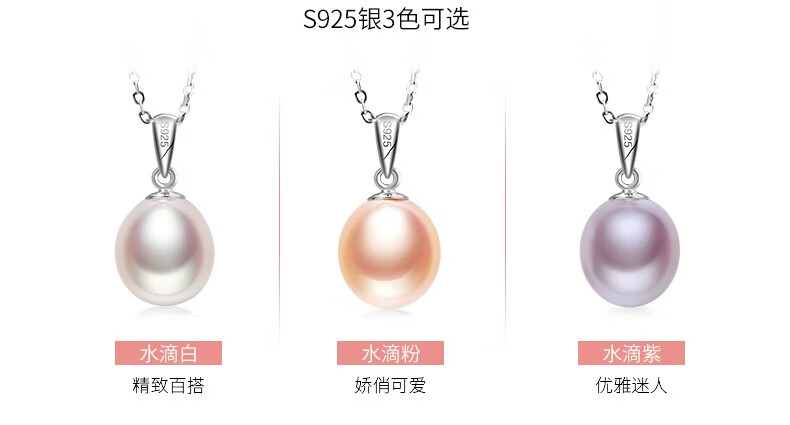 Dishi freshwater pearl pendant with bright luster, with silver chain, large colors available, gift for girlfriend, 1 piece, 8-9mm purple