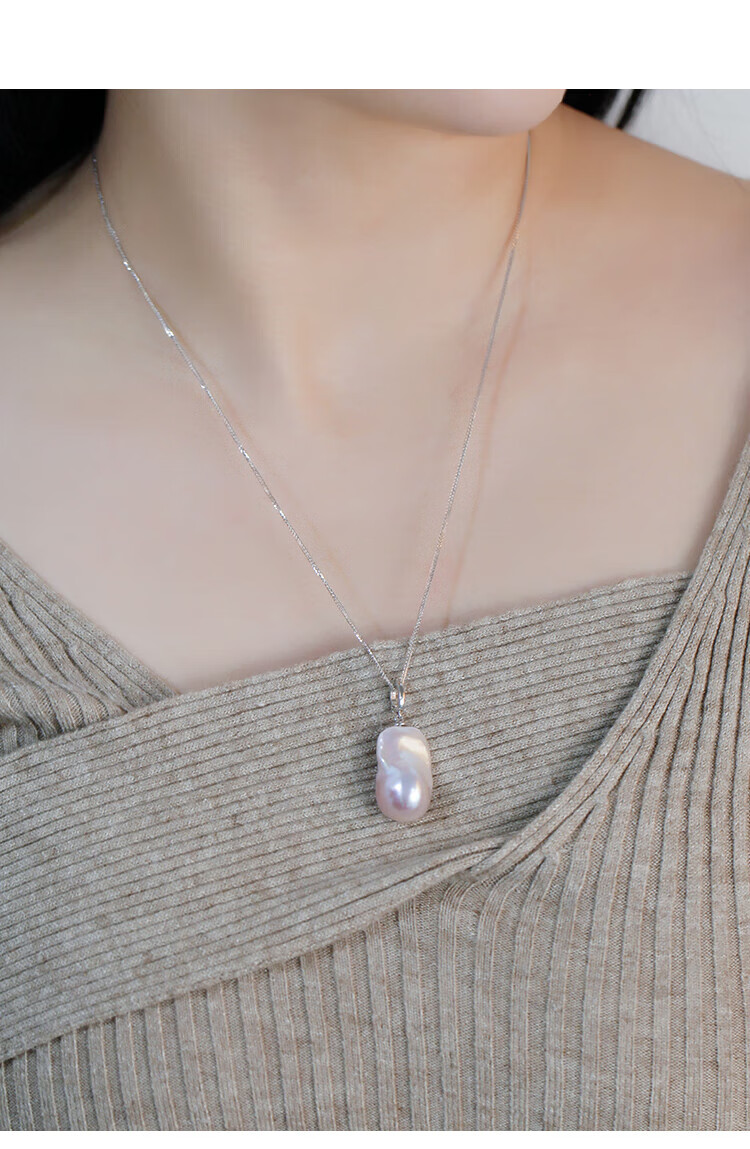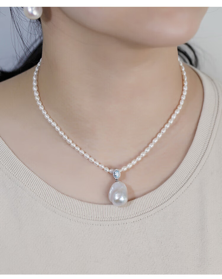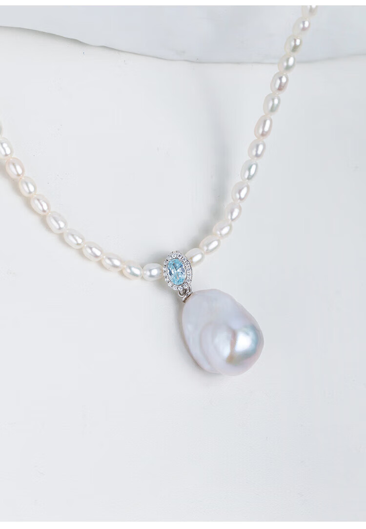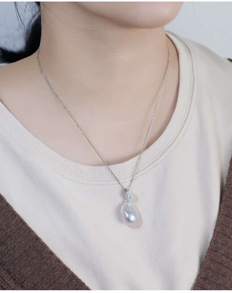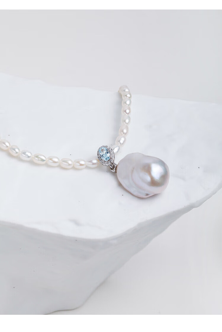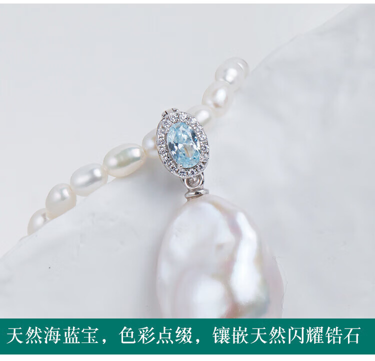 Lianshi natural freshwater large baroque pearl pendant necklace 925 silver buckle pendant aurora special shape aquamarine buckle with 60cm Chopard silver chain