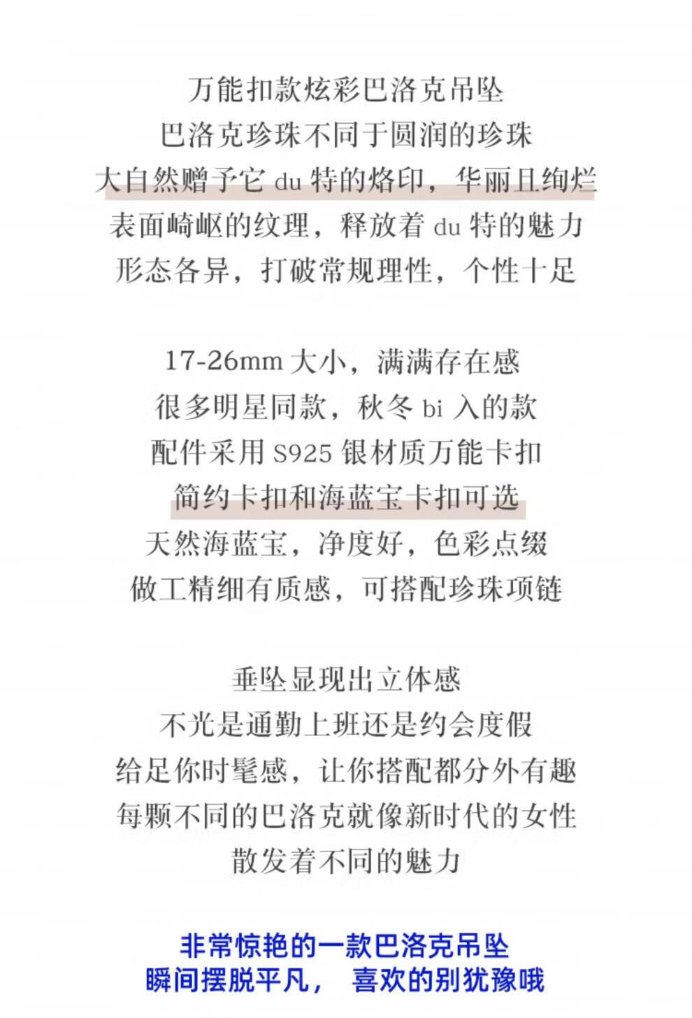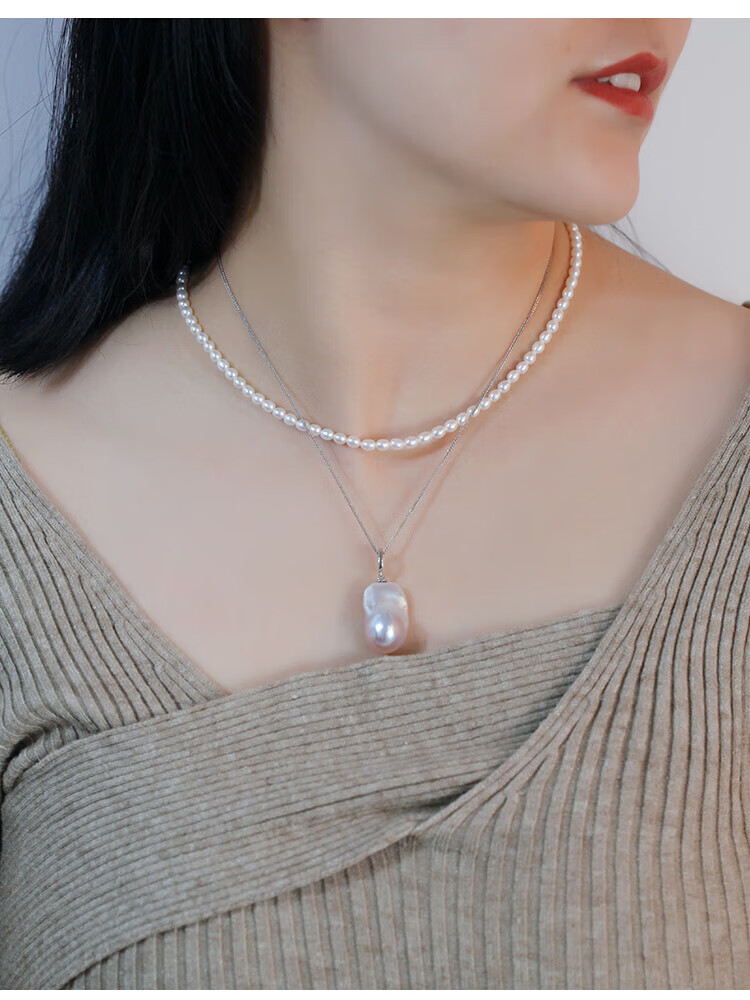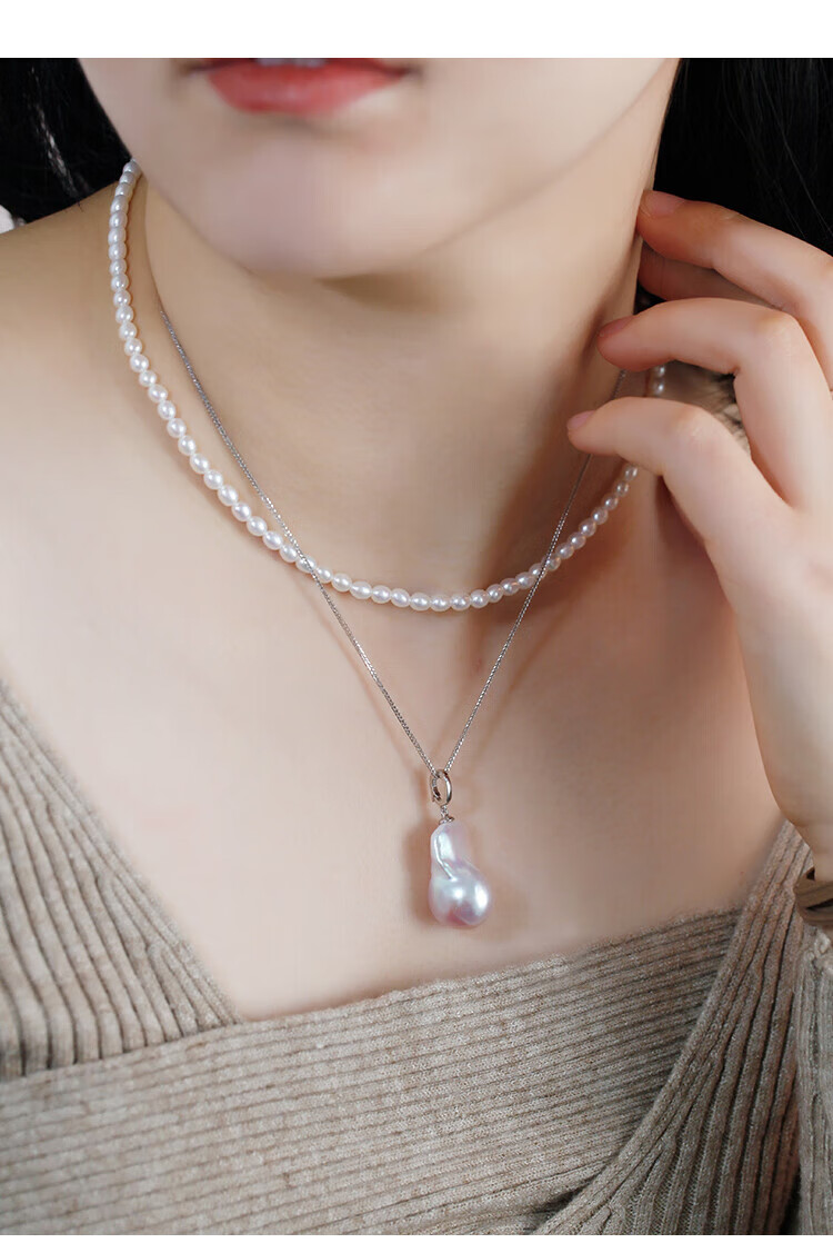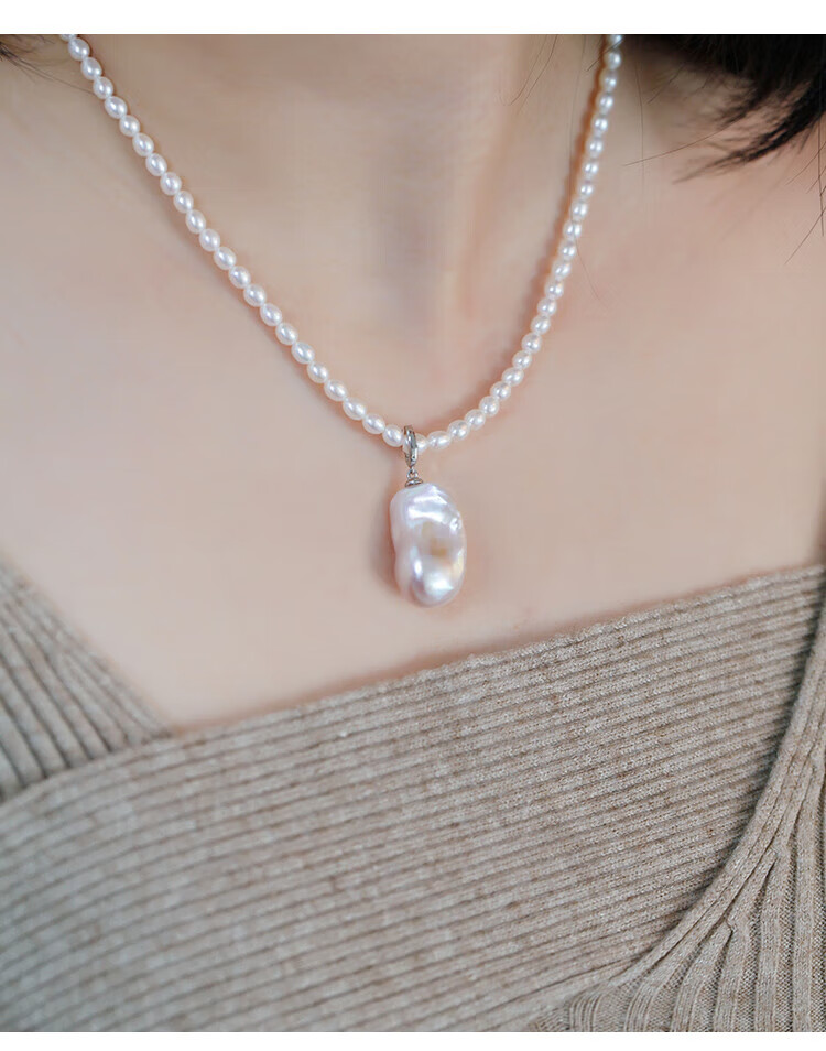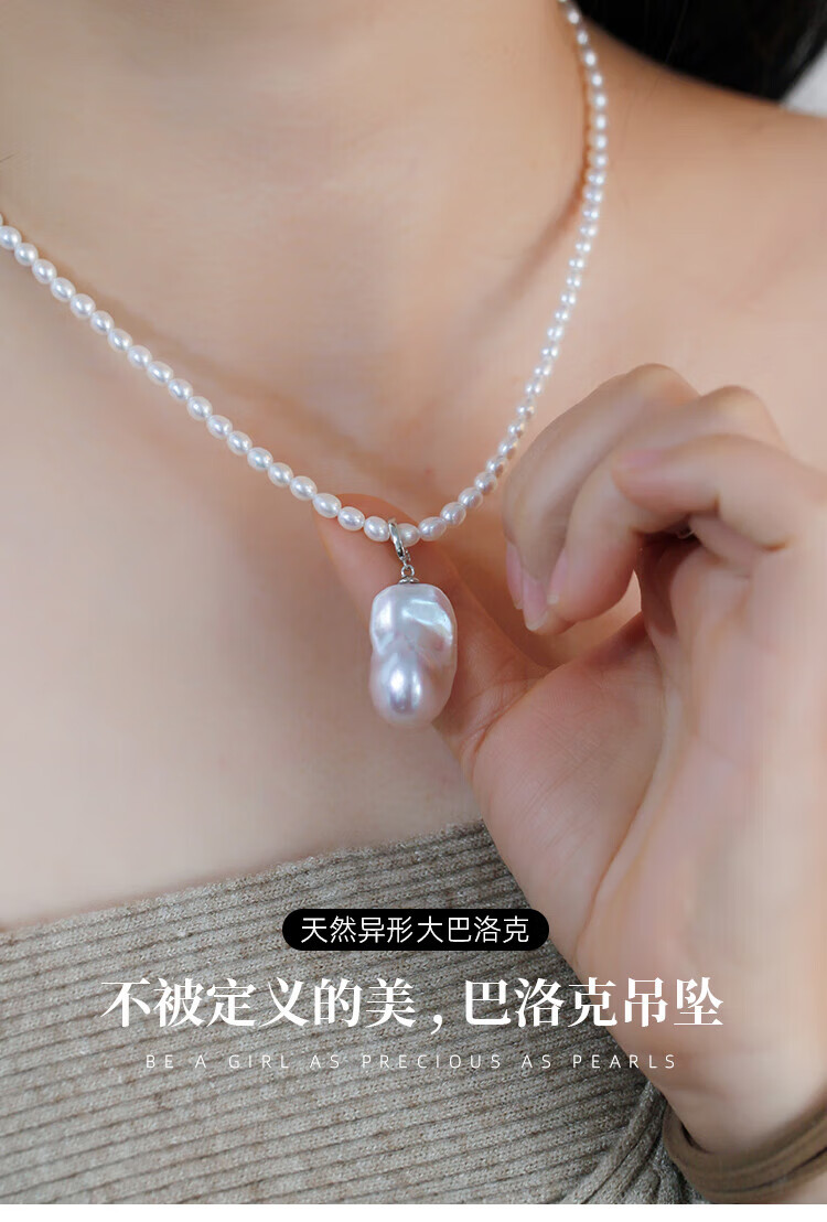 Lianshi natural freshwater large baroque pearl pendant necklace 925 silver buckle pendant aurora special shape aquamarine buckle with 60cm Chopard silver chain