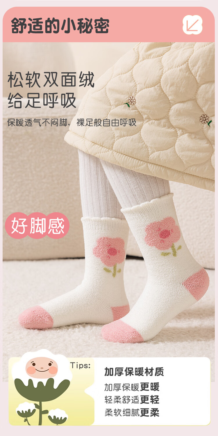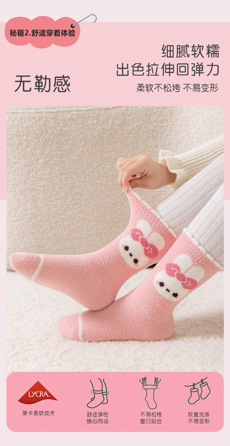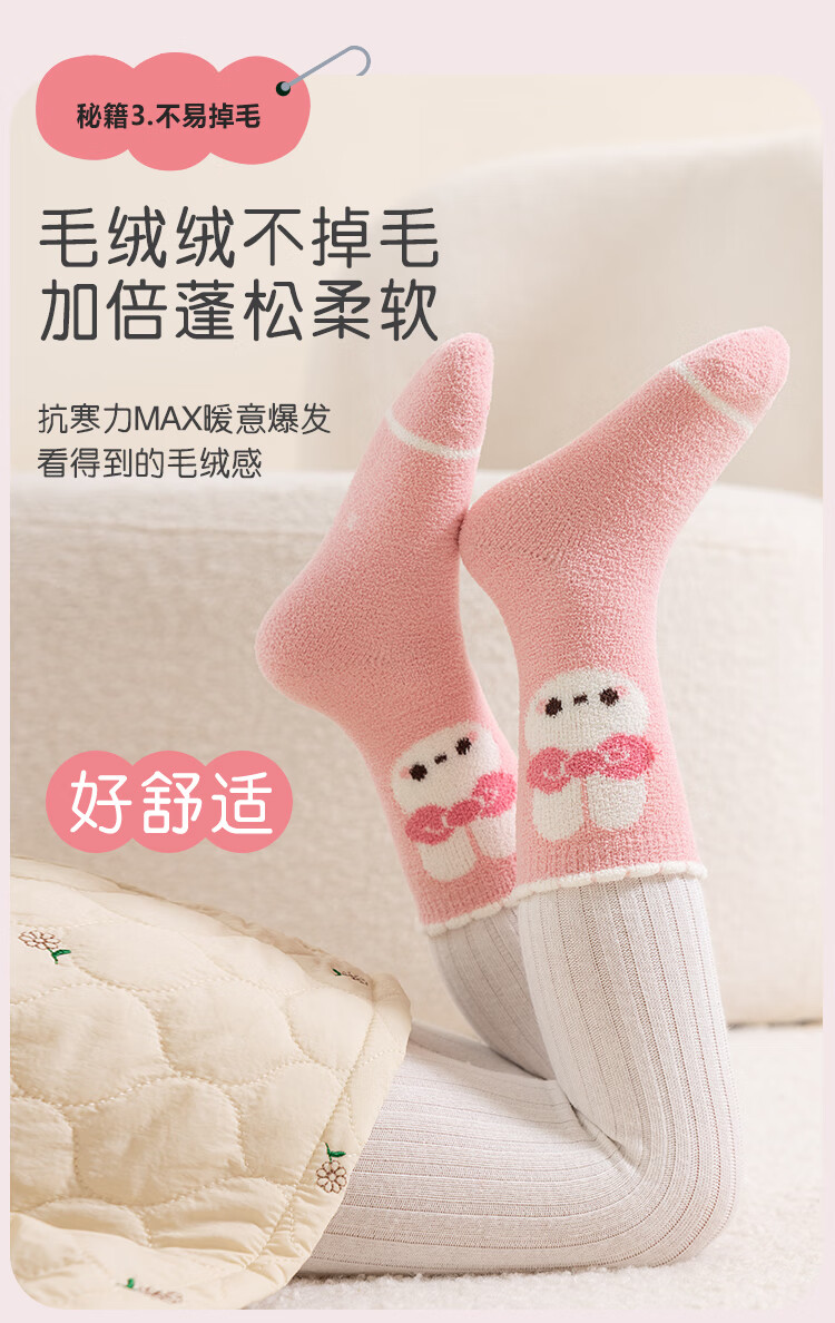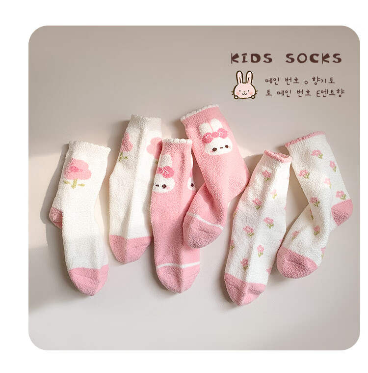 ALLO&LUGH Children's Socks Autumn and Winter Style Plus Velvet Thickened Baby Medium and Large Children's Warm Girls Cartoon Medium Socks 6 Pairs Nuomi Rabbit (Double-sided Warm Velvet) 9-12 Years Old (Suitable for Sizes 32-36)