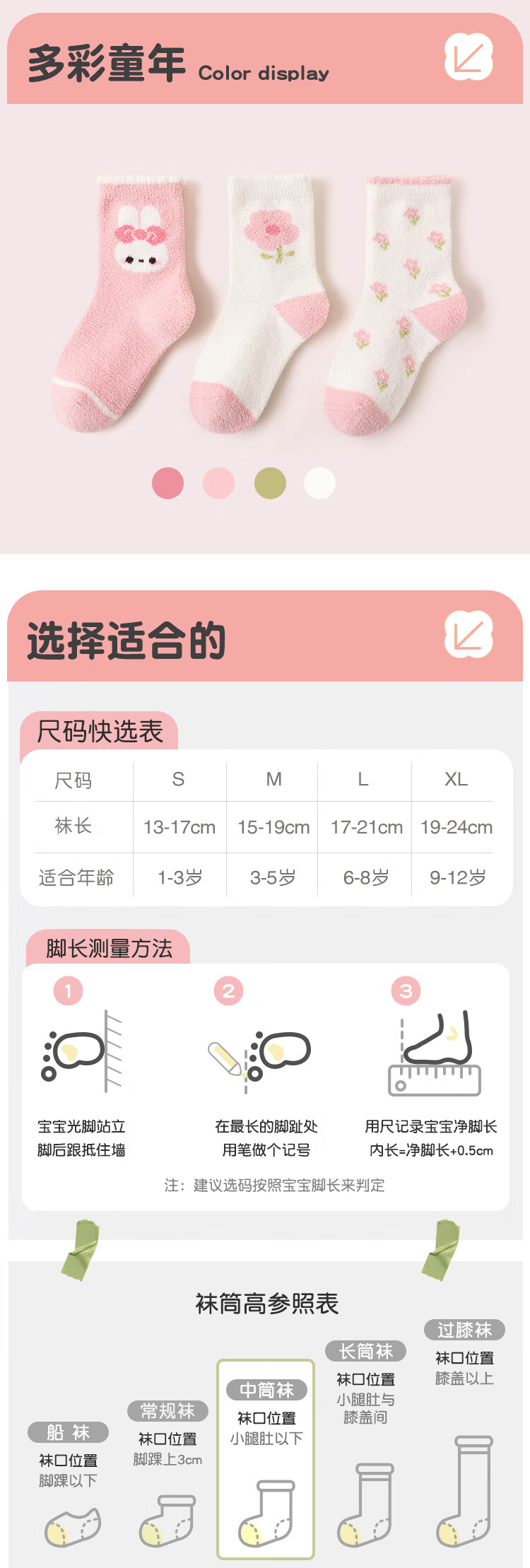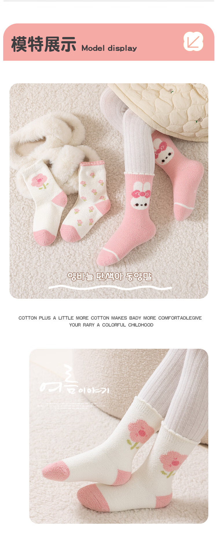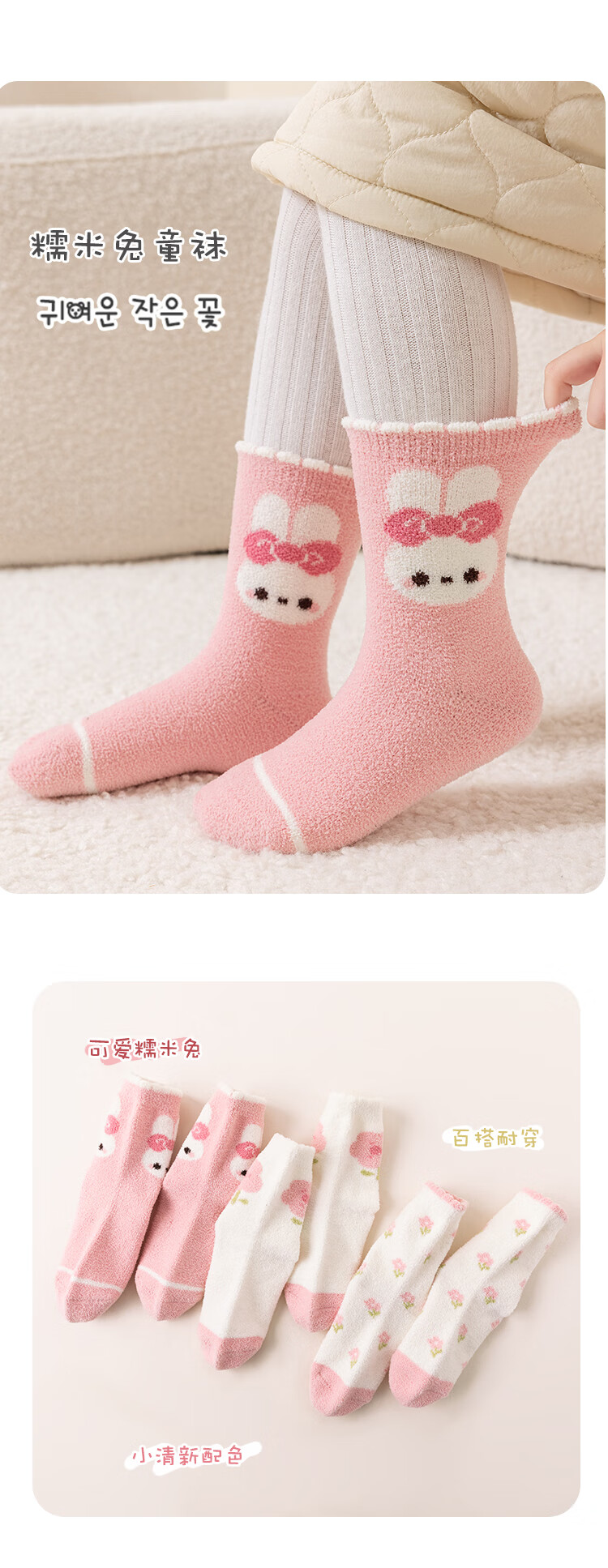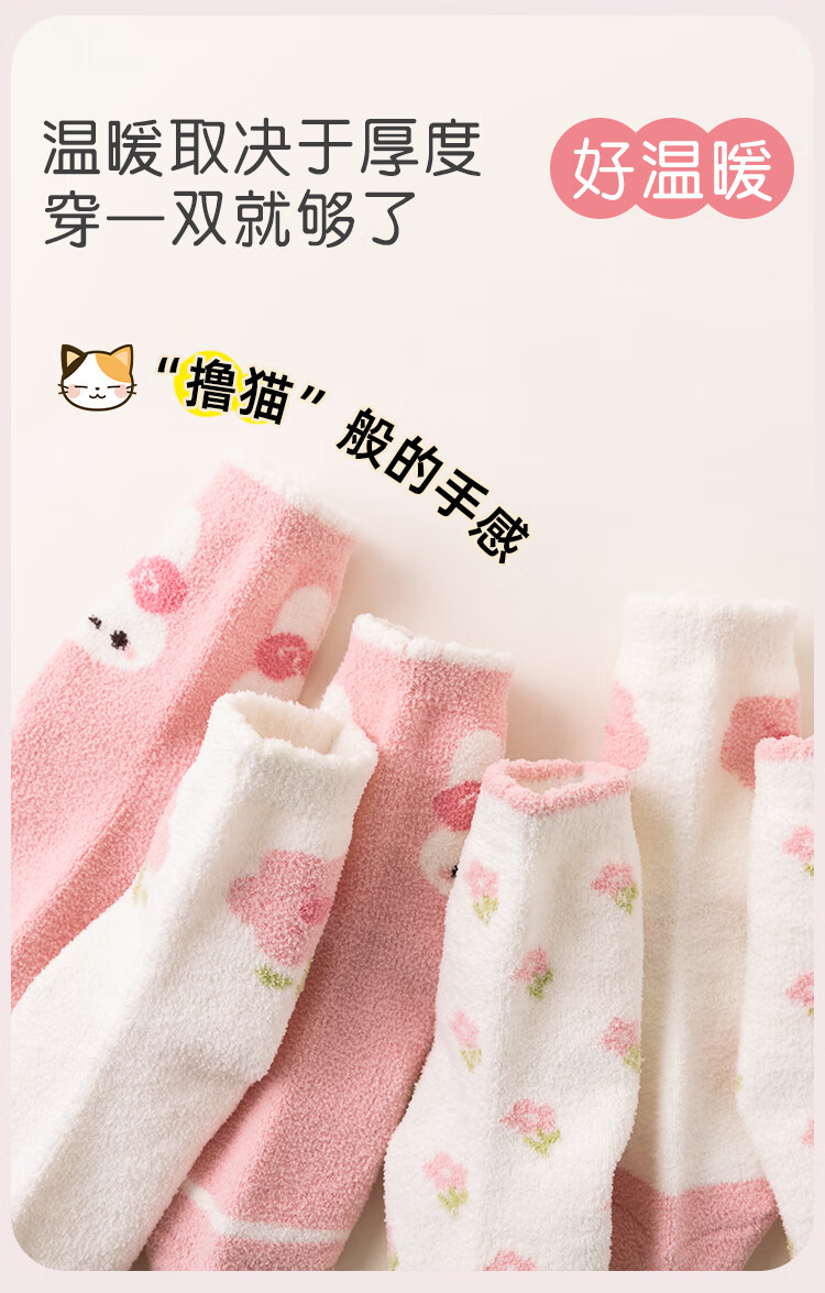 ALLO&LUGH Children's Socks Autumn and Winter Style Plus Velvet Thickened Baby Medium and Large Children's Warm Girls Cartoon Medium Socks 6 Pairs Nuomi Rabbit (Double-sided Warm Velvet) 9-12 Years Old (Suitable for Sizes 32-36)