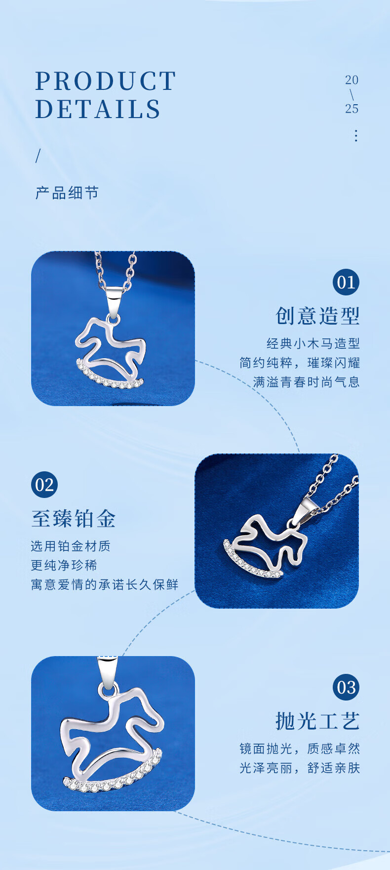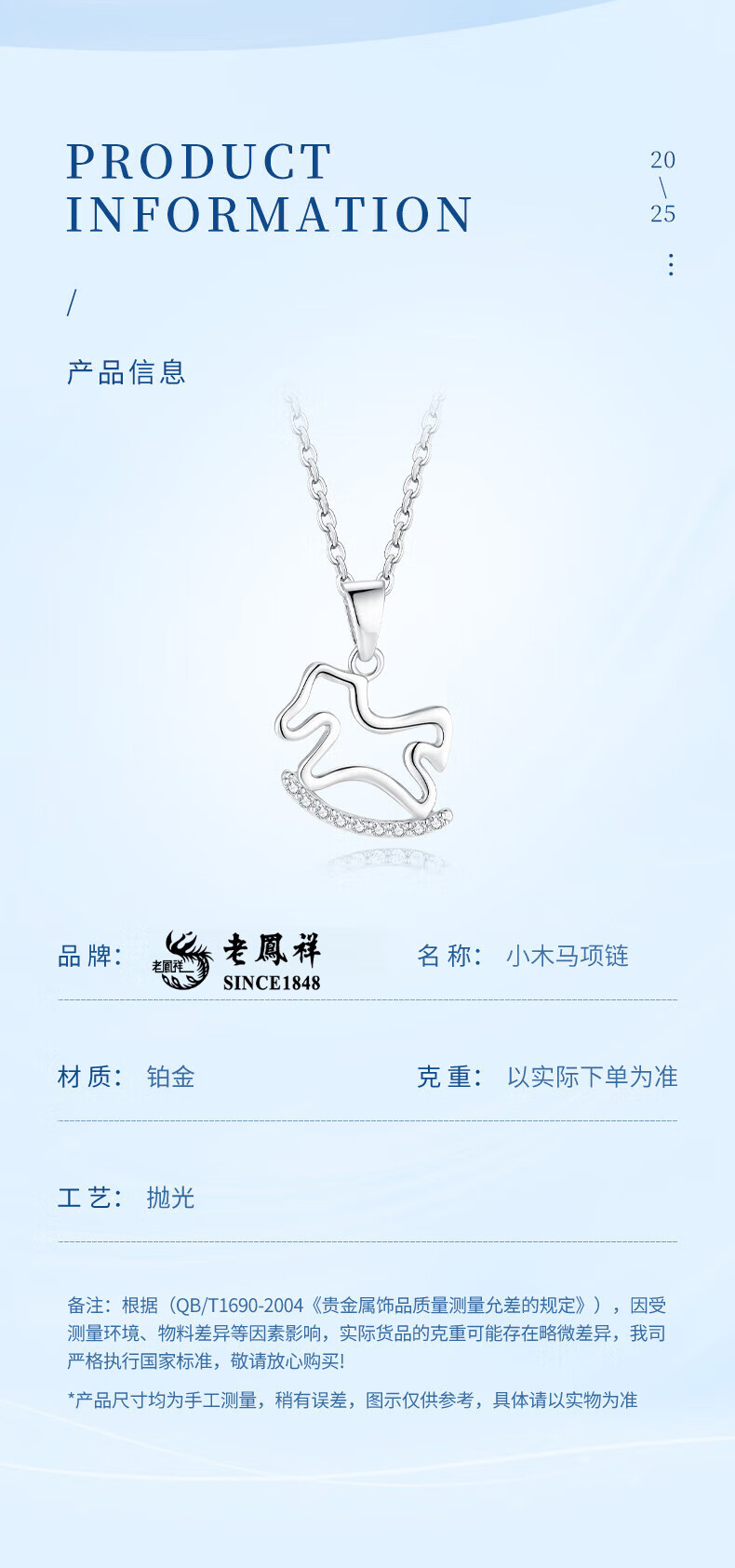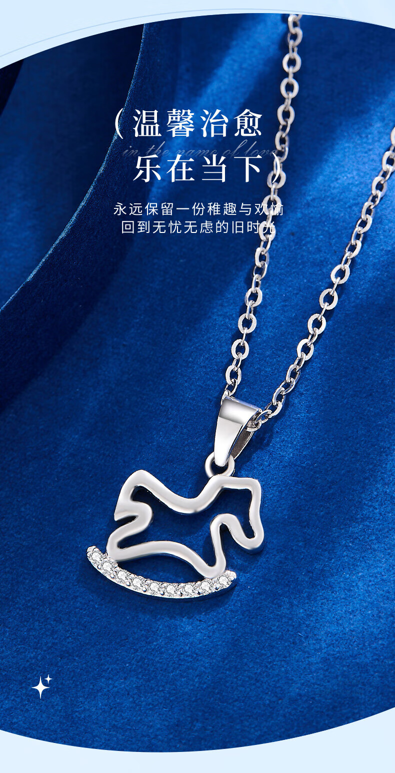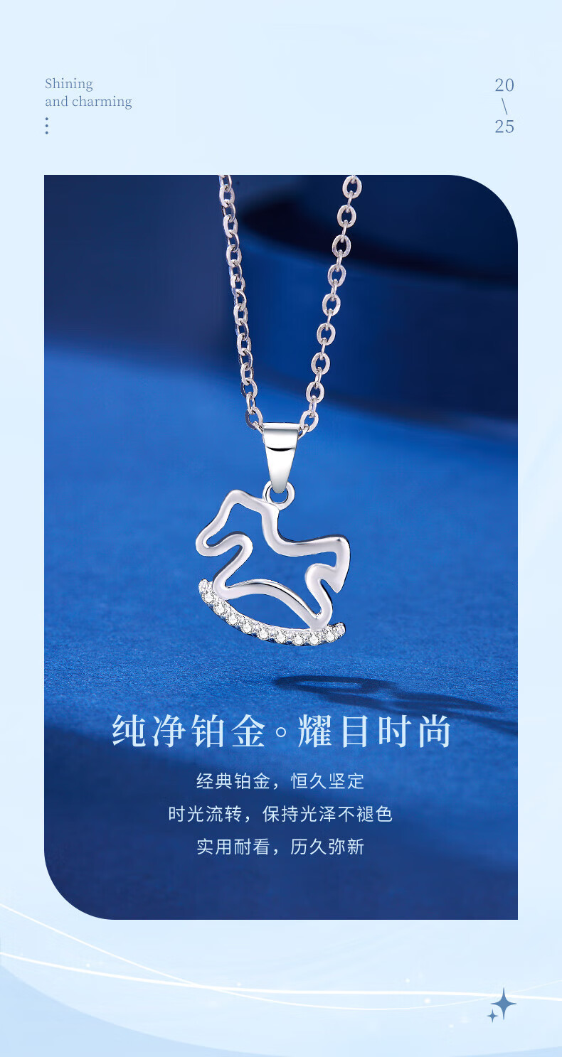 Lao Fengxiang pt950 platinum necklace for women, platinum Trojan horse pendant, zodiac horse, birth year necklace, birthday gift for girlfriend, platinum Trojan horse pendant, about 1.1g, free silver chain + brand gift box