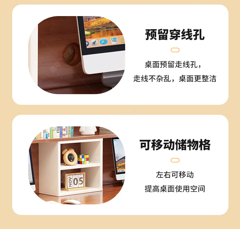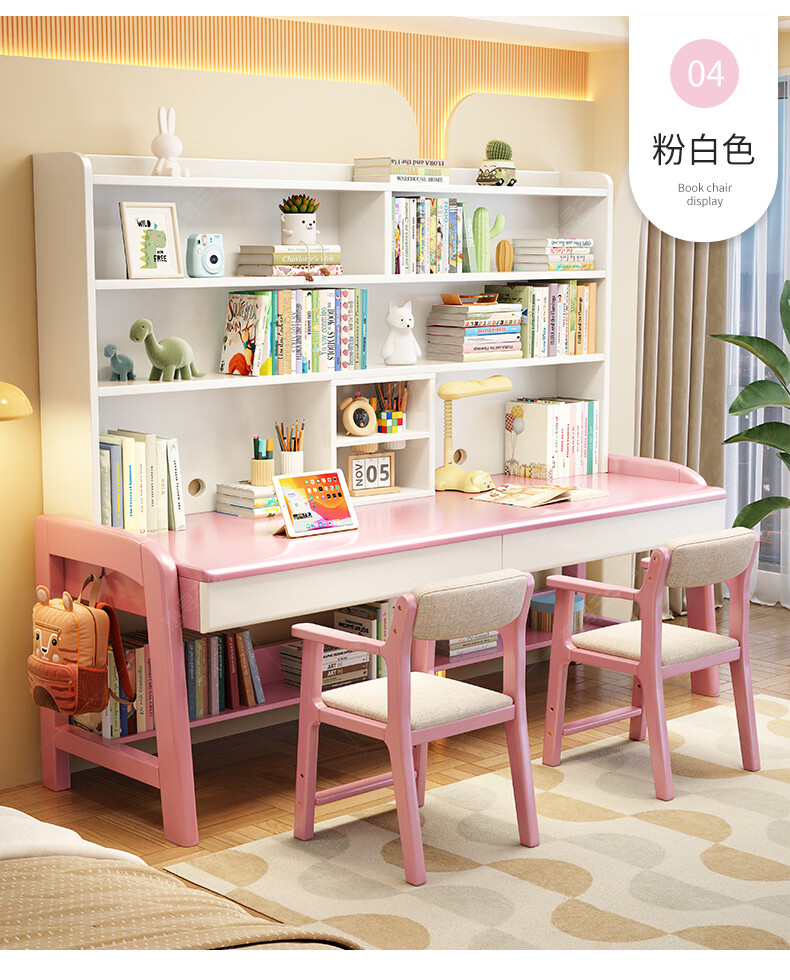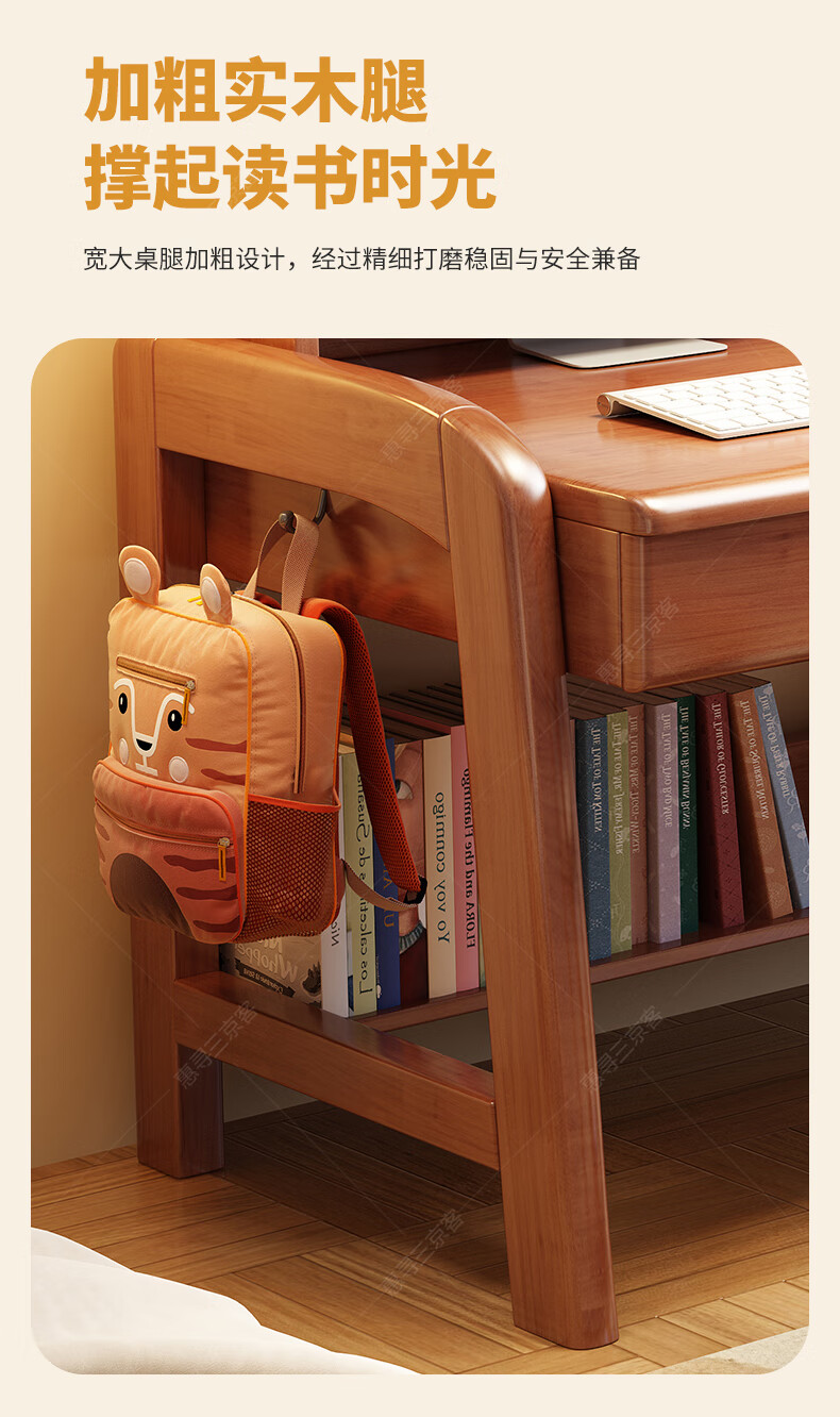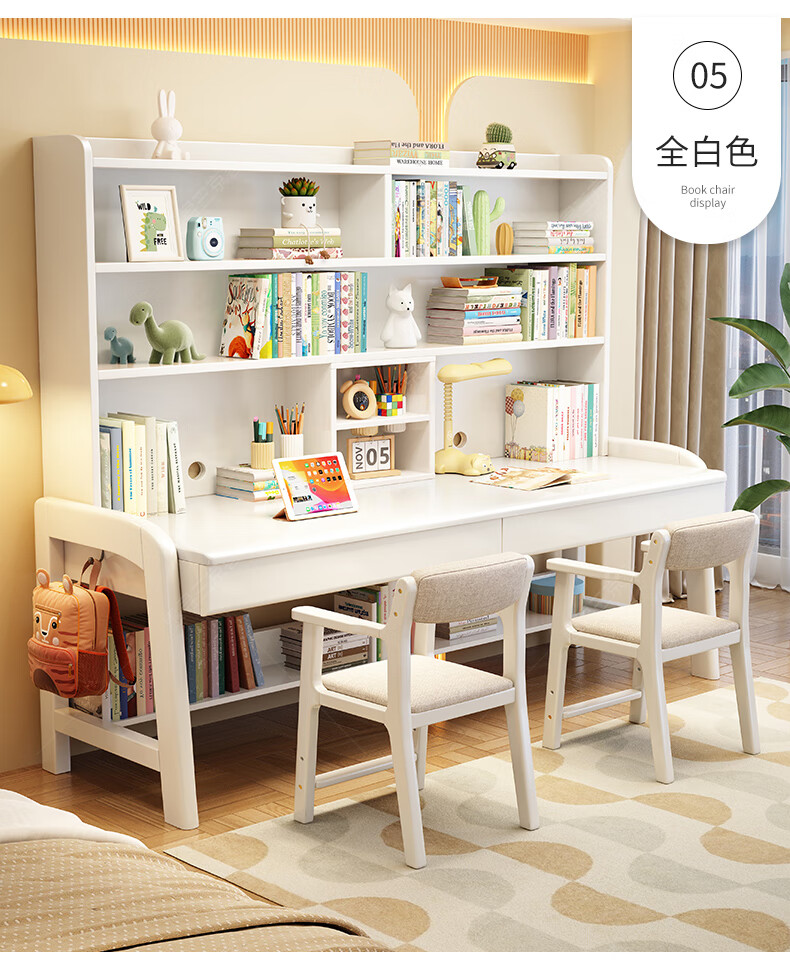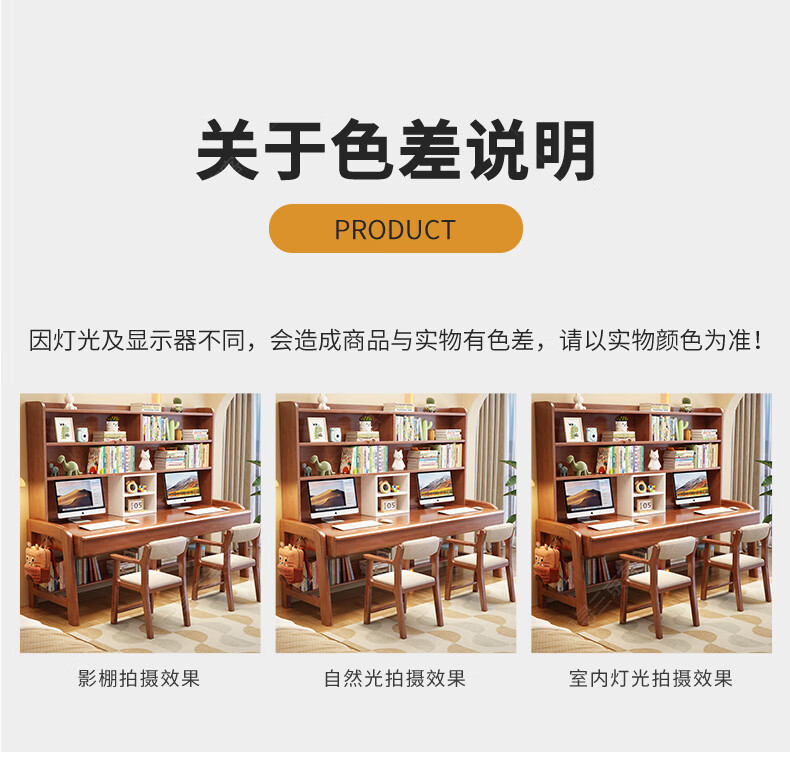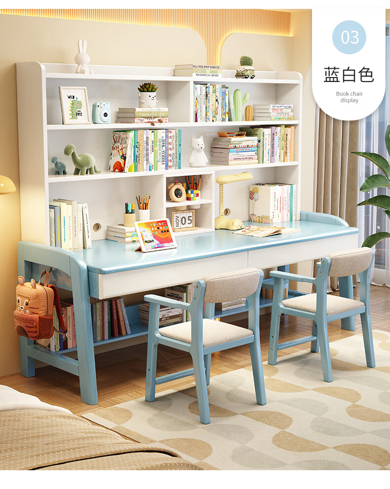 Huixun solid wood double desk bookshelf integrated home liftable children's study table study student study desk writing desk walnut color #desk + bookshelf 160cm*60cm*75cm total height 190cm