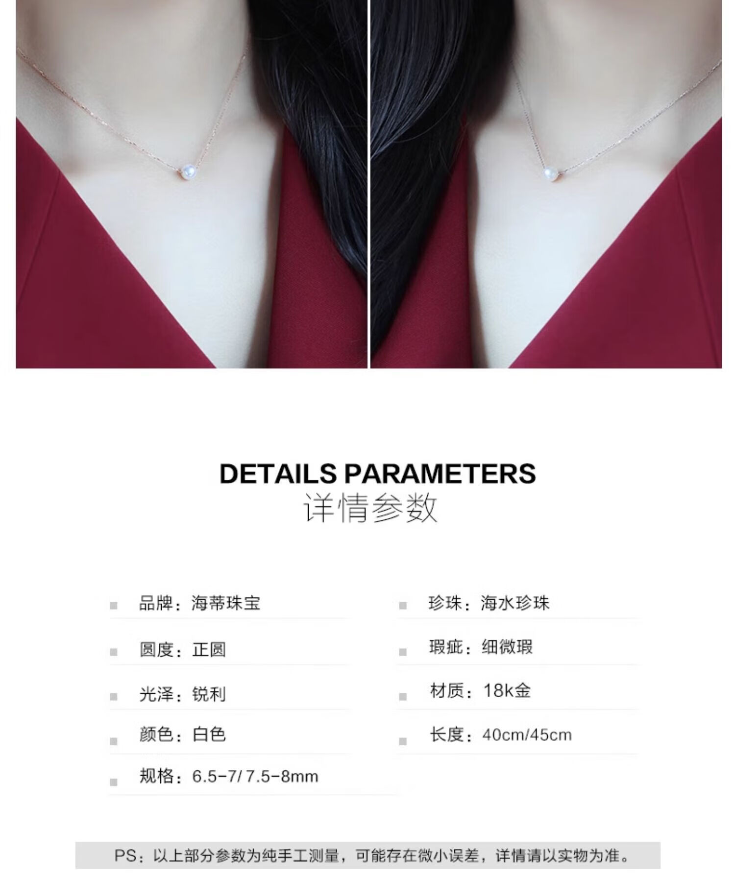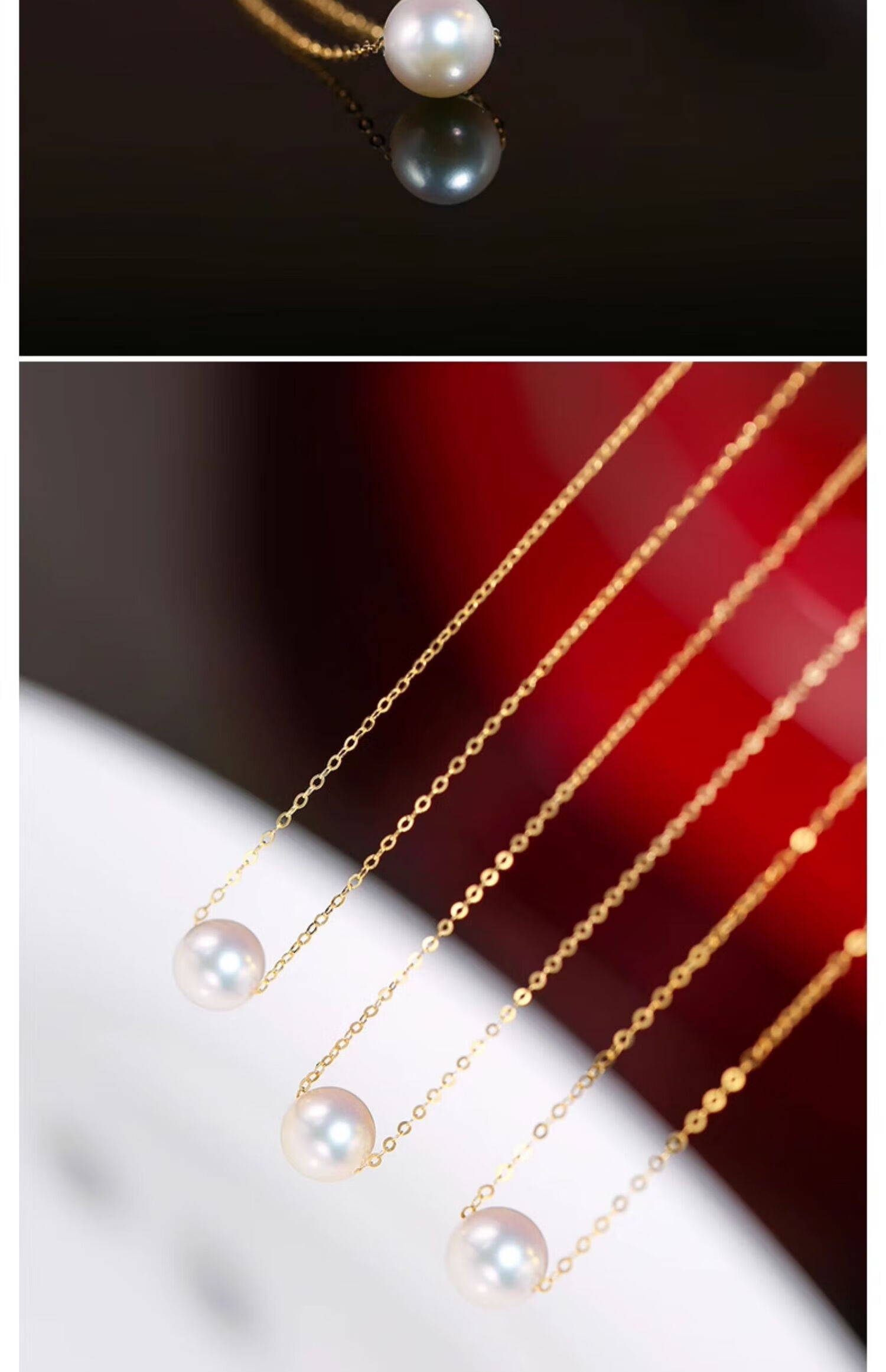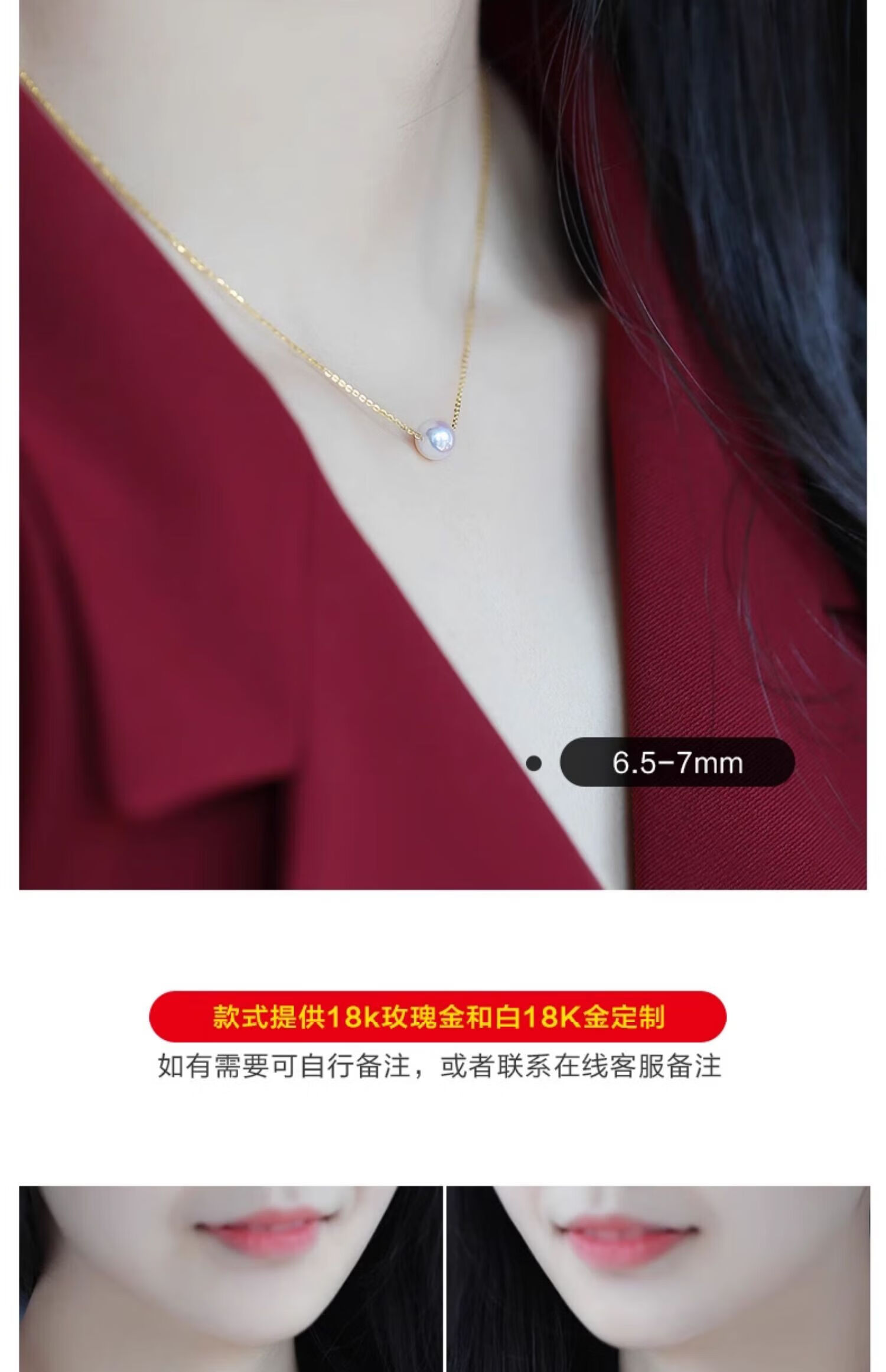 Dishi Jingyi Zhengyuan light bulb akoya seawater pearl necklace single pendant 18K gold birthday gift for girlfriend 6.5-7mm about 40cm