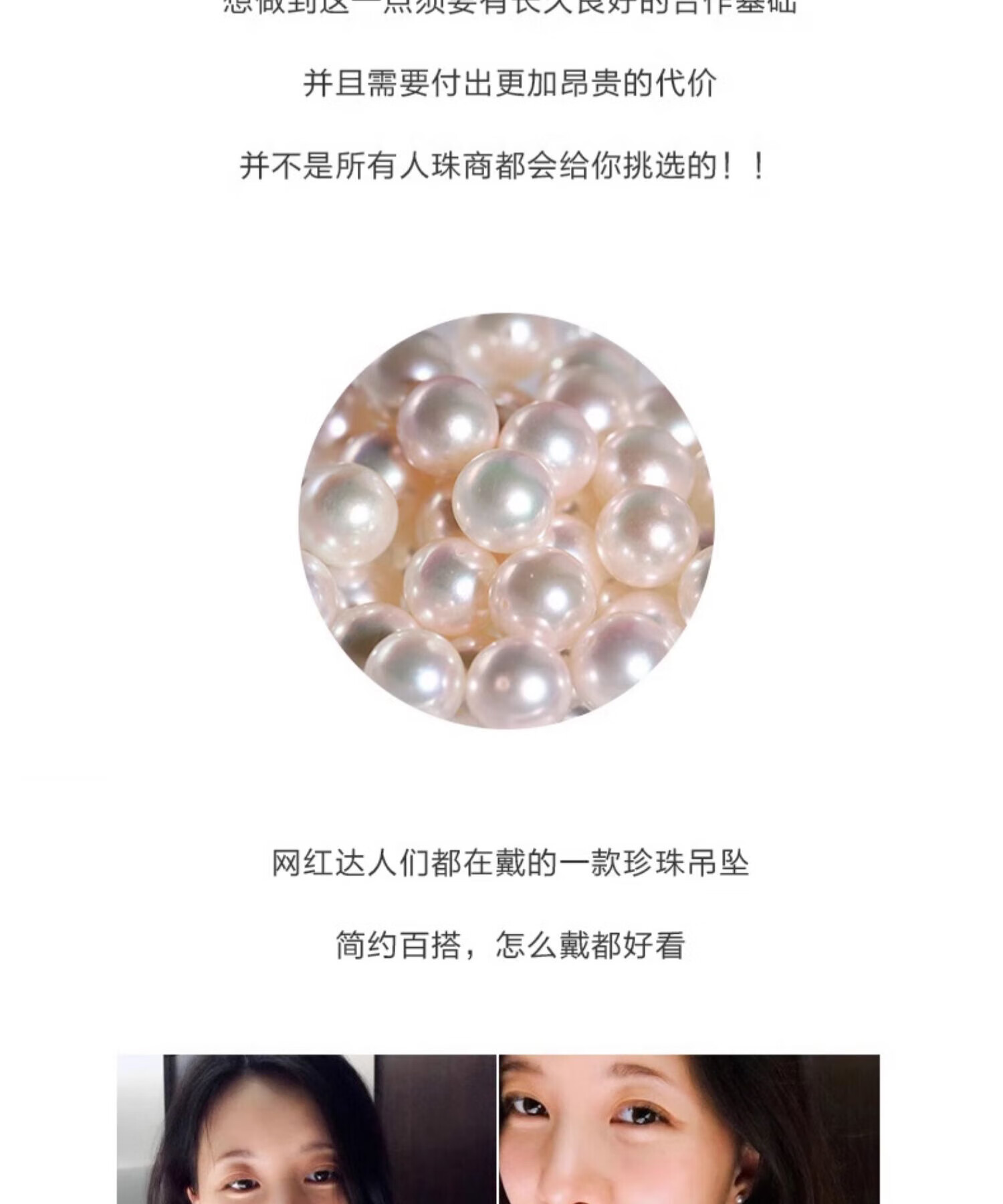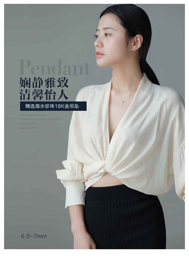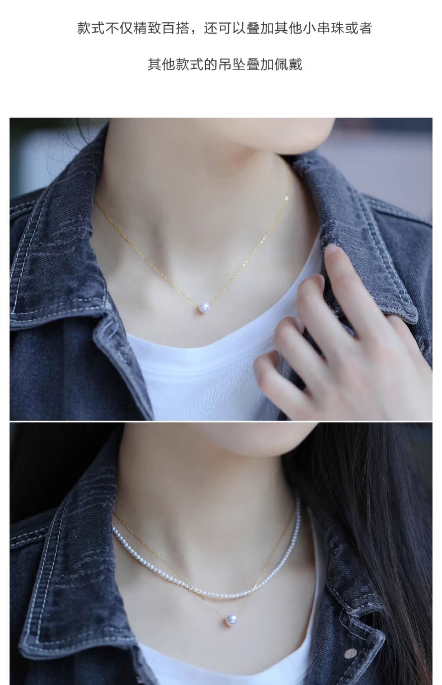 Dishi Jingyi Zhengyuan light bulb akoya seawater pearl necklace single pendant 18K gold birthday gift for girlfriend 6.5-7mm about 40cm