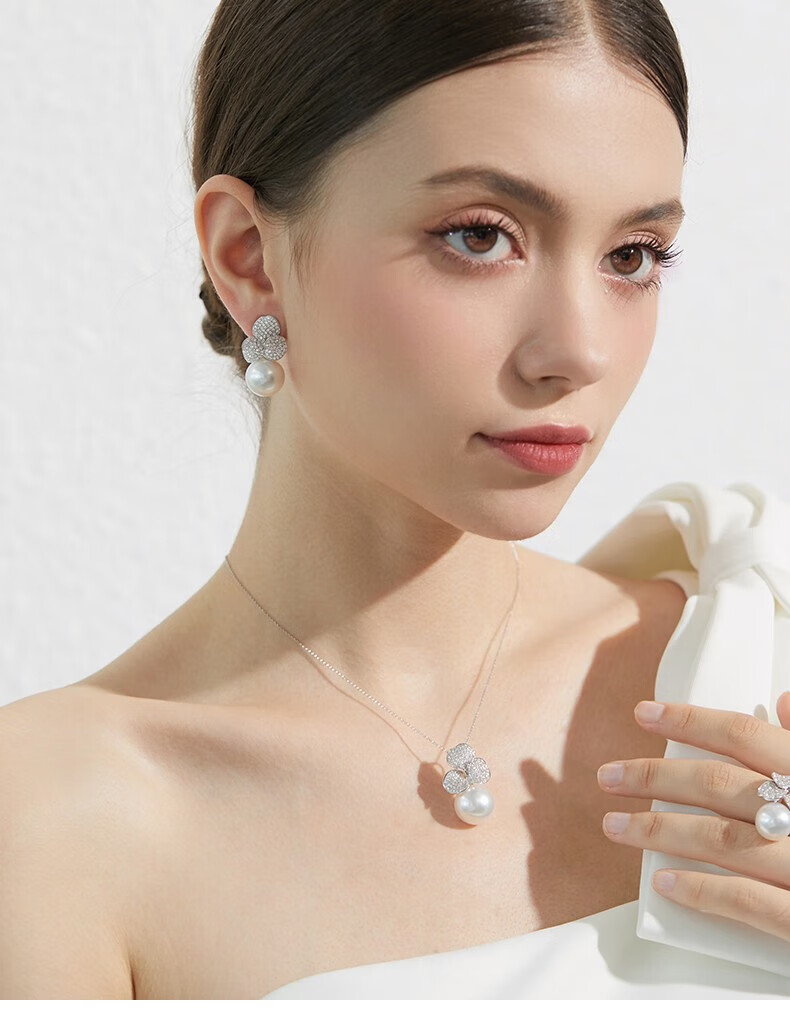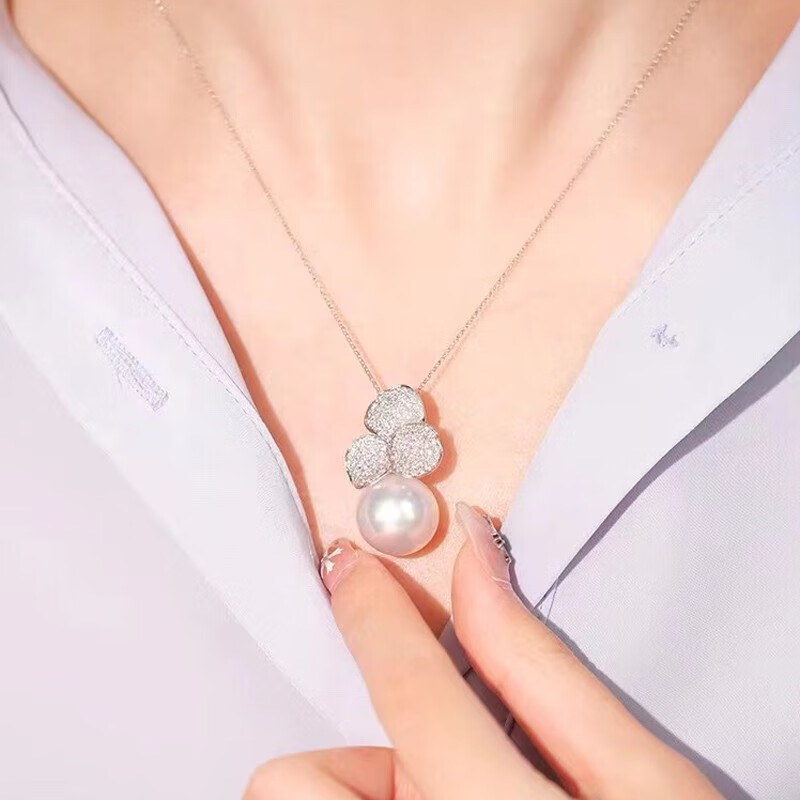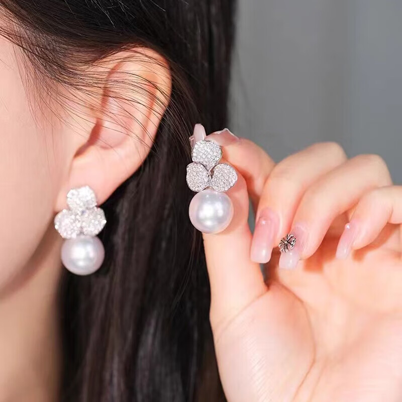 Fuwu fashionable and simple freshwater pearl pendant earrings, 925 silver inlaid with high-end round high-gloss freshwater pearl pendant (with silver chain)