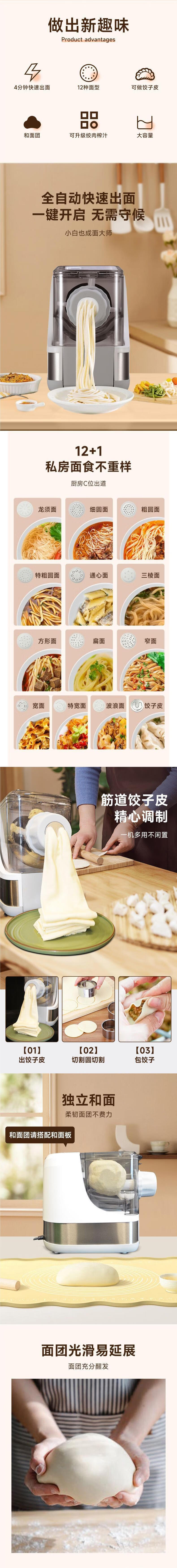 Dingmi fully automatic noodle machine, household intelligent multi-functional dough press, kneading machine and integrated dough kneading machine, other upgraded white + dough + minced meat + juice extraction