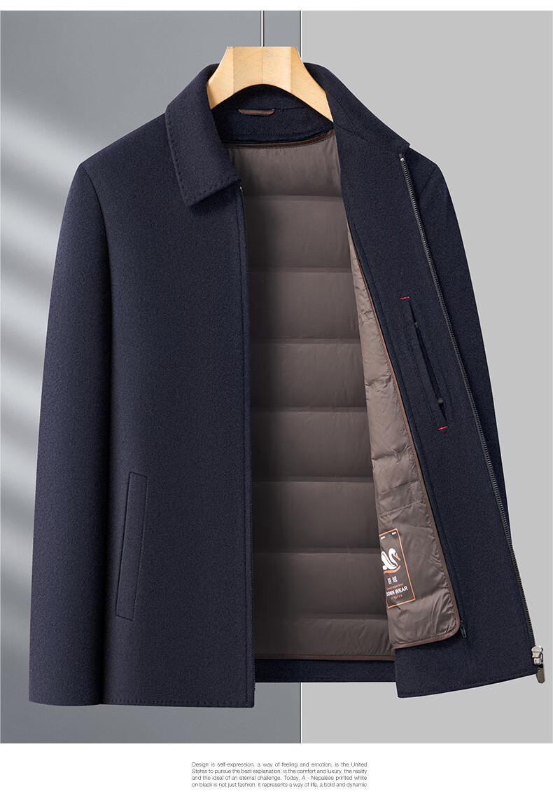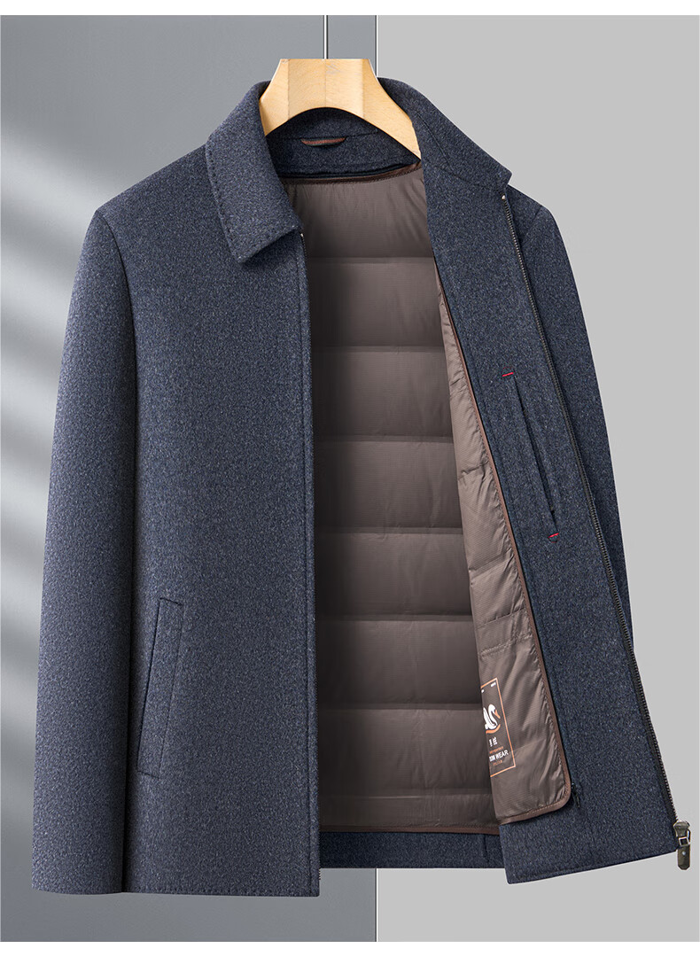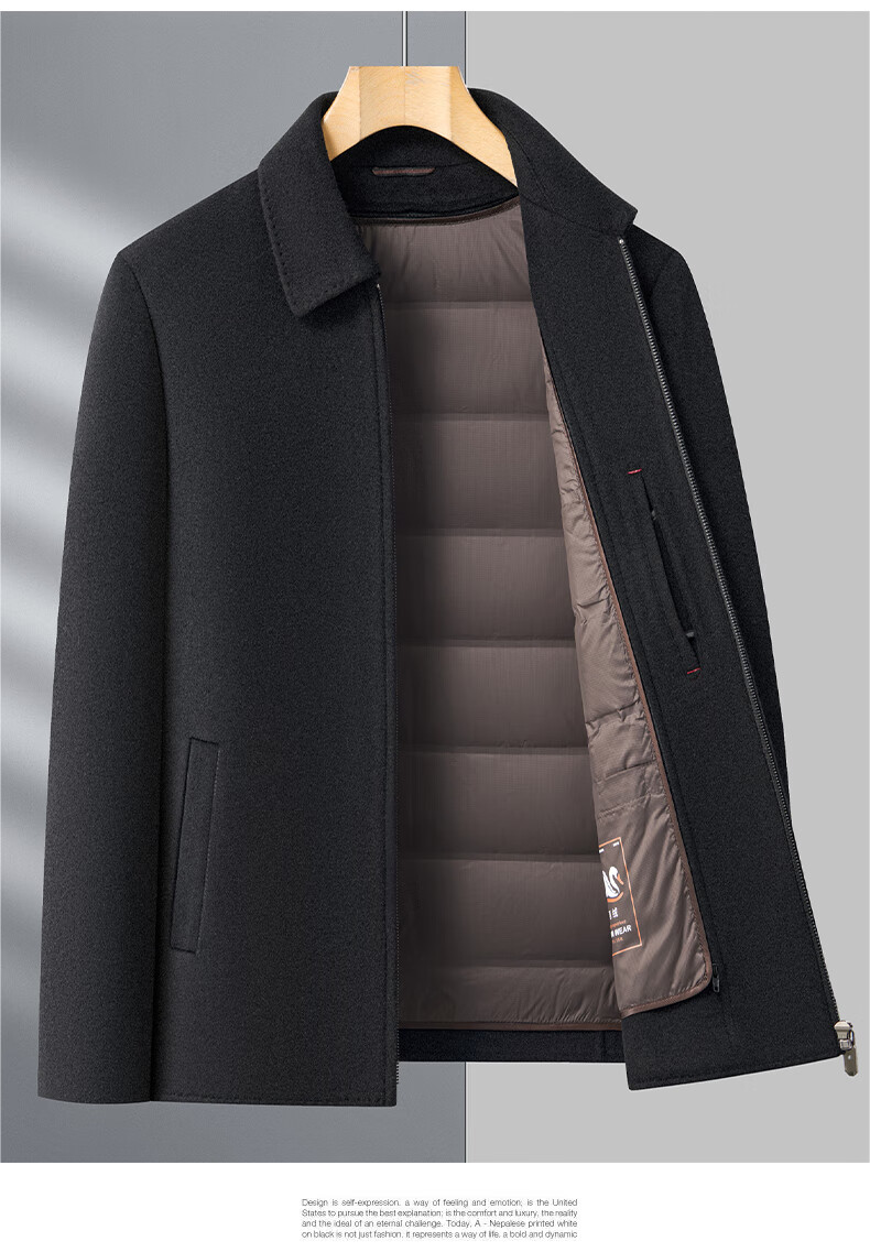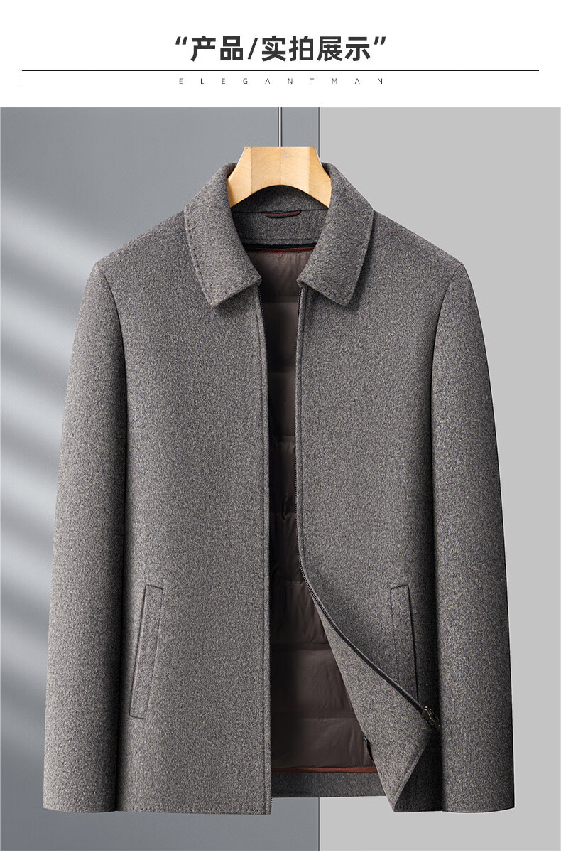 MONTAGUT autumn and winter double-sided cashmere jacket men's down liner thickened woolen woolen coat middle-aged dad's jacket men's khaki M 170-