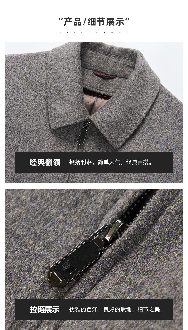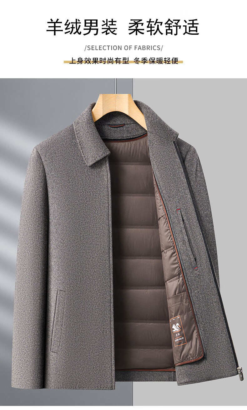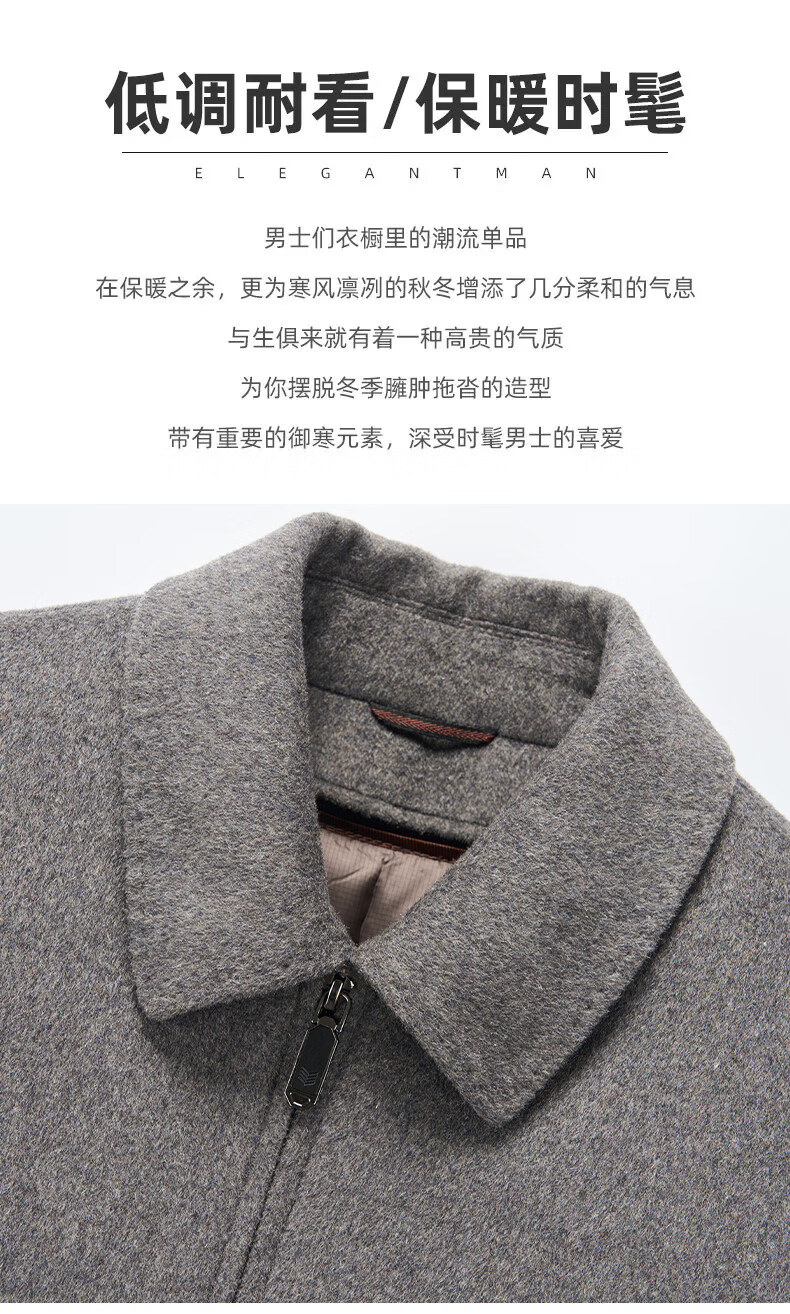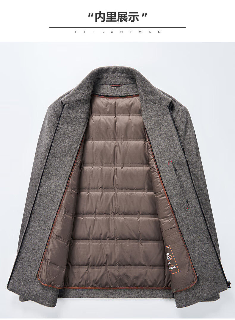 MONTAGUT autumn and winter double-sided cashmere jacket men's down liner thickened woolen woolen coat middle-aged dad's jacket men's khaki M 170-