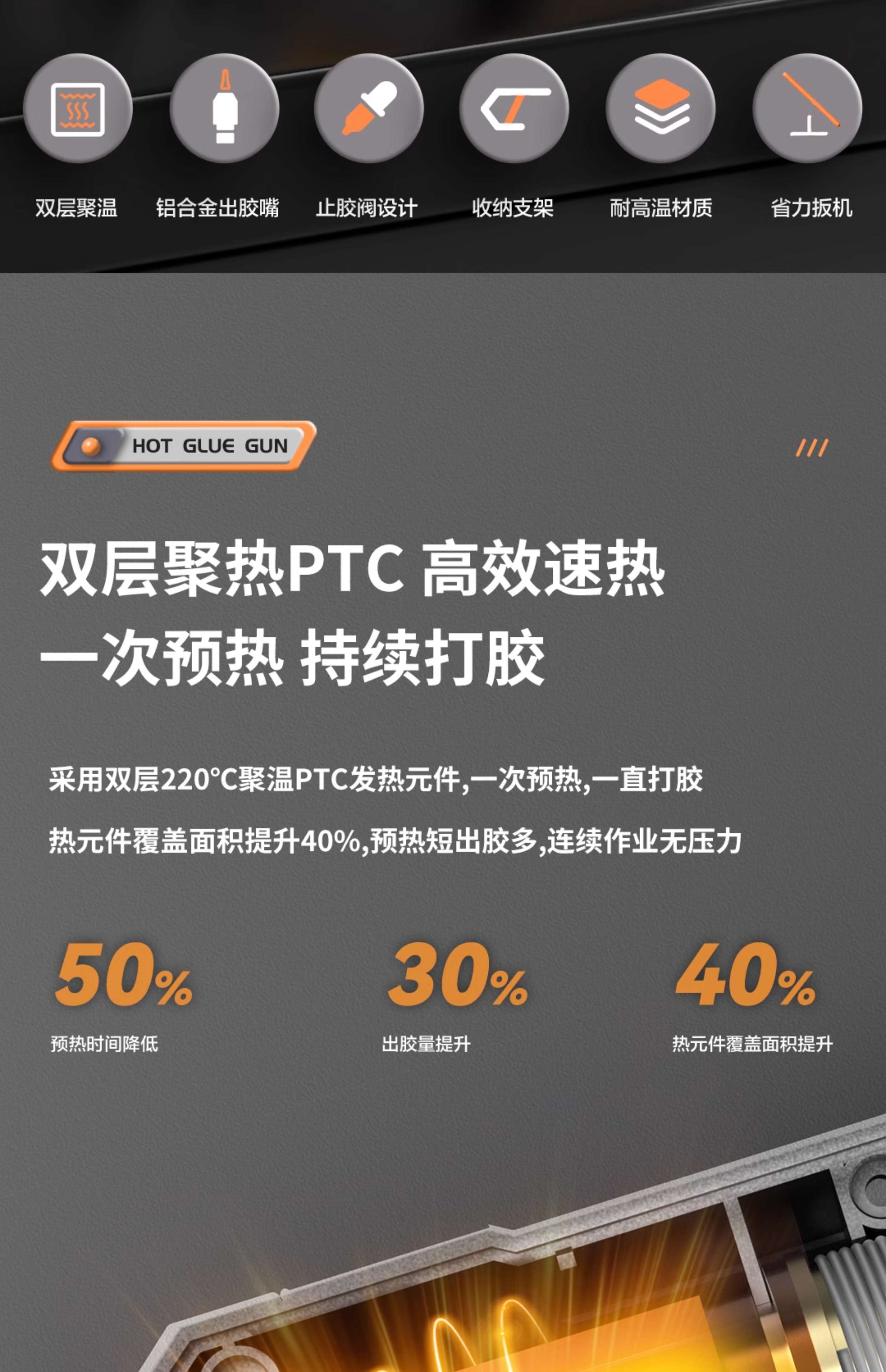 DUNSK hot melt glue industrial grade high power 100300W manual hot melt glue stick 11mm double PTC heating core 100W glue + 60 glue sticks