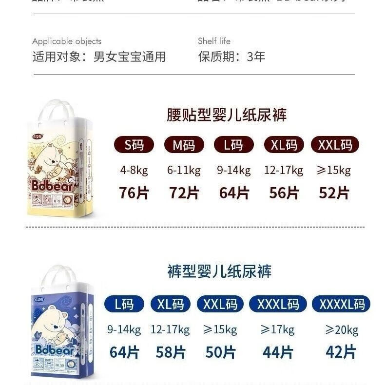 Picture man Bdbear baby diaper pull-up pants breathable baby diapers dry and leak-proof diapers M size 72 pieces