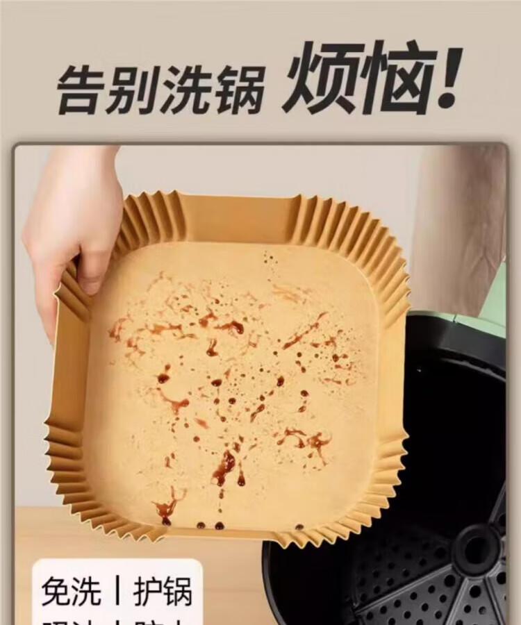 He Jiagong air fryer special paper household baking thickened oil-absorbing pad paper silicone baking pan pot oven food paper bowl large thickened square * 100 sheets (3-6L fried