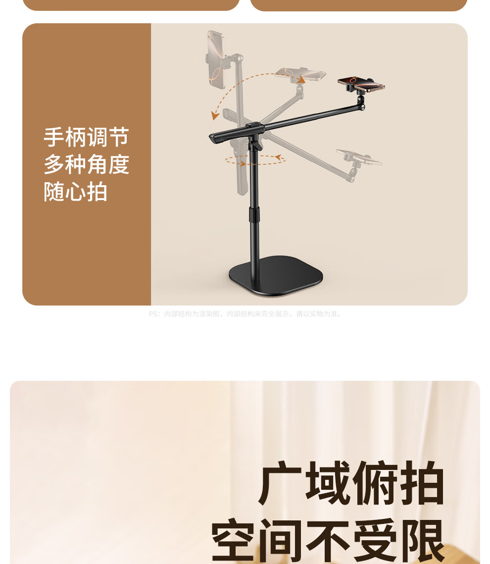 Sleip's new cantilever overhead shot stand, live broadcast mobile phone holder, desktop shooting special handle with Bluetooth full set of equipment for taking pictures, calligraphy, gourmet food and jewelry, multi-functional recording and video stand, standard version, overhead shot + live broadcast + remote control