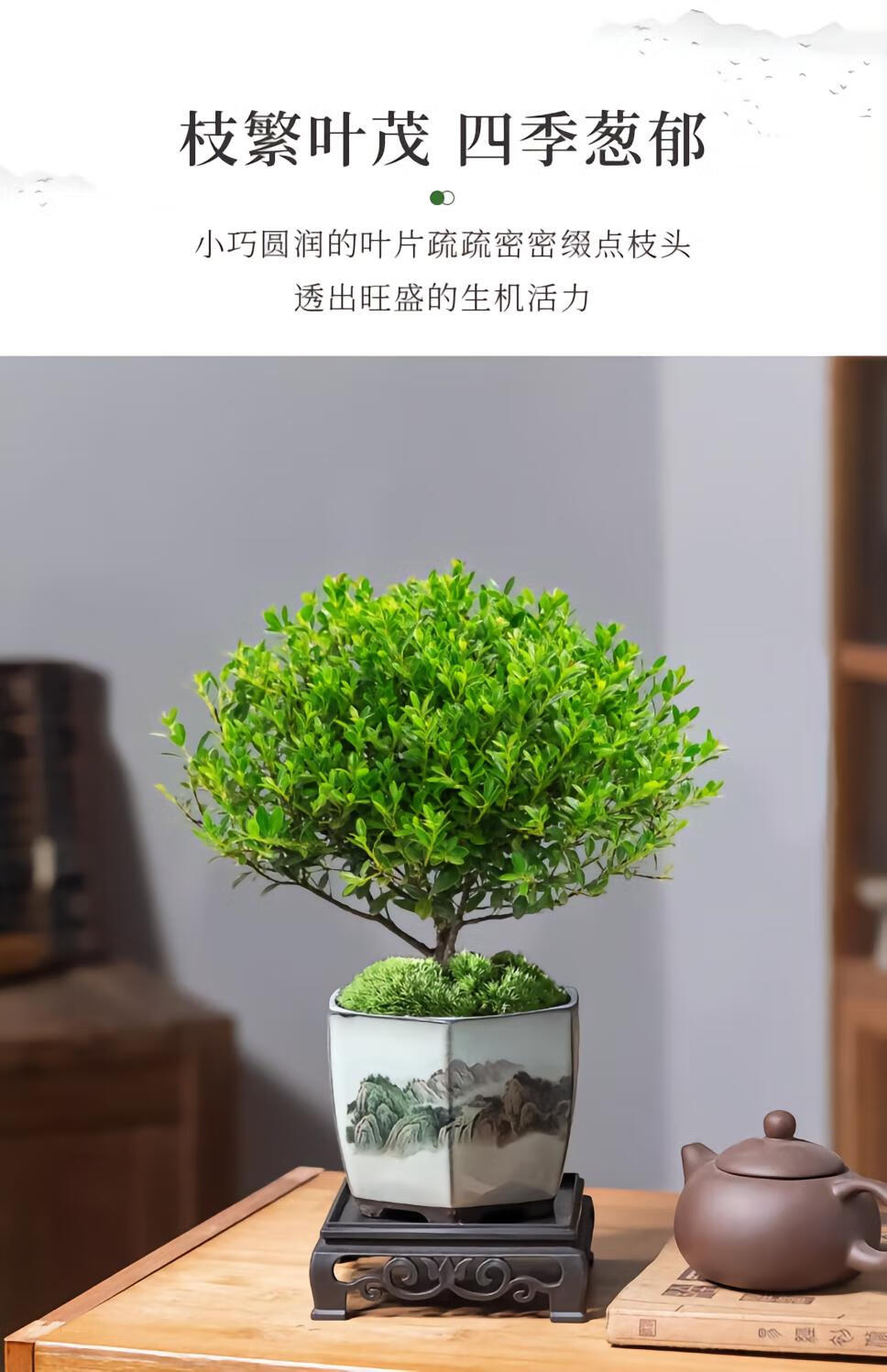 Trichophyton bonsai old pile potted plant office indoor flower desktop evergreen all year round easy to maintain green plants Trichophyton floribunda + willing pot + moss + base