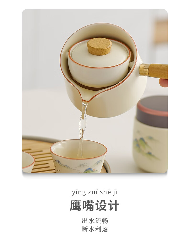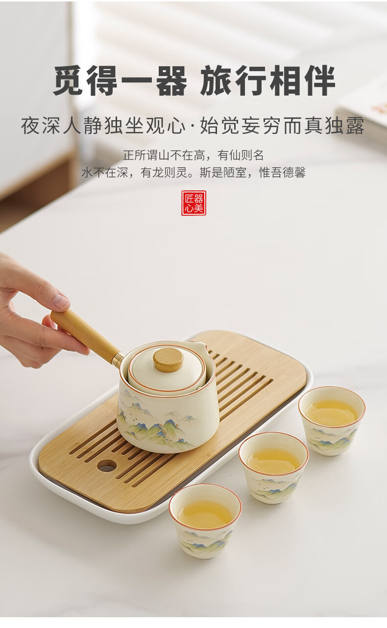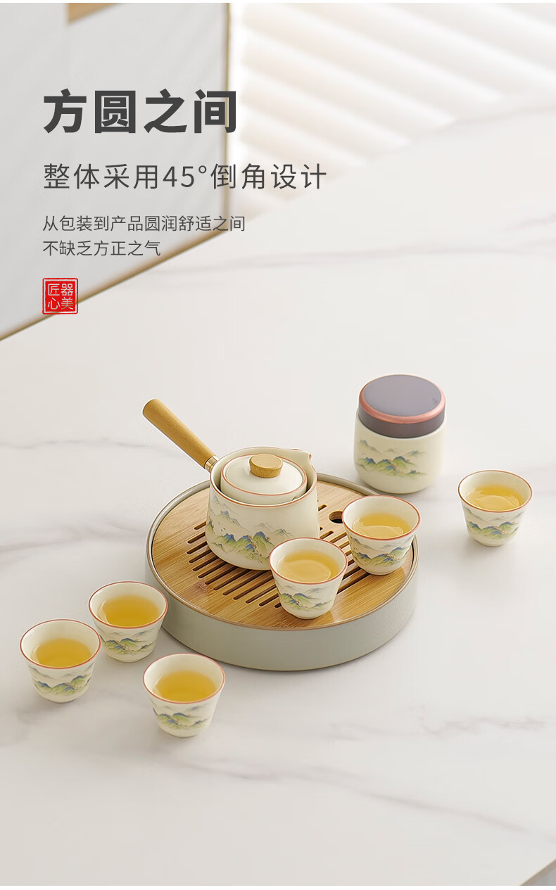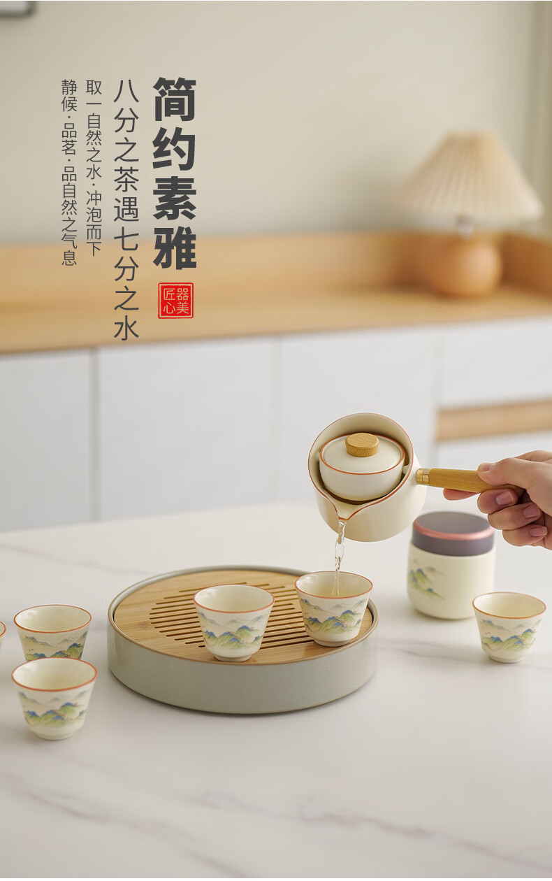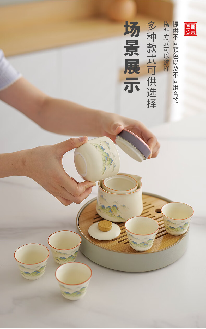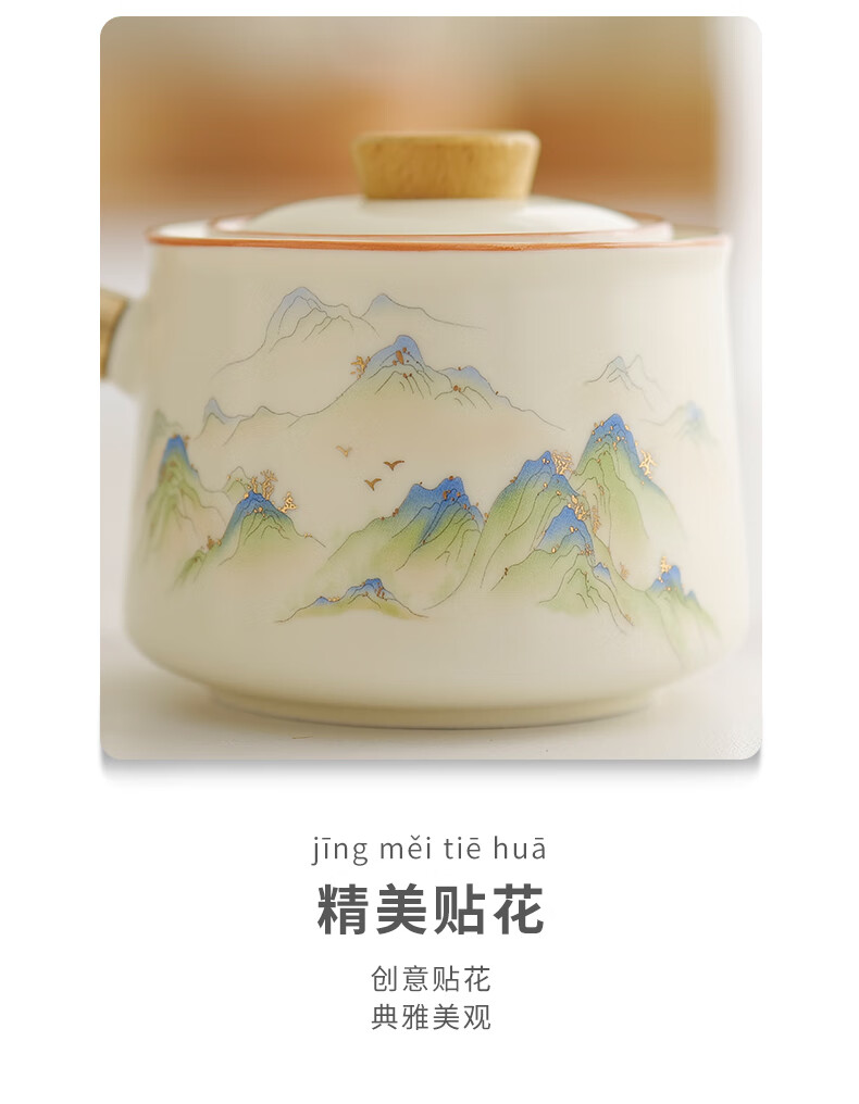 Song Jian White Porcelain Rotating Automatic Teapot Kung Fu Tea Set Outdoor Travel Portable Lazy Tea Making Artifact Rotating Brewing Huang Ru Xiaoyao Pot (Yuanshan Ink) - Single Pot No Specifications