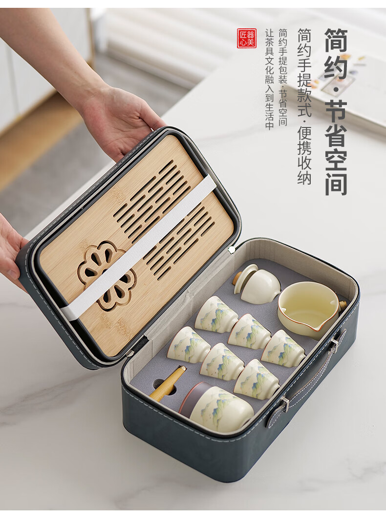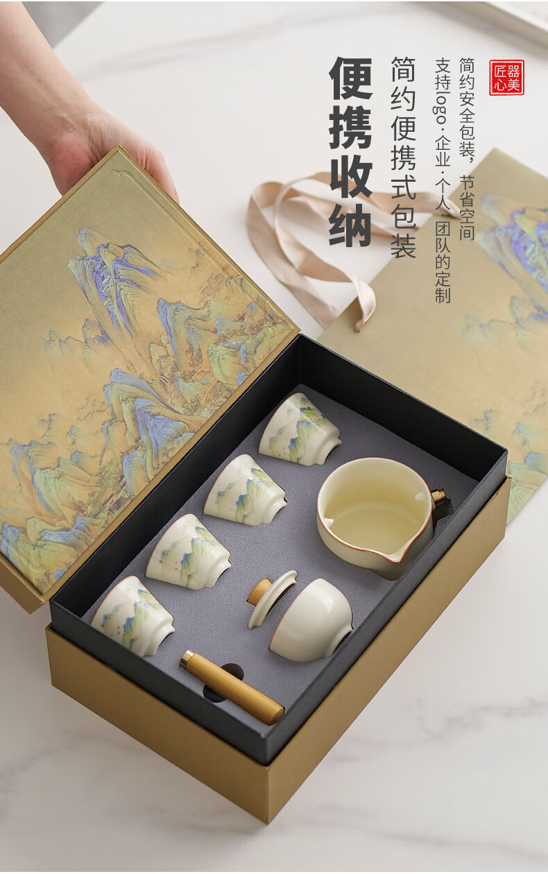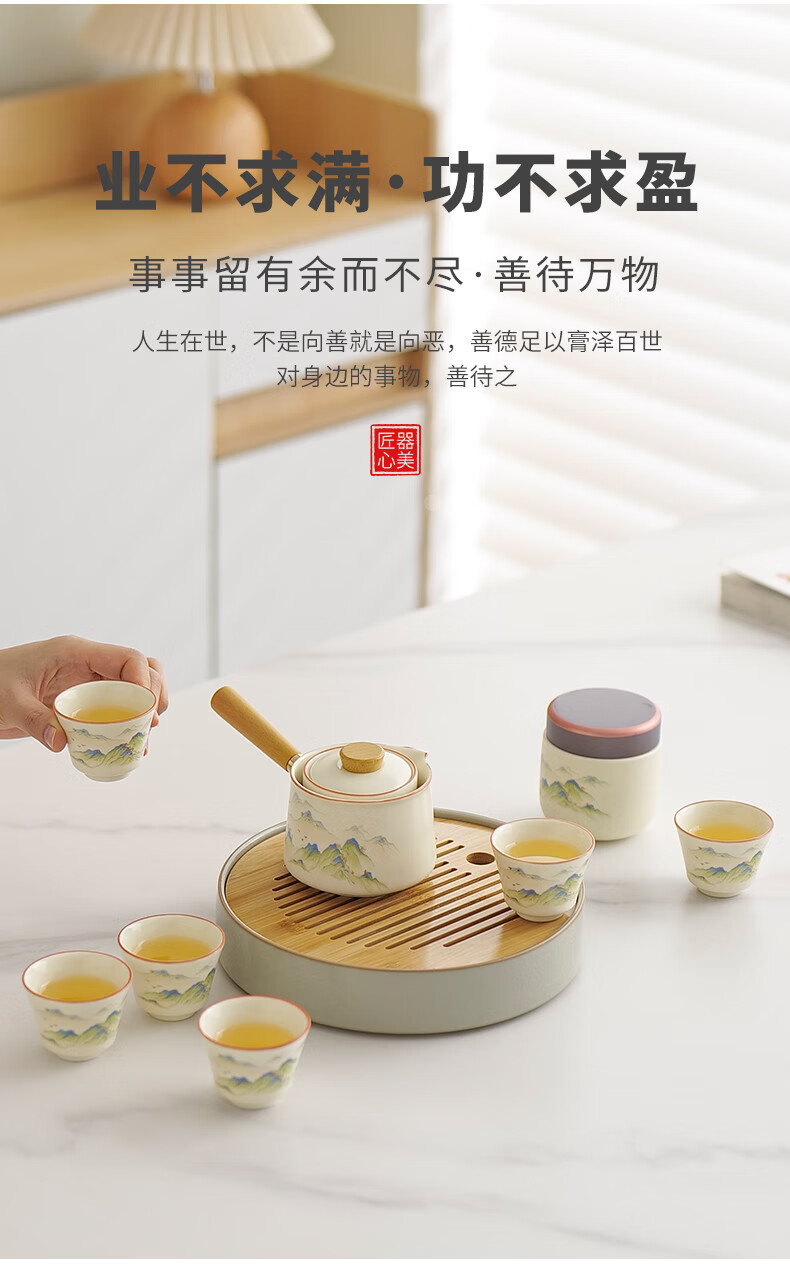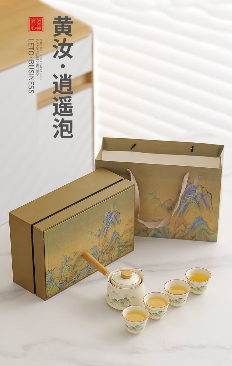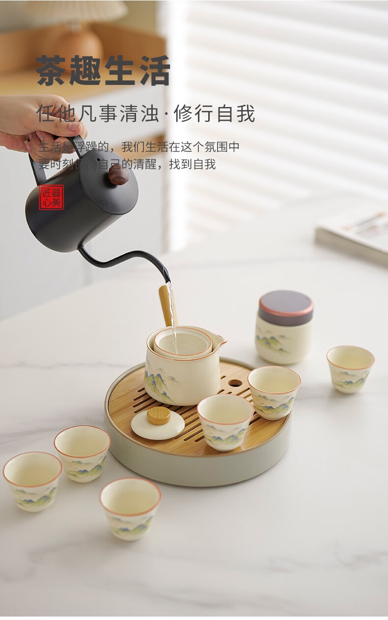 Song Jian White Porcelain Rotating Automatic Teapot Kung Fu Tea Set Outdoor Travel Portable Lazy Tea Making Artifact Rotating Brewing Huang Ru Xiaoyao Pot (Yuanshan Ink) - Single Pot No Specifications