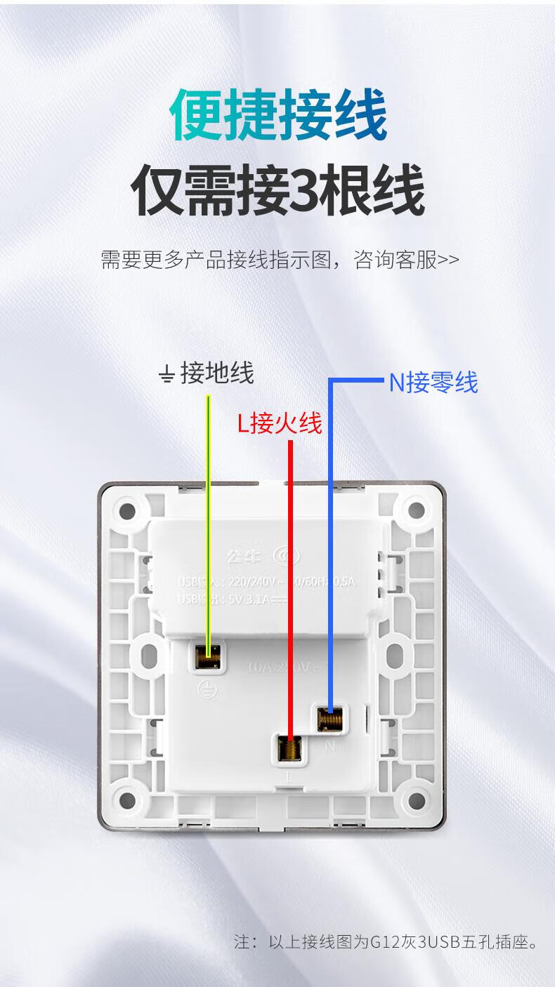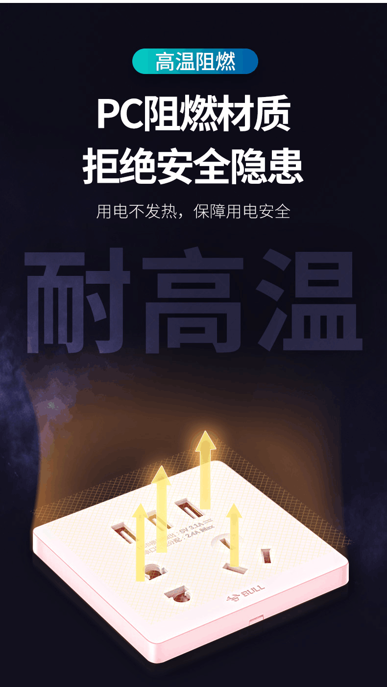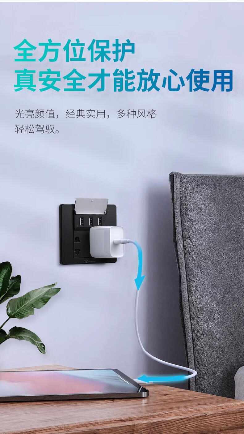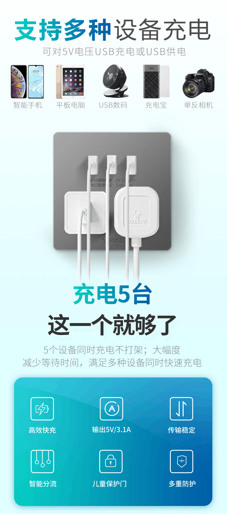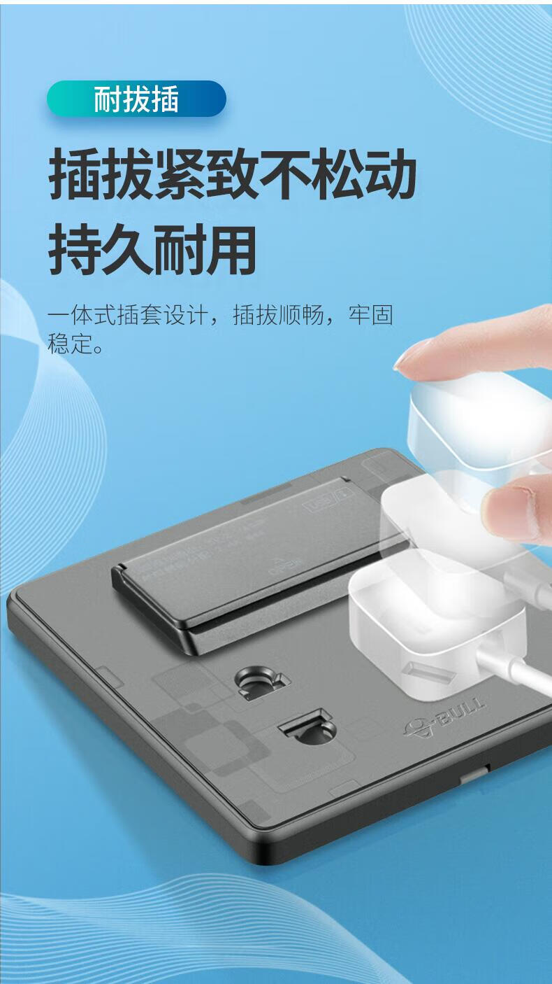 Bull household USB socket with 5 five-hole socket panel mobile phone charging fast charging hotel dedicated 86 concealed two-position USB five-hole socket white