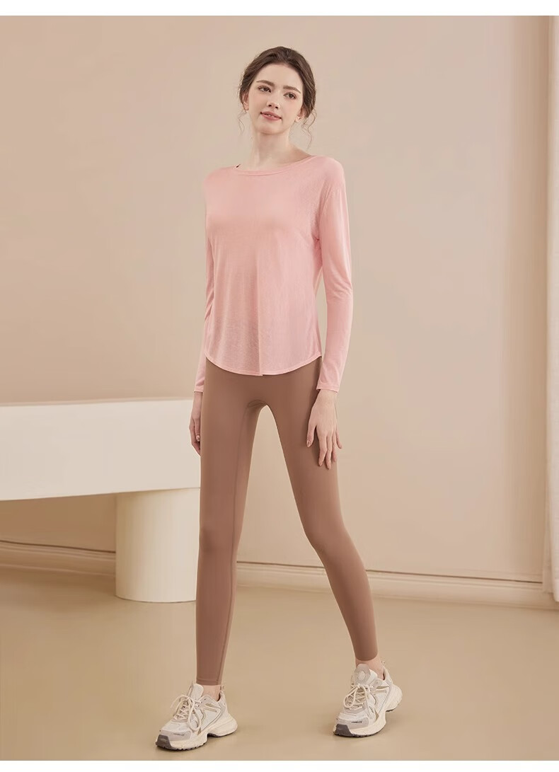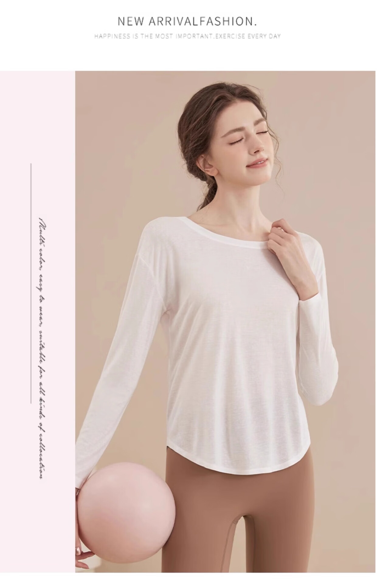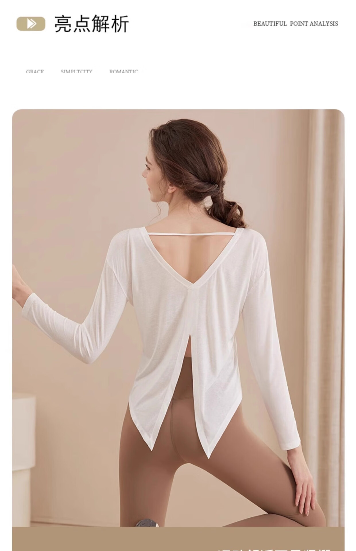 Bright dip yoga wear women's long-sleeved T-shirt spring and autumn new professional Pilates back loose fitness sports blouse top white M 100-110Jin Jin equals 0.5 kg