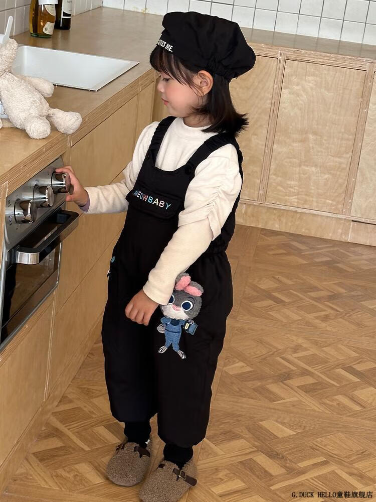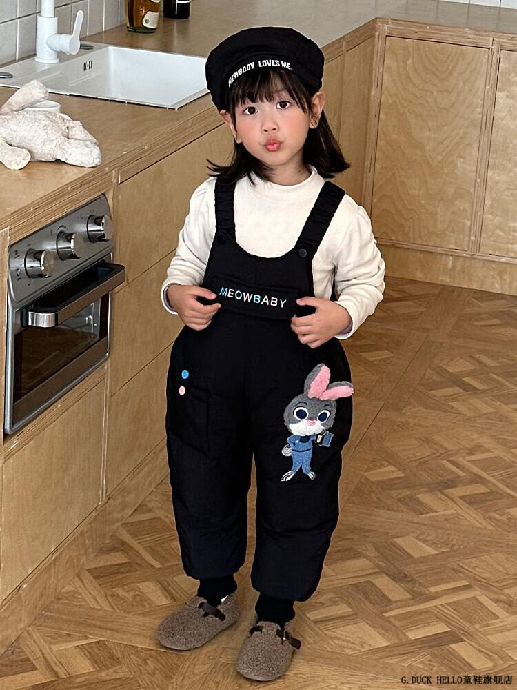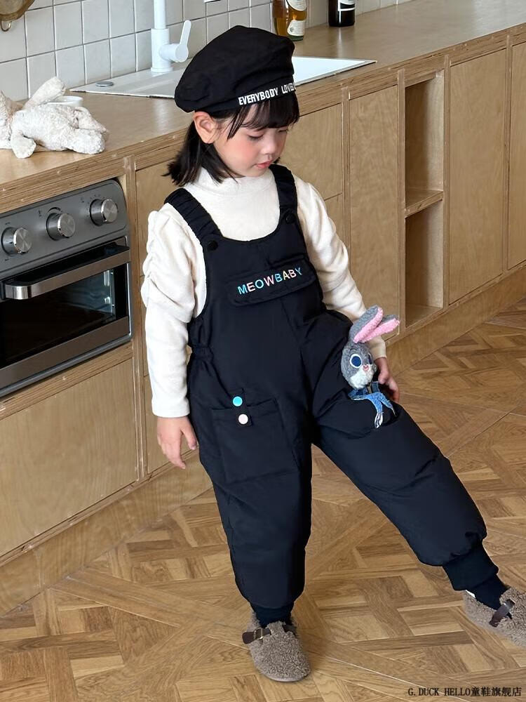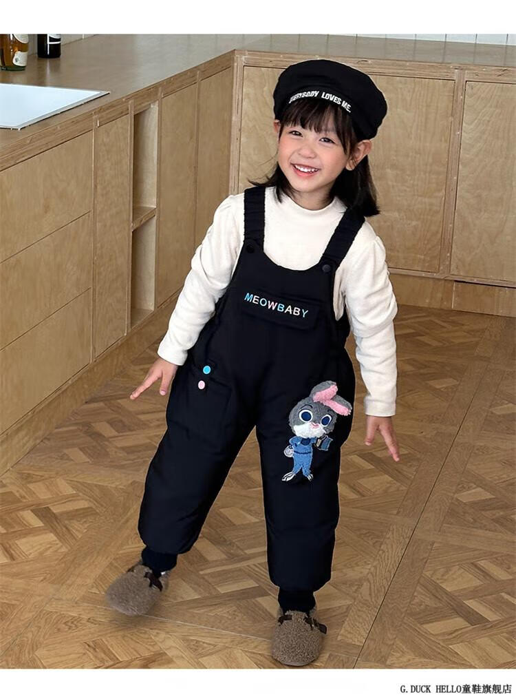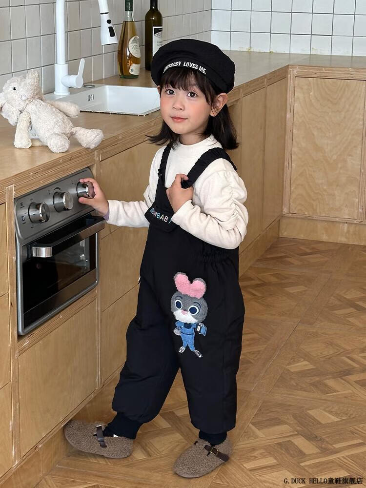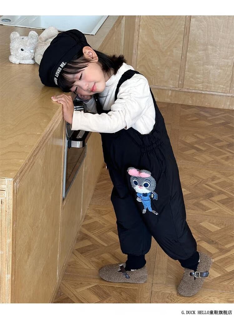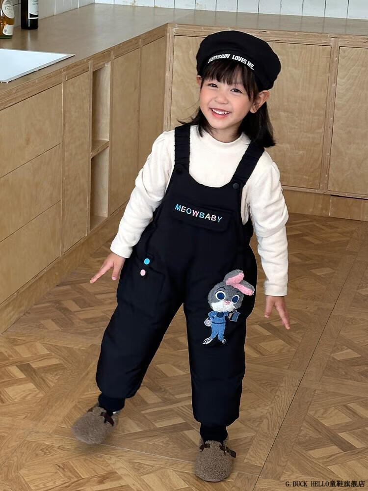 G.DUCKKIDS Little Yellow Duck Down Overalls Girls Thickened Outer Pants Rabbit Police Officer Children's Pants Girls Casual Pants Black 100 Recommended for 2~3 years old 90-100 cm