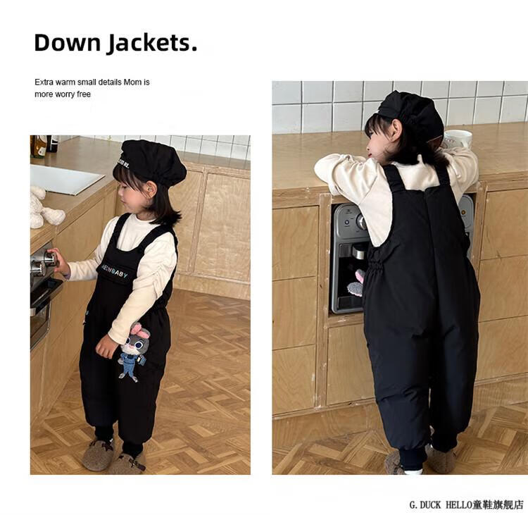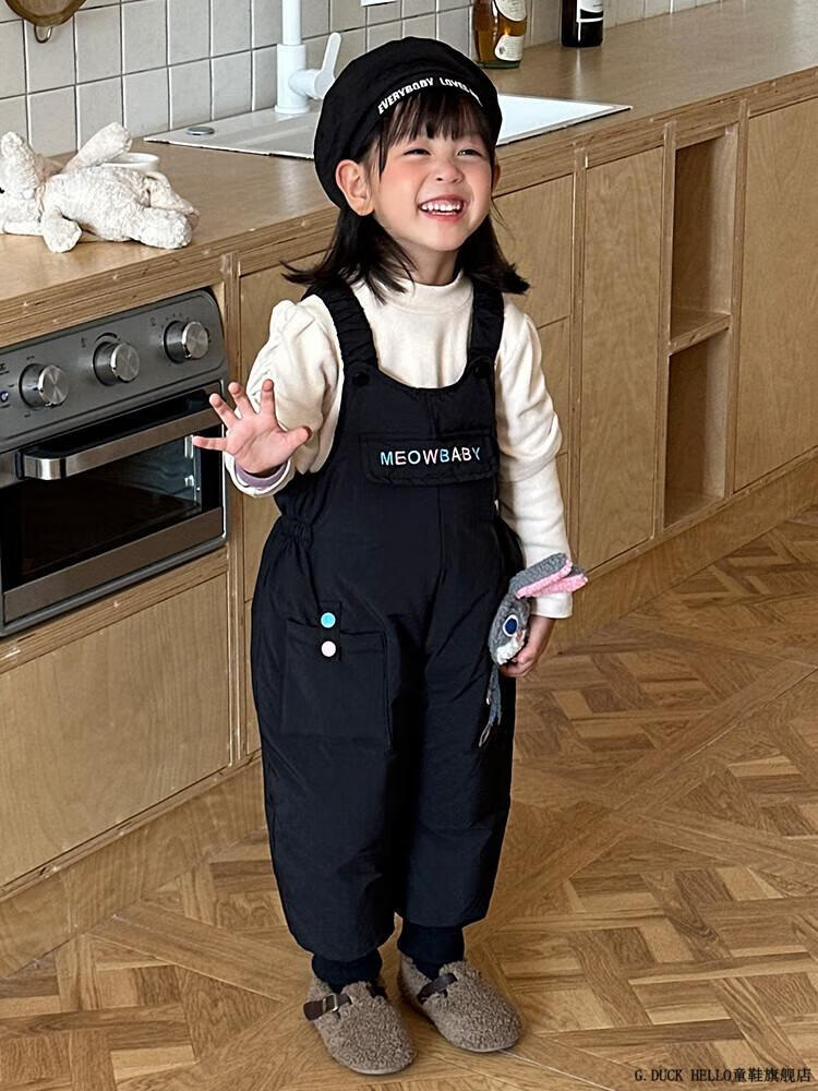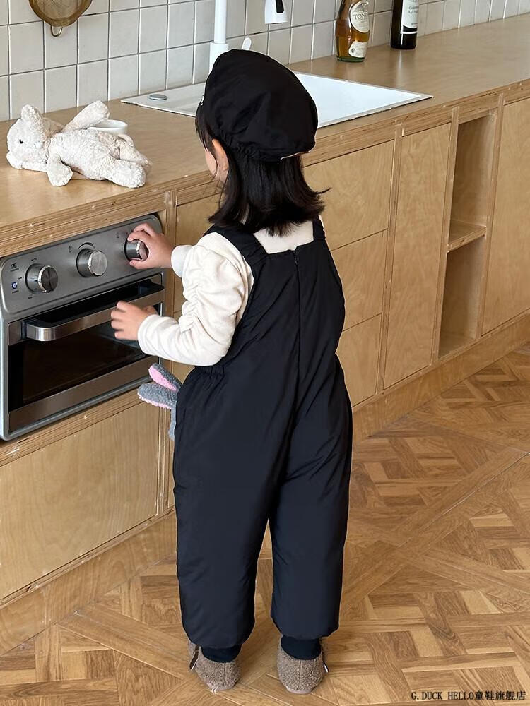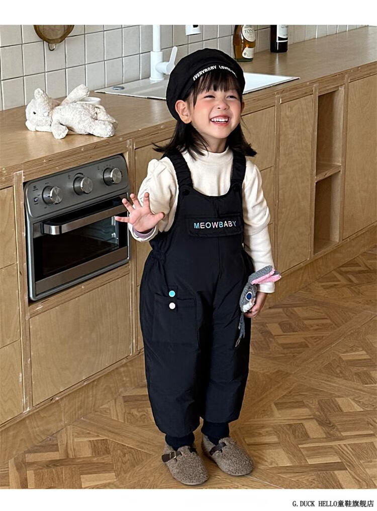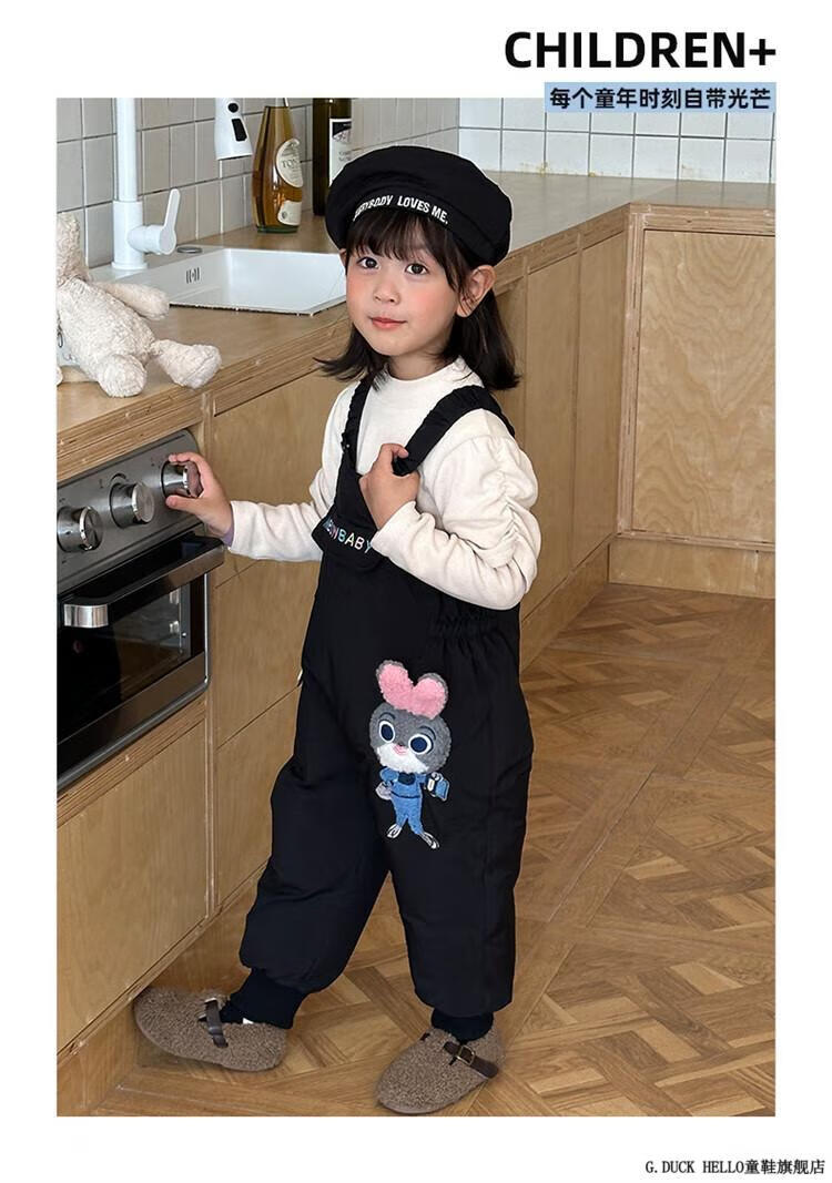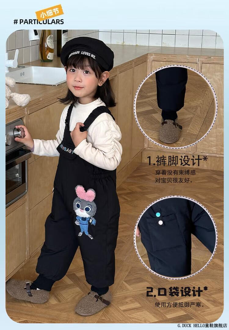 G.DUCKKIDS Little Yellow Duck Down Overalls Girls Thickened Outer Pants Rabbit Police Officer Children's Pants Girls Casual Pants Black 100 Recommended for 2~3 years old 90-100 cm