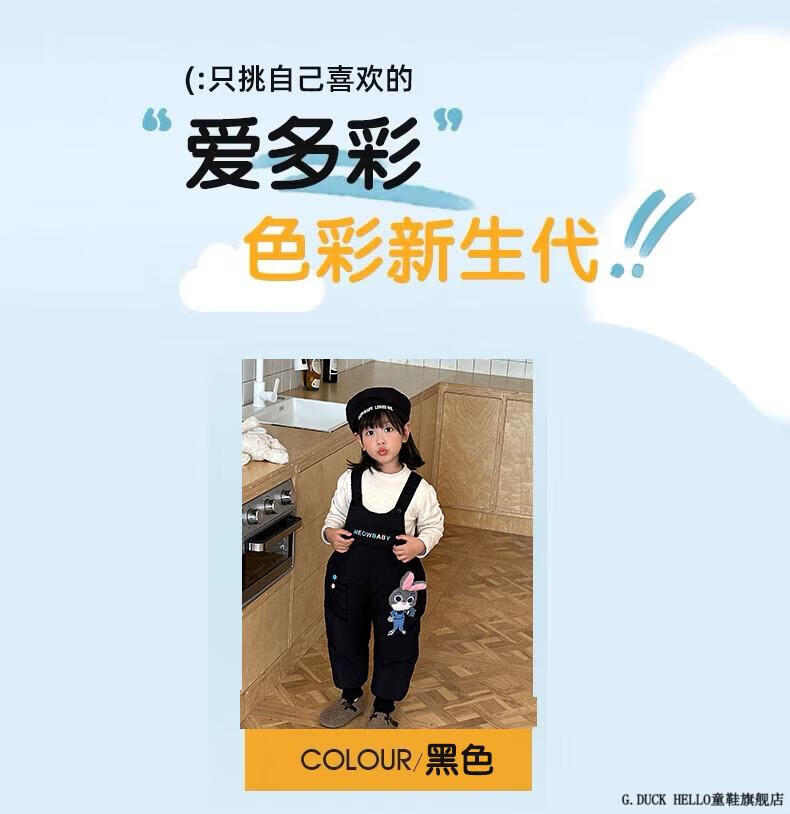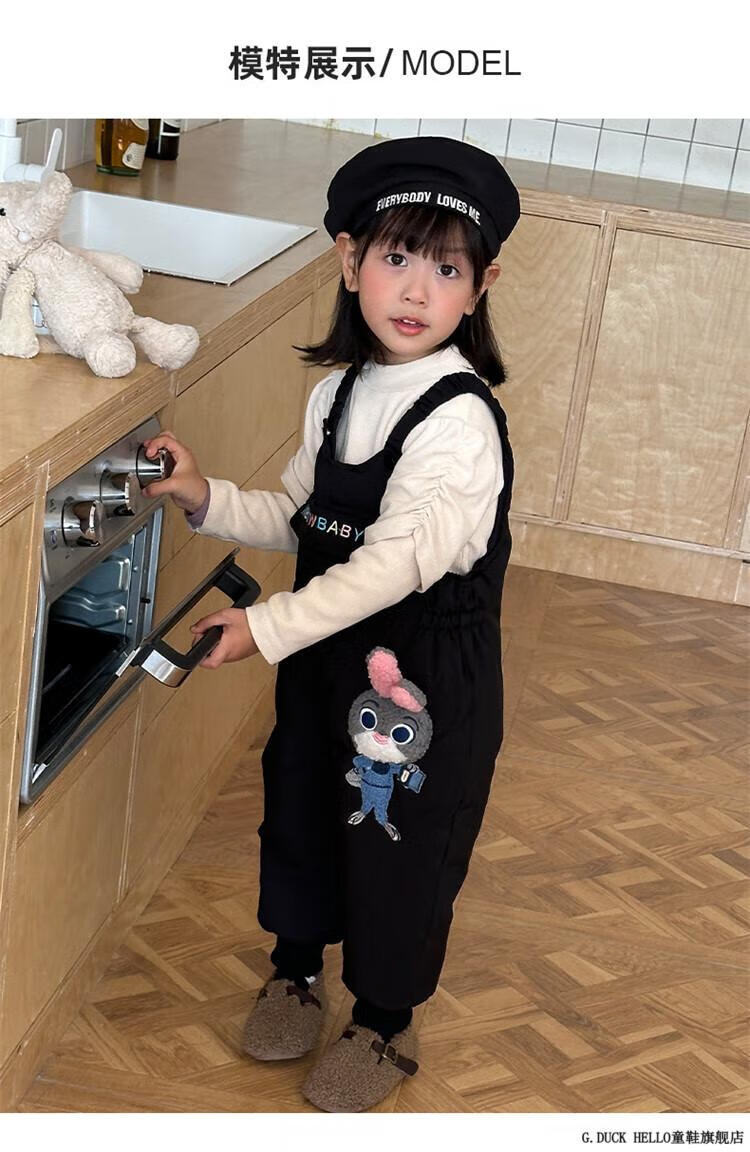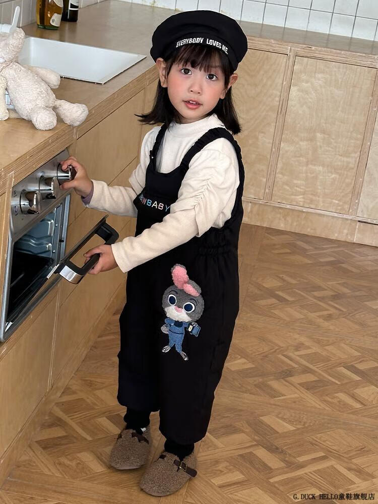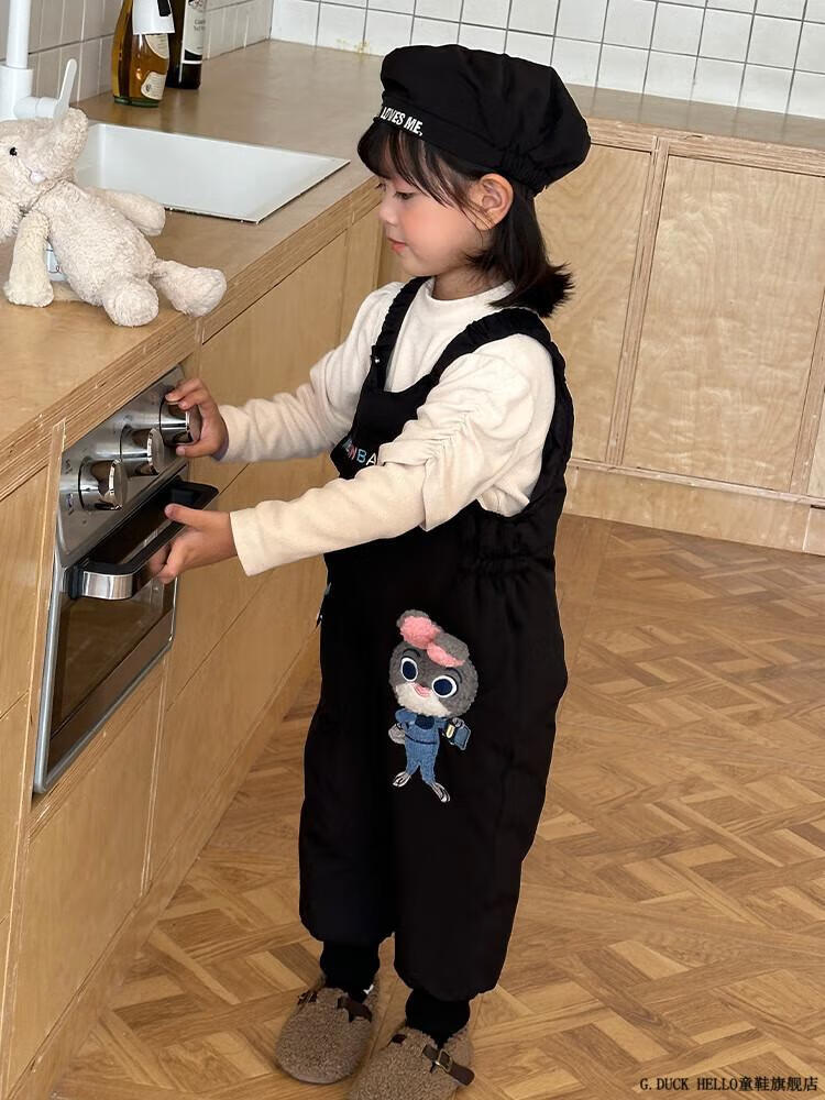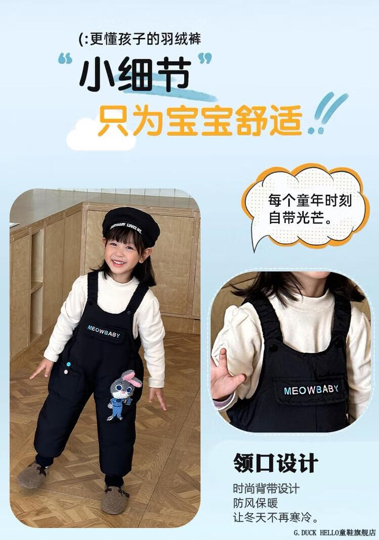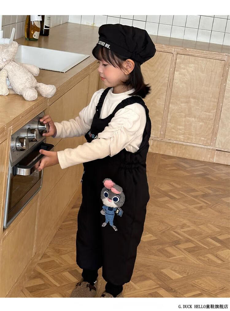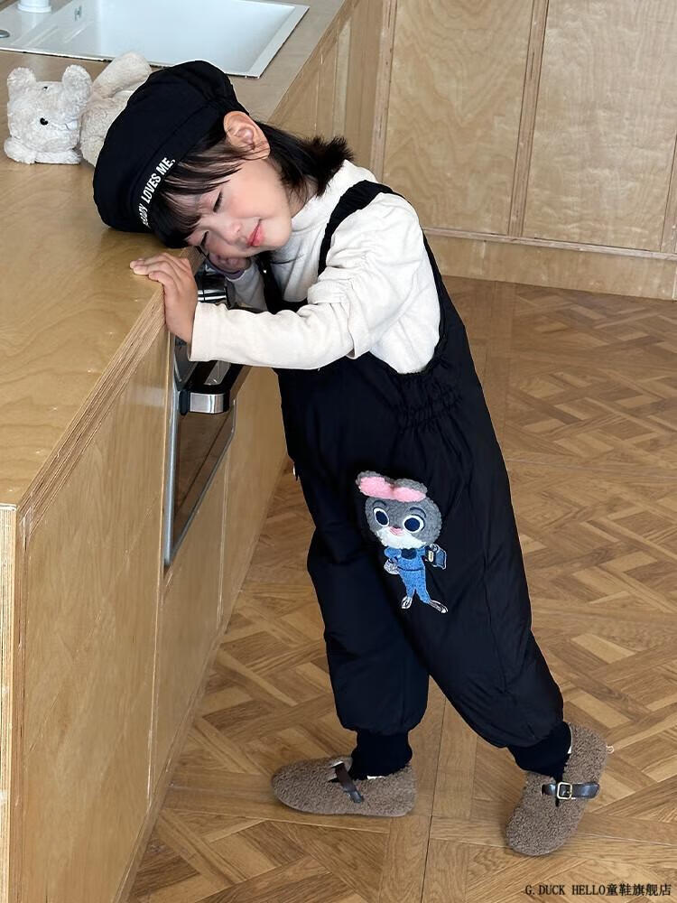 G.DUCKKIDS Little Yellow Duck Down Overalls Girls Thickened Outer Pants Rabbit Police Officer Children's Pants Girls Casual Pants Black 100 Recommended for 2~3 years old 90-100 cm