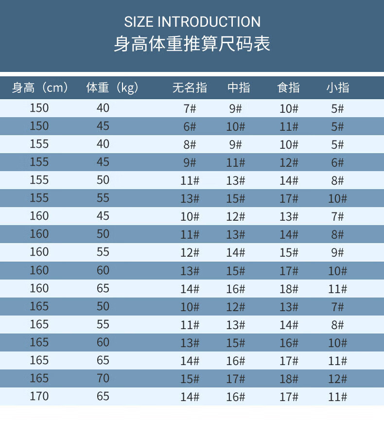 China (cm) 165 / 88-90 170 / 96-98 175 / 108-110 180 / 118-122 185 / 126-130