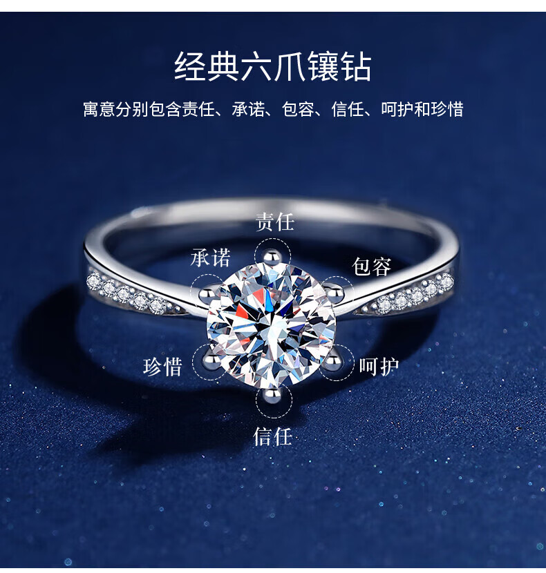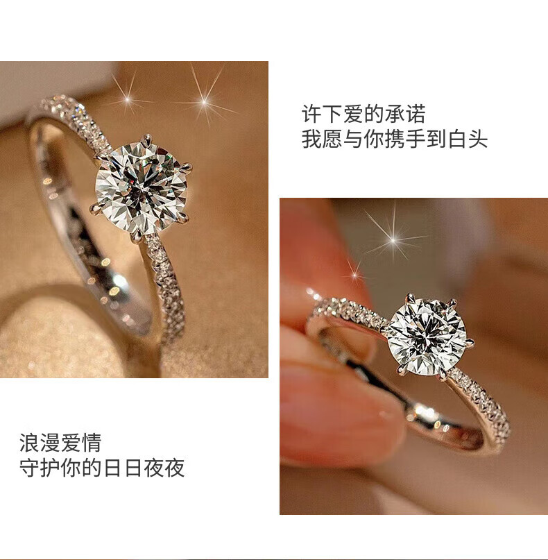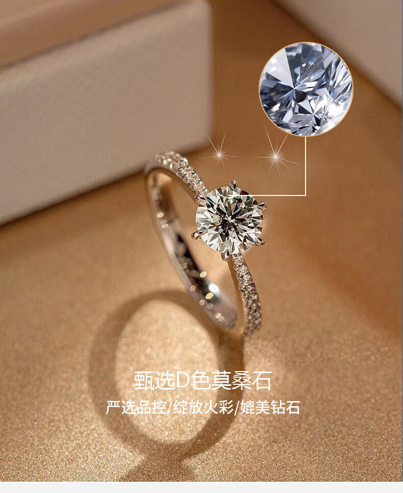 Pt950 platinum moissanite diamond ring for women 1 carat D color classic six prong micro setting proposal wedding ring for girlfriend beloved style 1 carat diamond ring - light luxury style