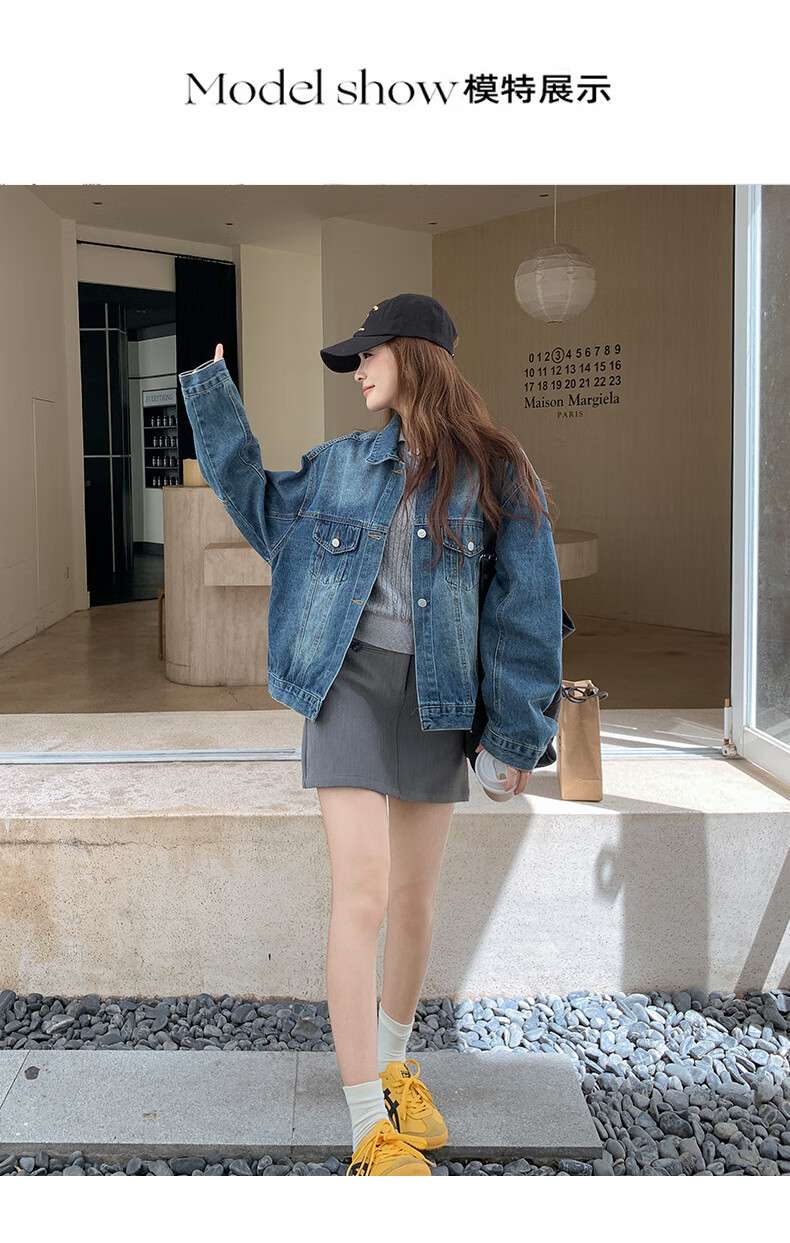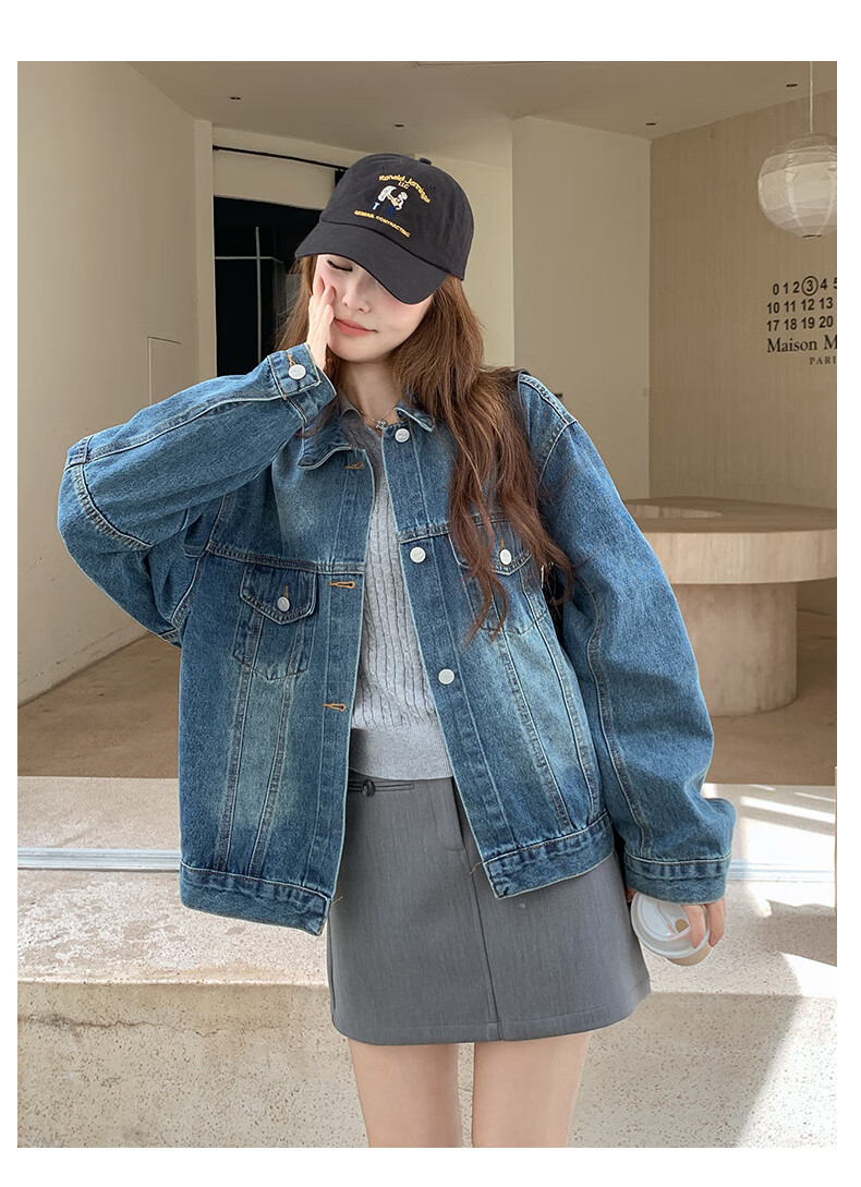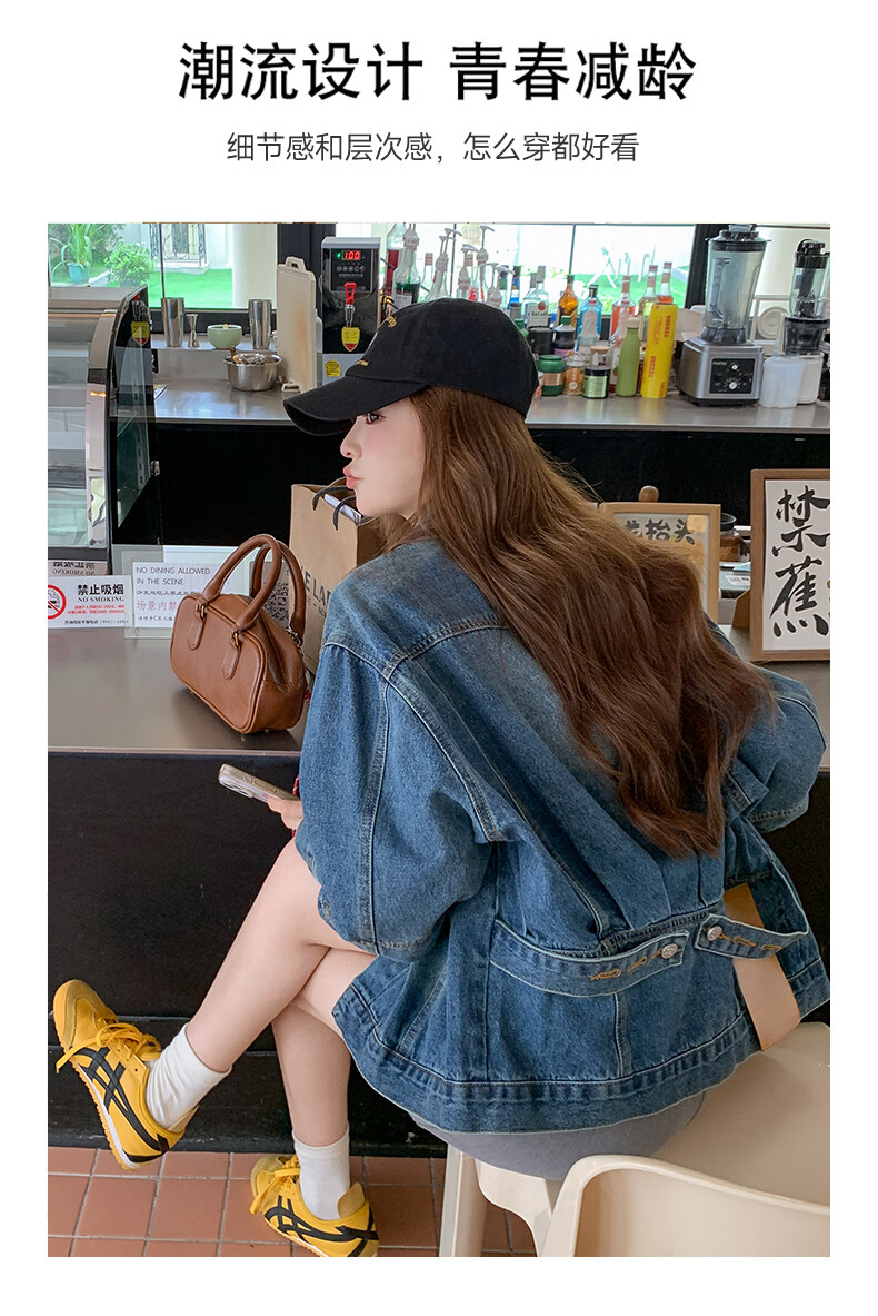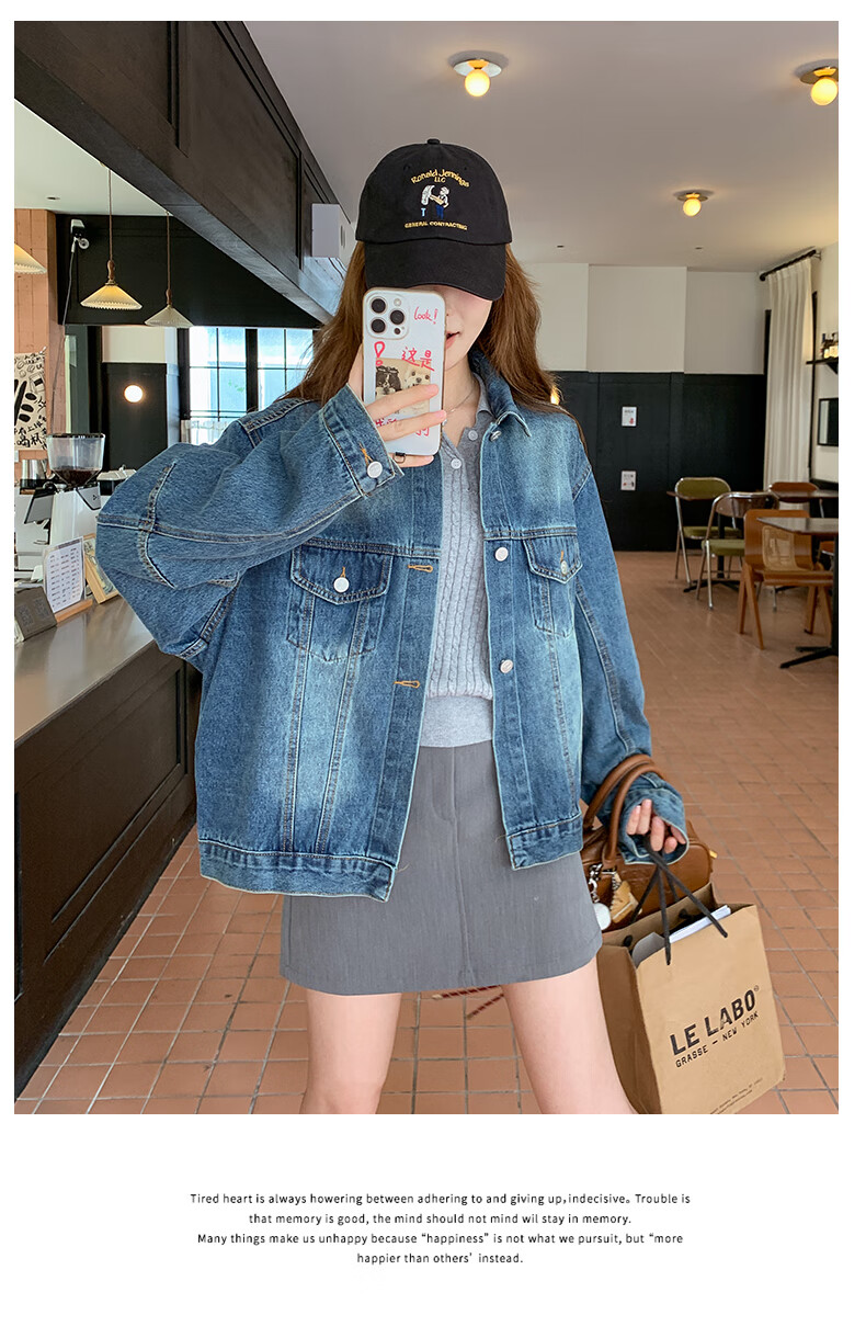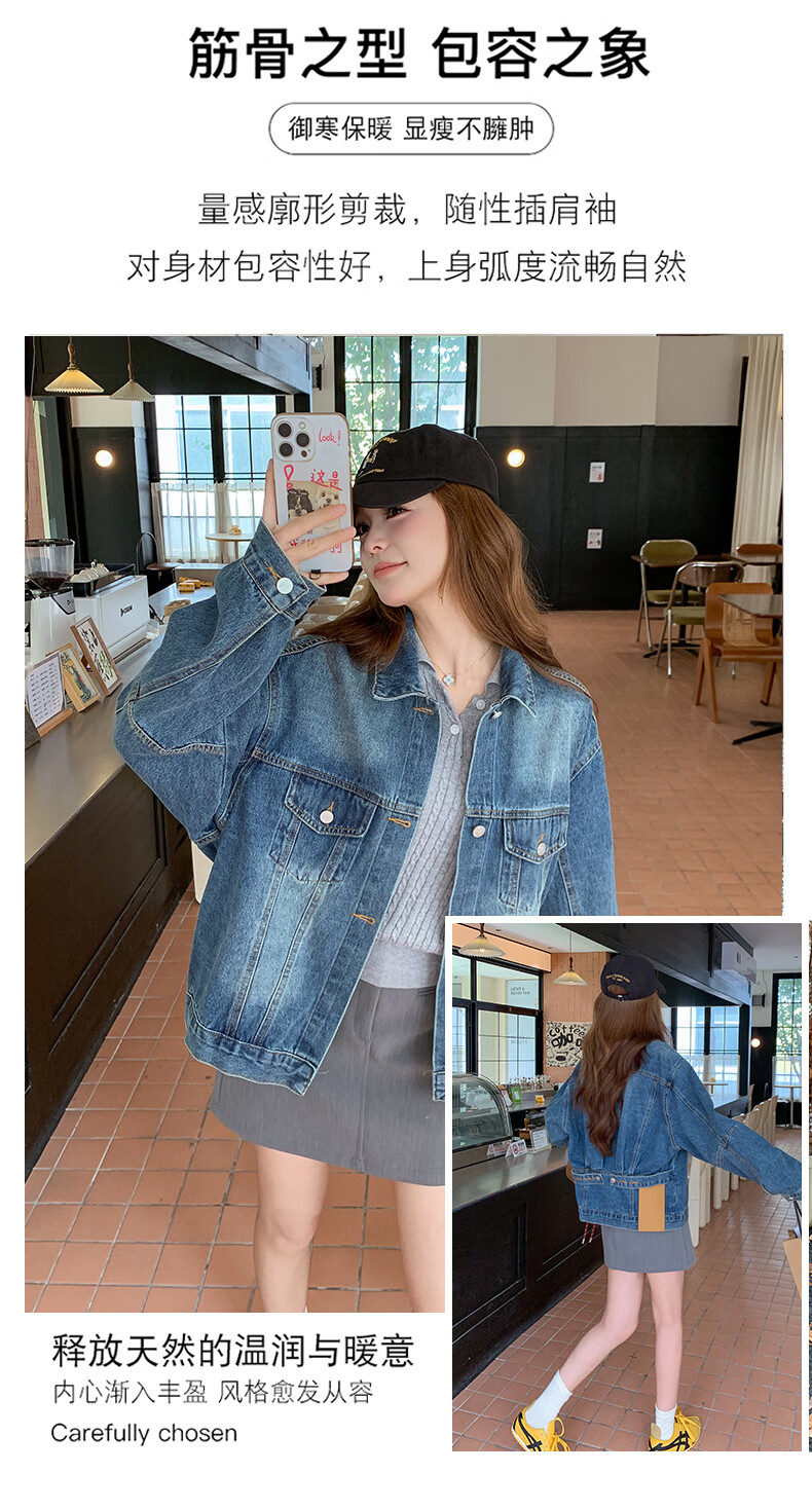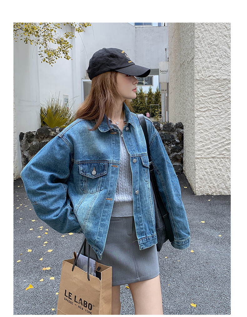 La Chapelle blue washed denim jacket for women 2025 autumn new fashion age-reducing design loose casual versatile jacket blue S 105Jin Jin is equal to 0.5 kg within