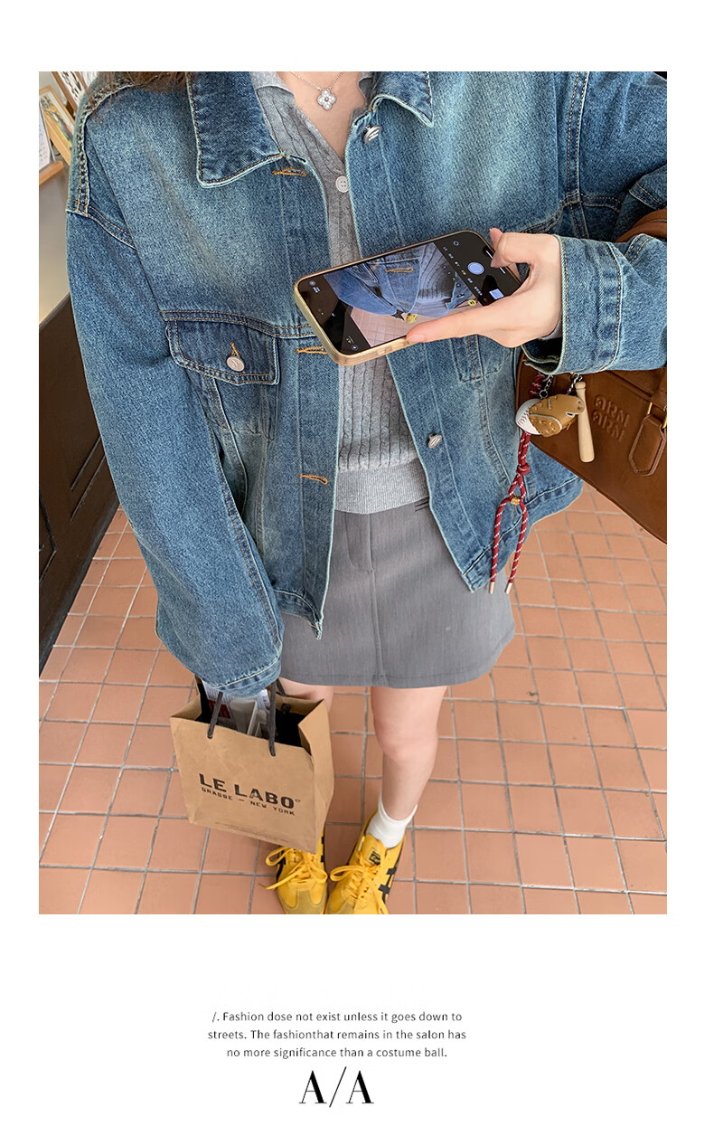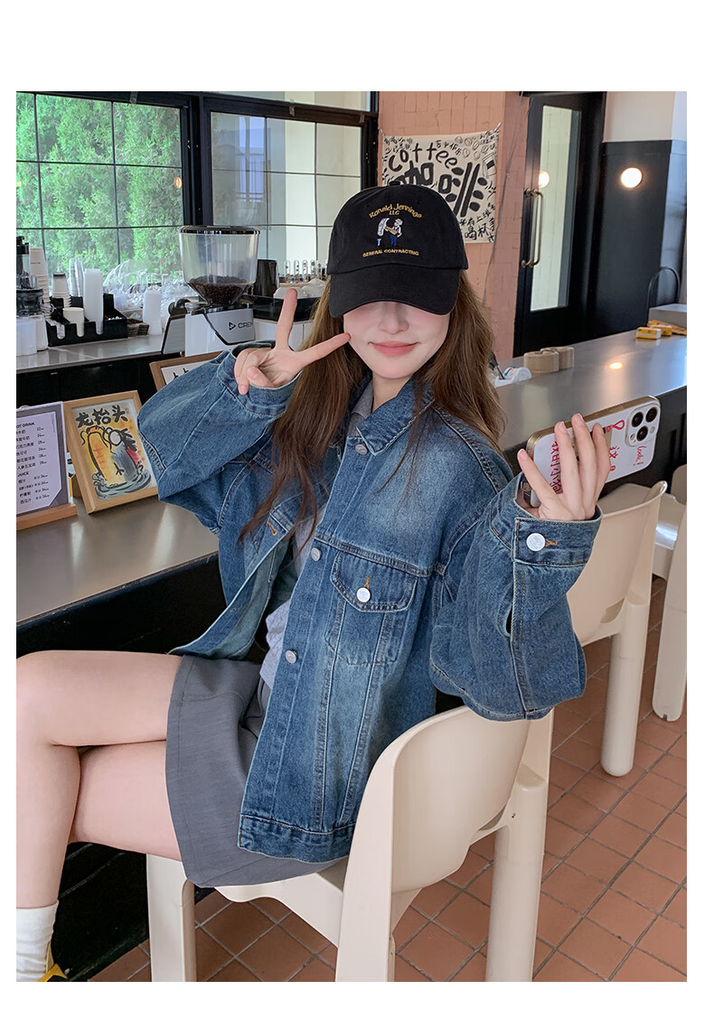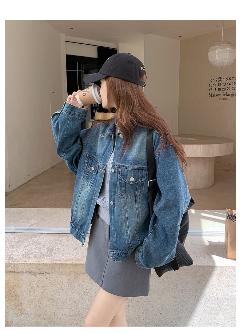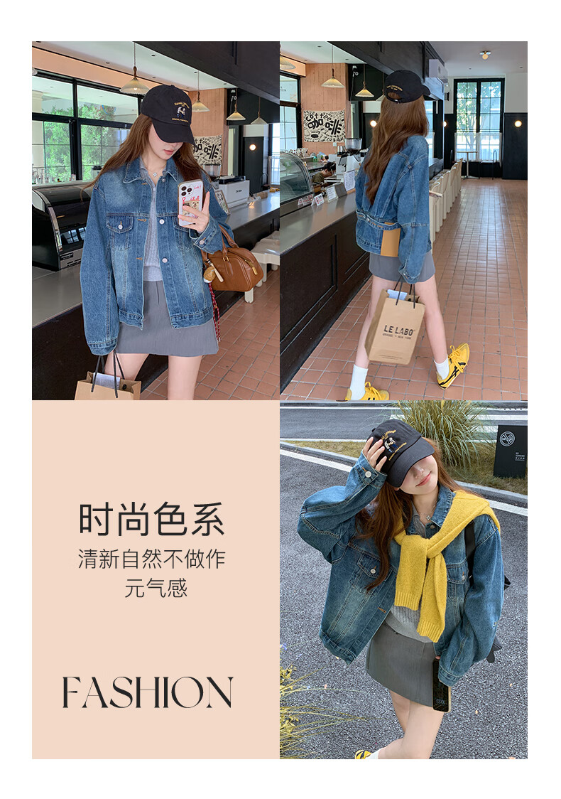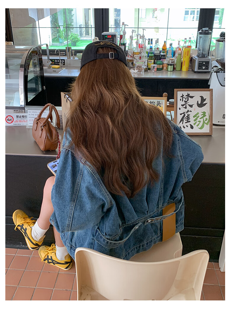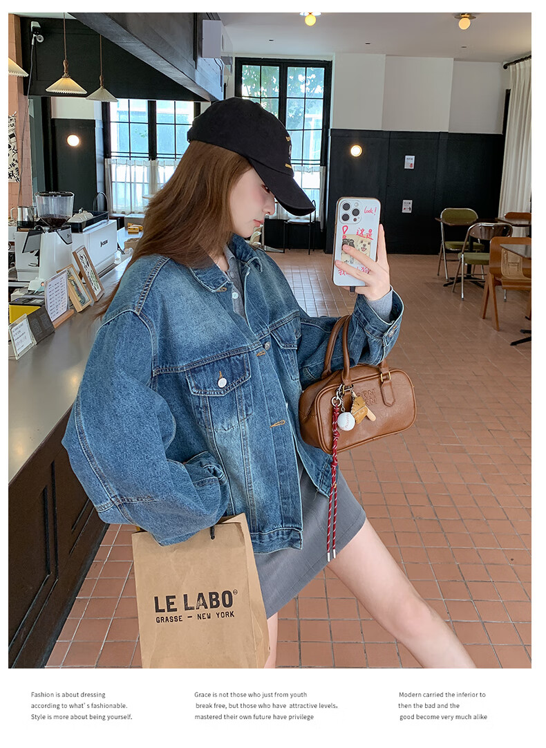 La Chapelle blue washed denim jacket for women 2025 autumn new fashion age-reducing design loose casual versatile jacket blue S 105Jin Jin is equal to 0.5 kg within