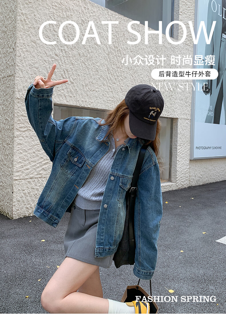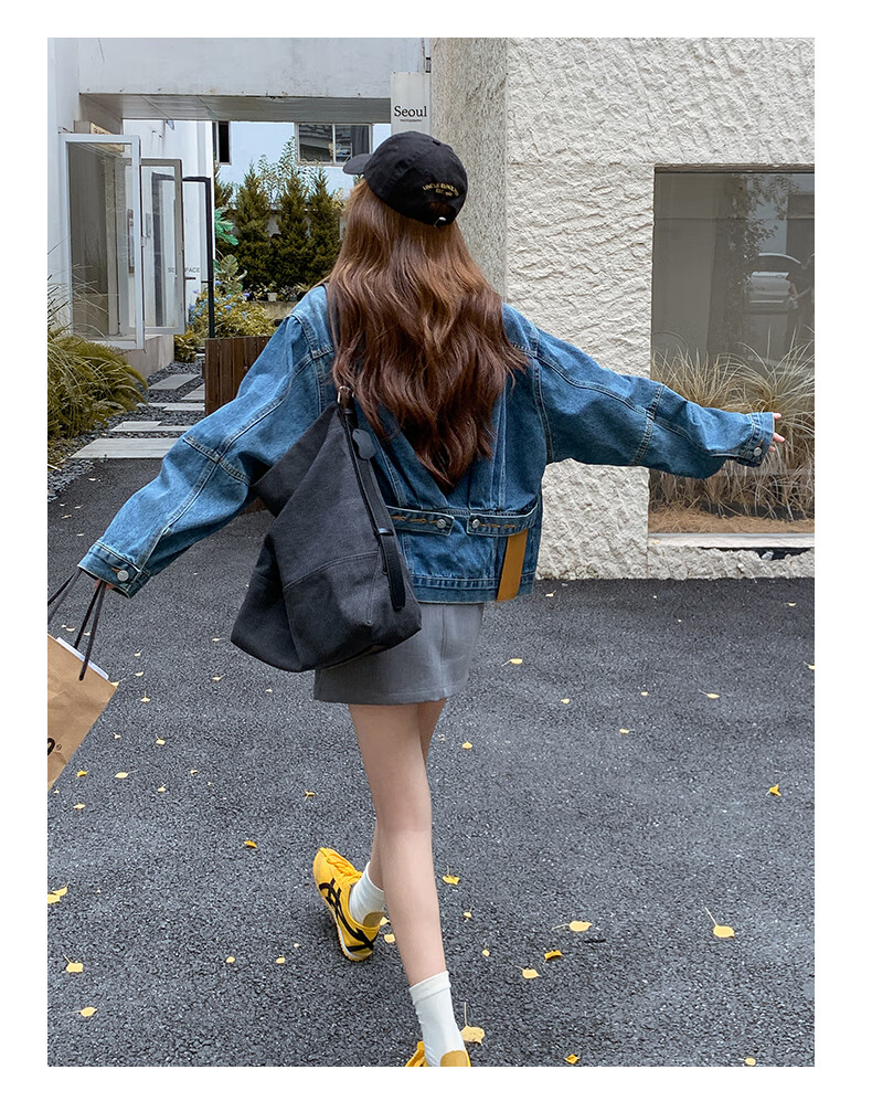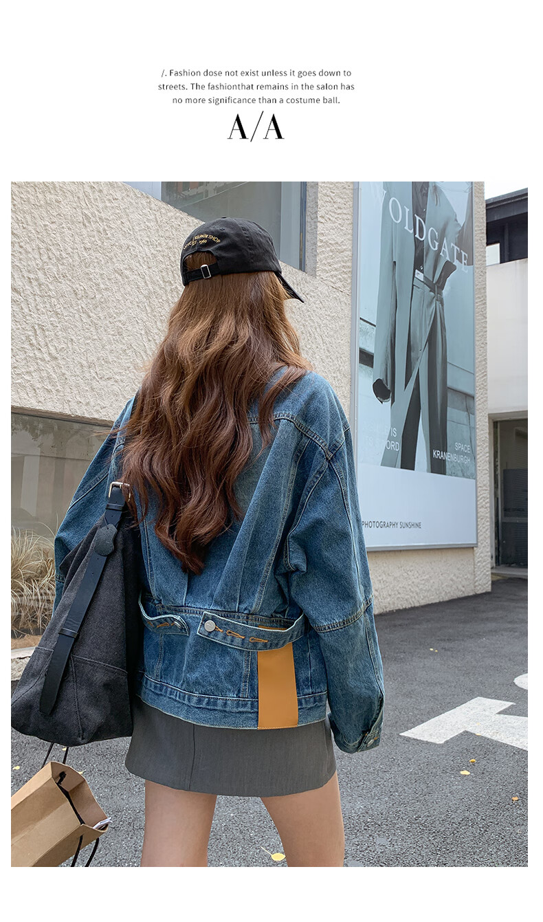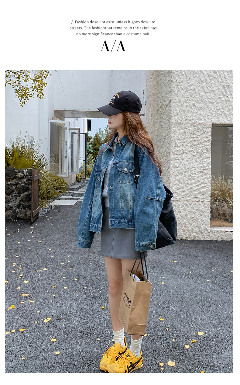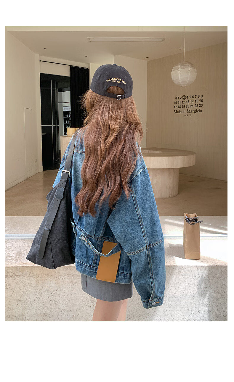 La Chapelle blue washed denim jacket for women 2025 autumn new fashion age-reducing design loose casual versatile jacket blue S 105Jin Jin is equal to 0.5 kg within