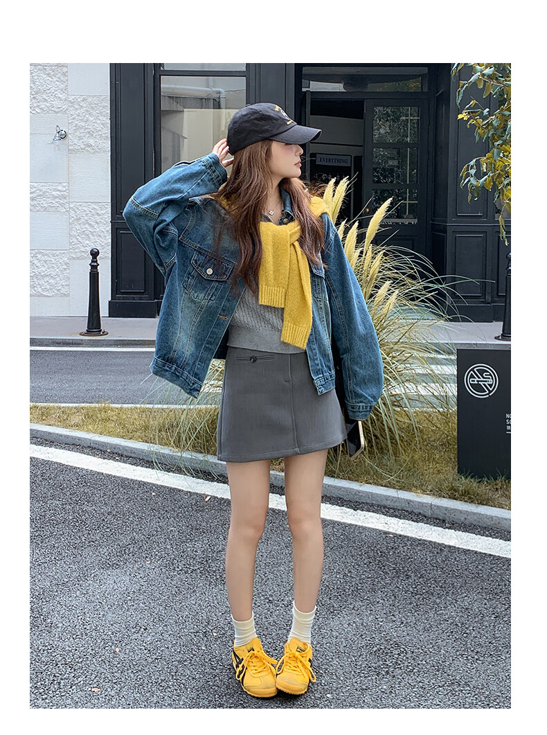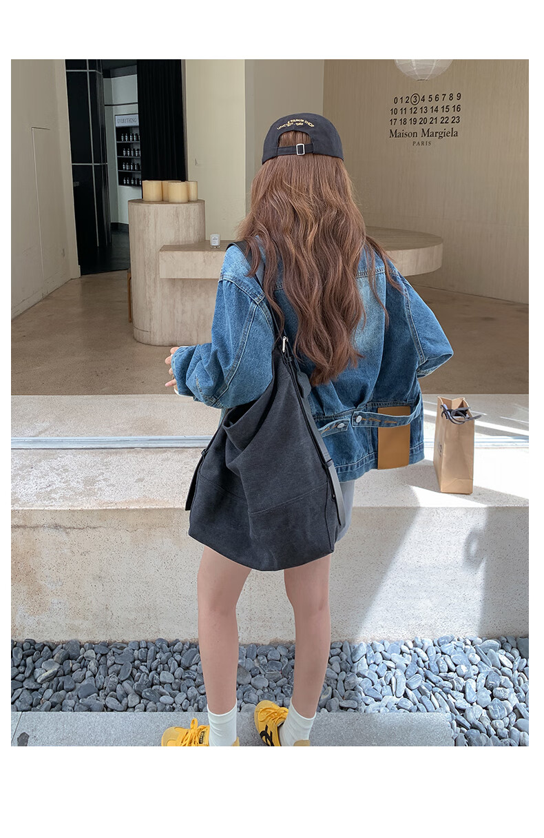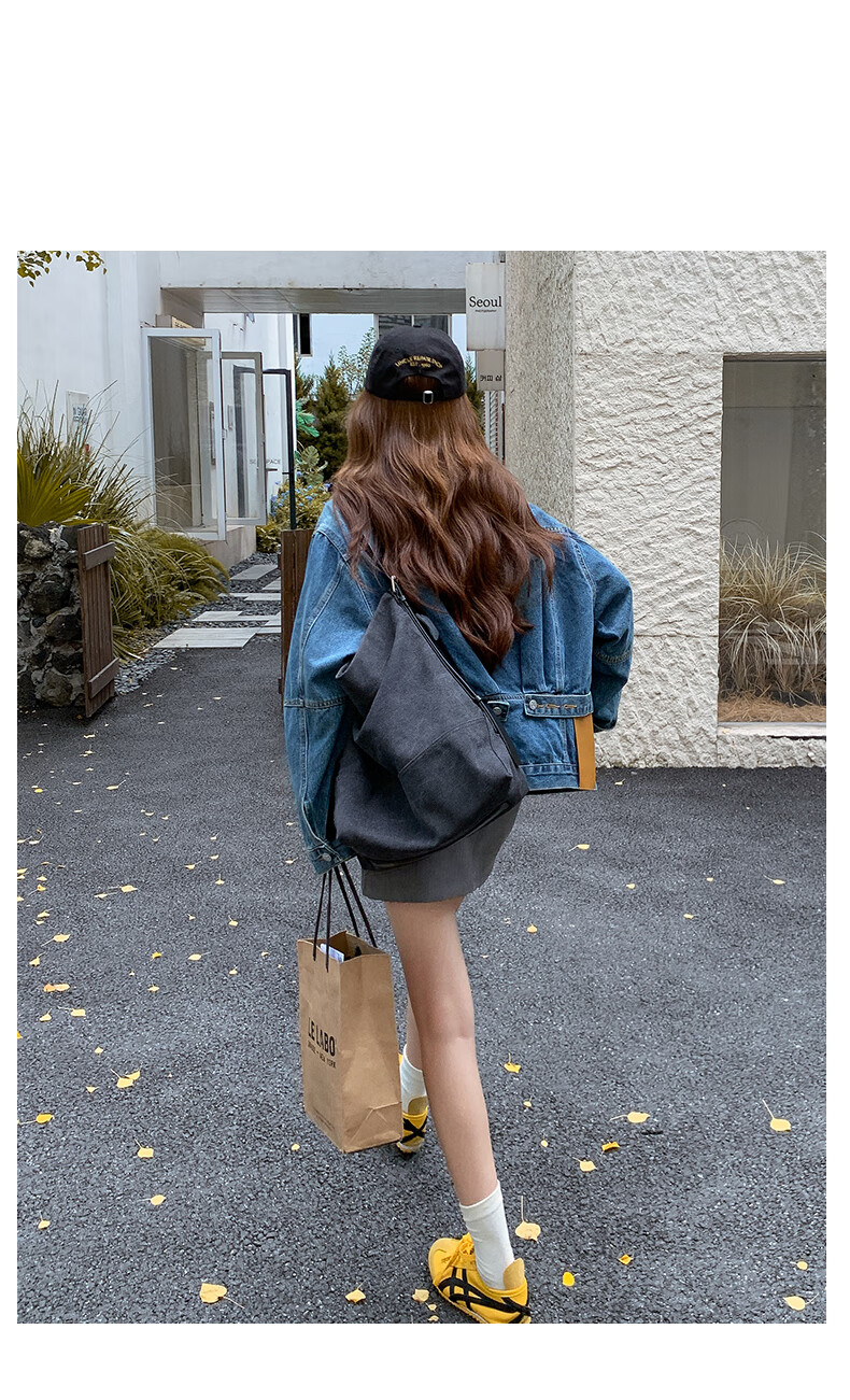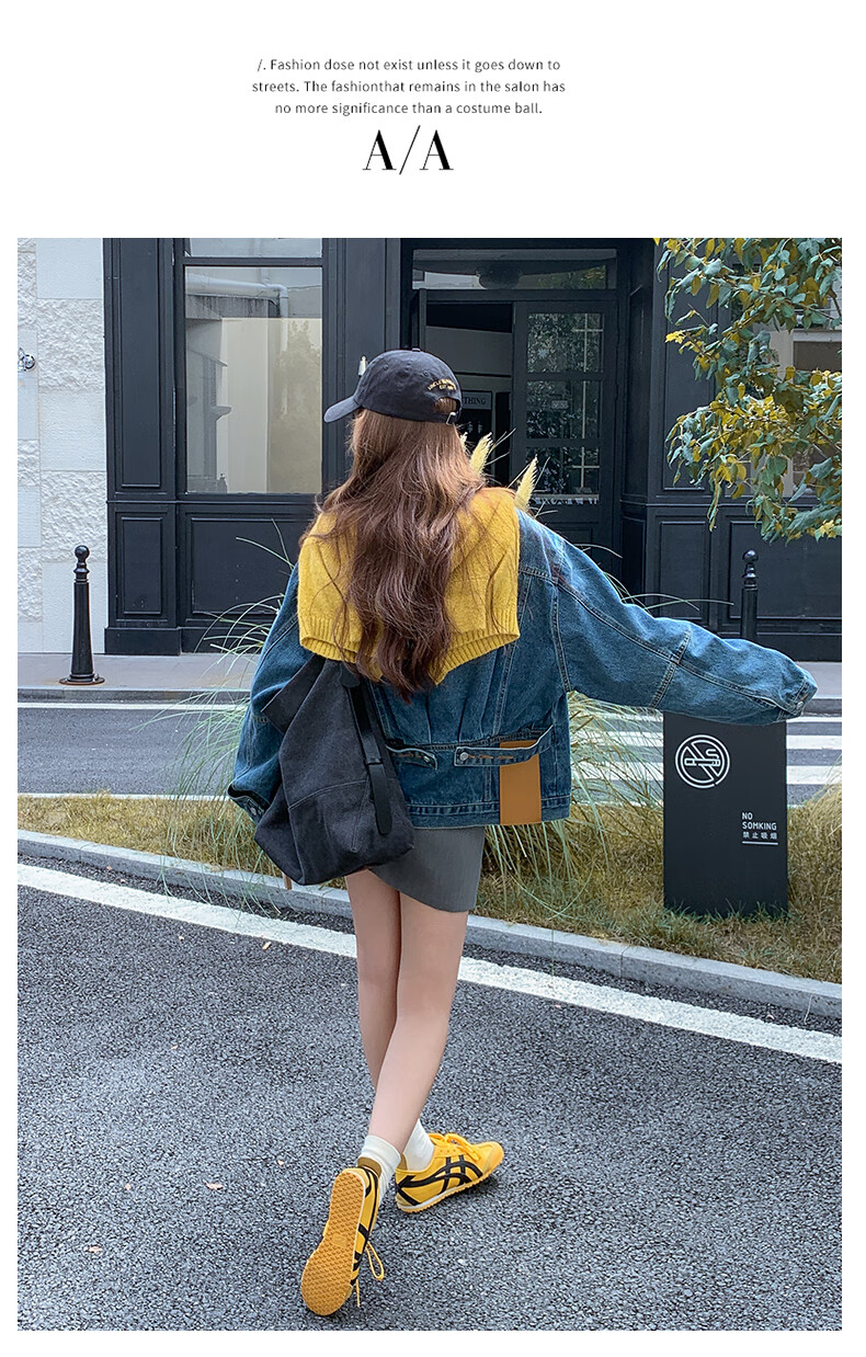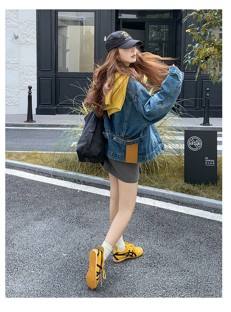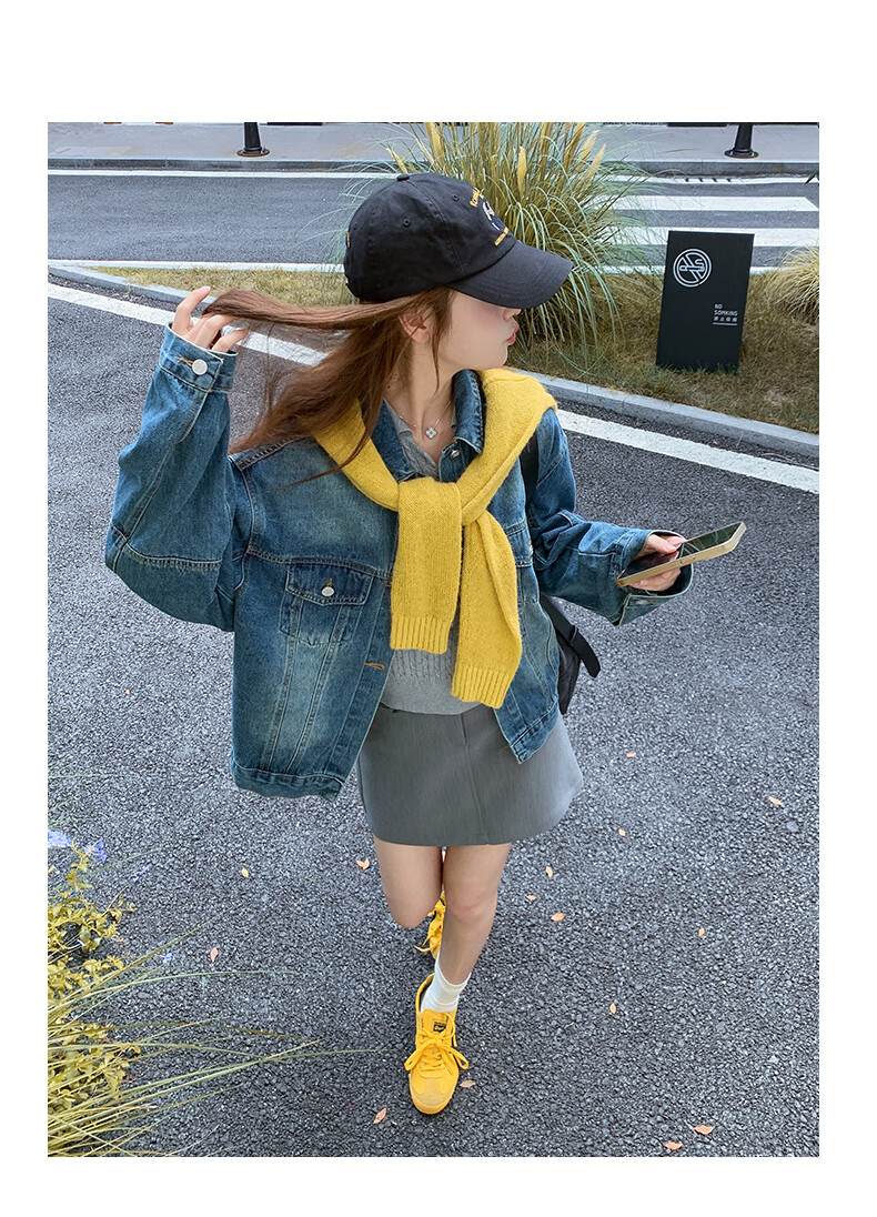 La Chapelle blue washed denim jacket for women 2025 autumn new fashion age-reducing design loose casual versatile jacket blue S 105Jin Jin is equal to 0.5 kg within