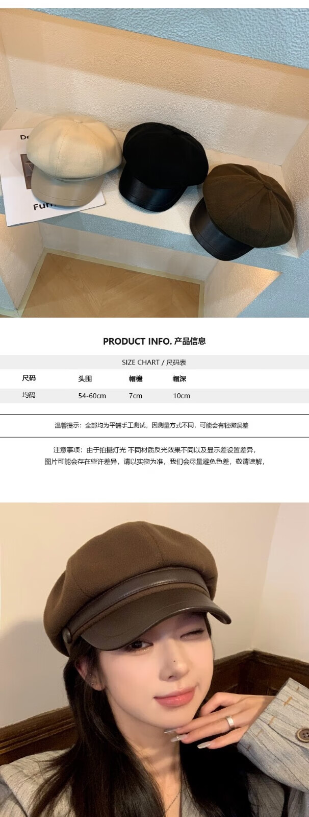 Quchen beret women's octagonal hat winter women's octagonal beret painter's hat coffee hat western Sichuan hat leather buckle beret coffee one size