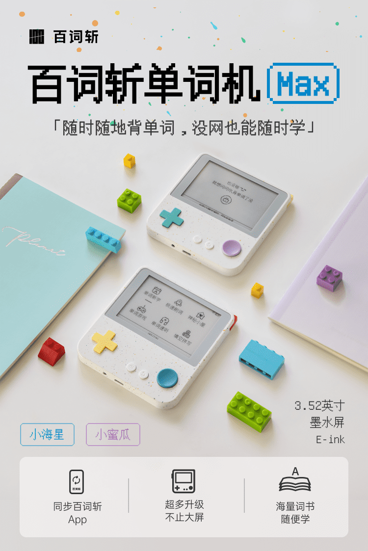 BaiCiZhan BaiCiZhan word machine Max super large screen word machine real person foreign teacher pronunciation electronic word card ink screen back word artifact primary school English Japanese word Max small honey melon package one