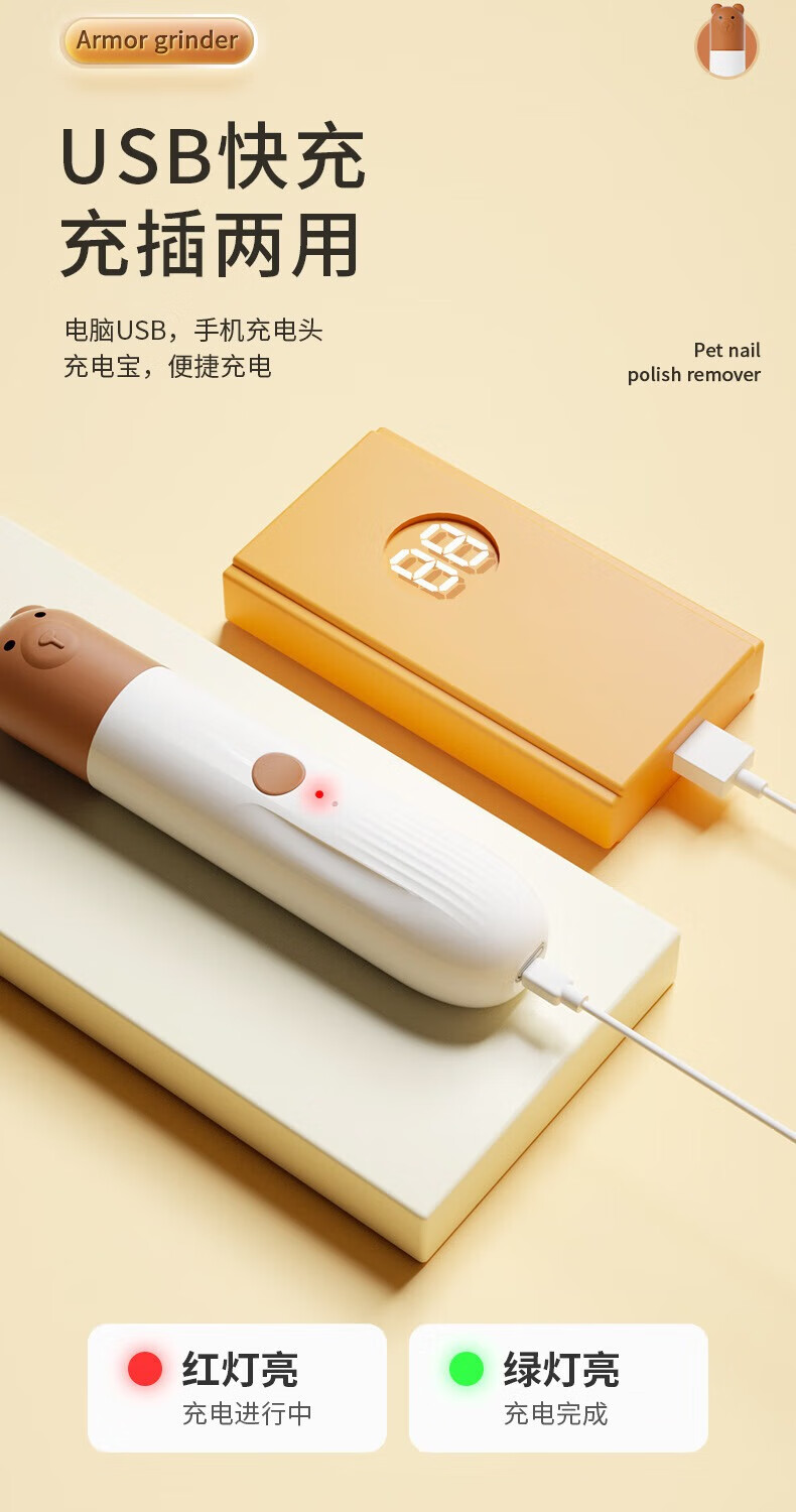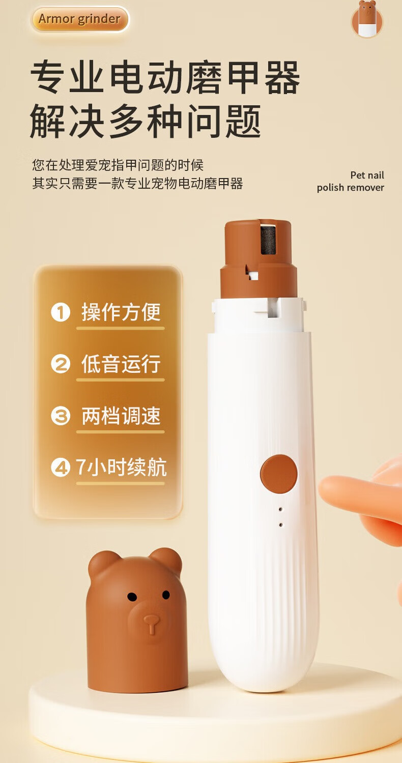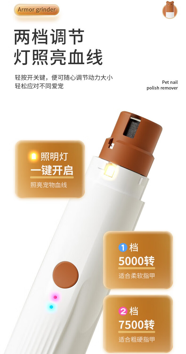 BLANLODY Dog Nail Grinder Cat Pet Electric Claw Grinder Special Grinder Trimmer Rechargeable Nail Clipper Artifact LED Electric Nail Grinder - Coffee White
